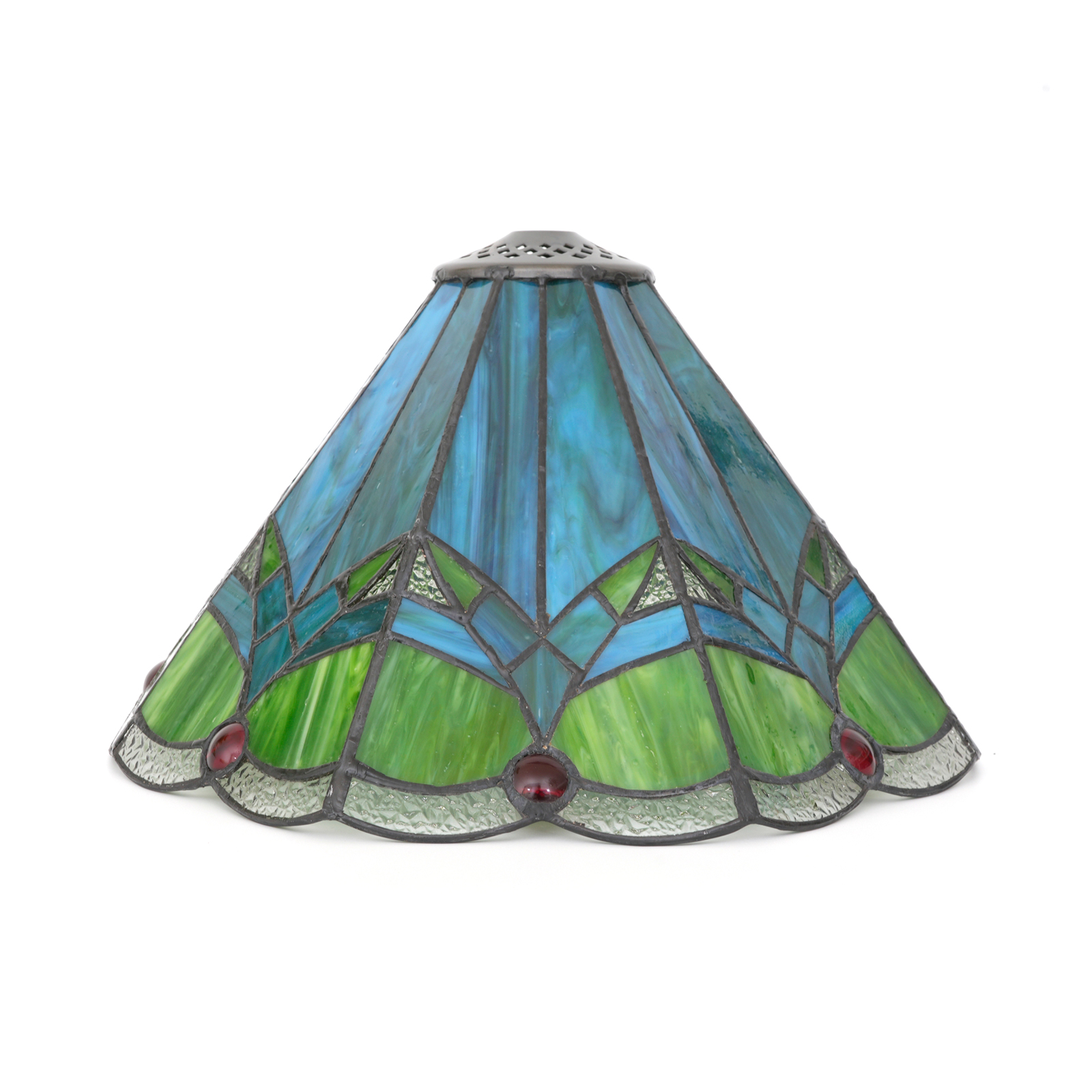 Blivuself Tiffany Stained Glass Replacement Lampshade, 12-Inch Retro-Style Red Pearl Cyan Umbrella-Shaped Lampshade, Handcrafted, Suitable For Home Decoration Art Such As Table Lamps, Floor Lamps And Chandeliers (Small Hole)DZ12031X