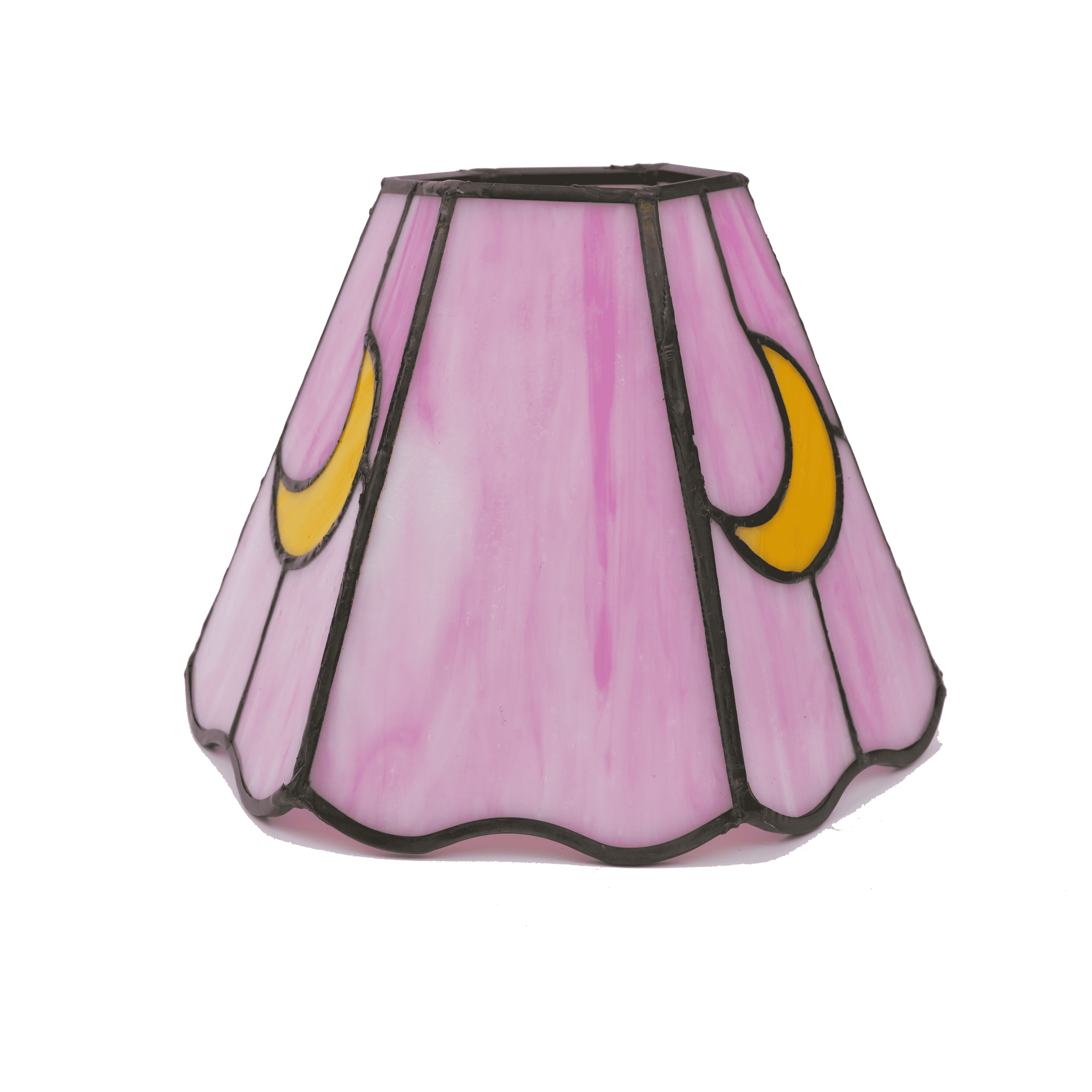 Blivuself Romantic Handmade Stained Glass Lamp, Tiffany Style Lampshade "Moonlight "- Pink Moon On White And Pink, Suitable For Desk Lamp, Chandelery, Wall Lamp And Other Home Decorative Arts (ZB6167)