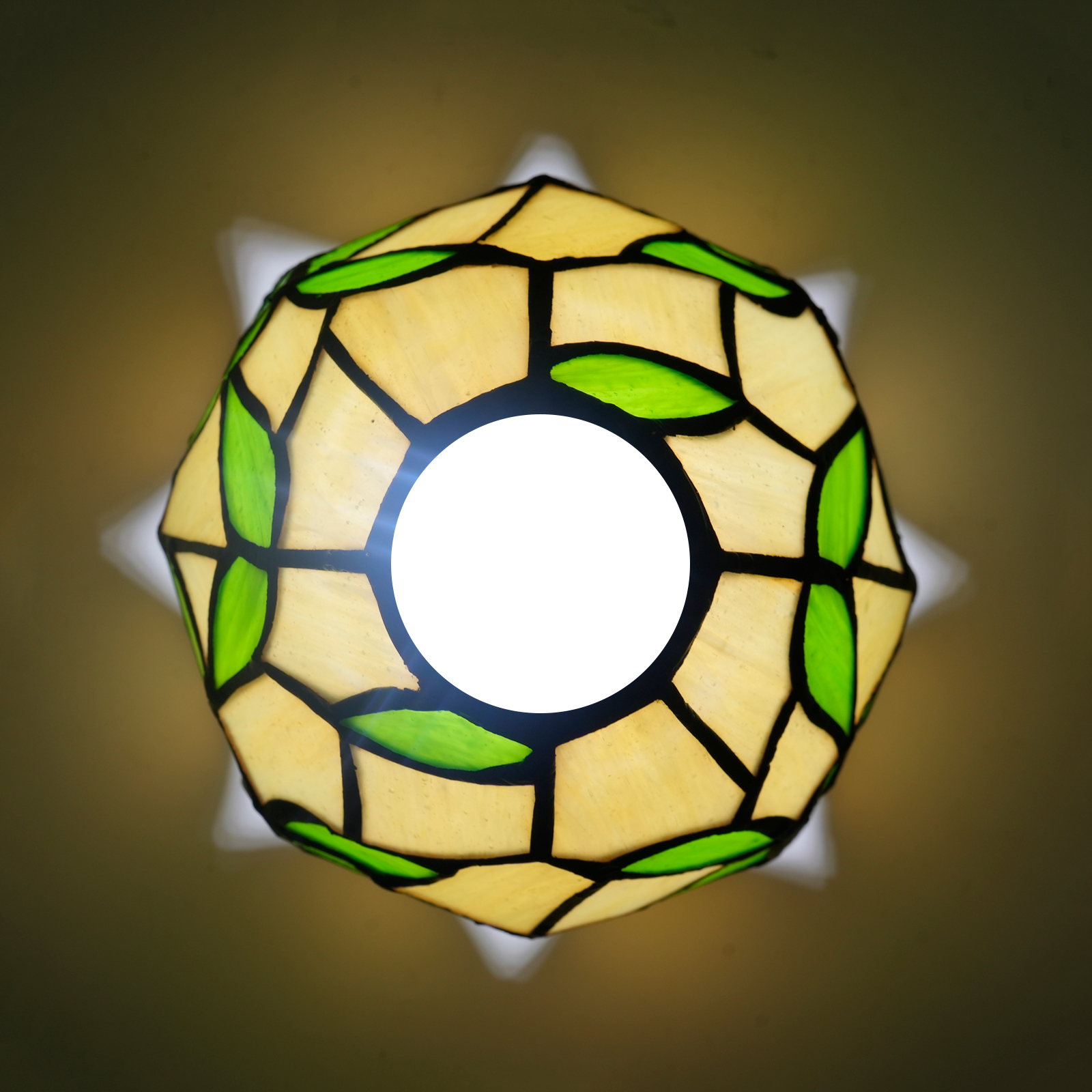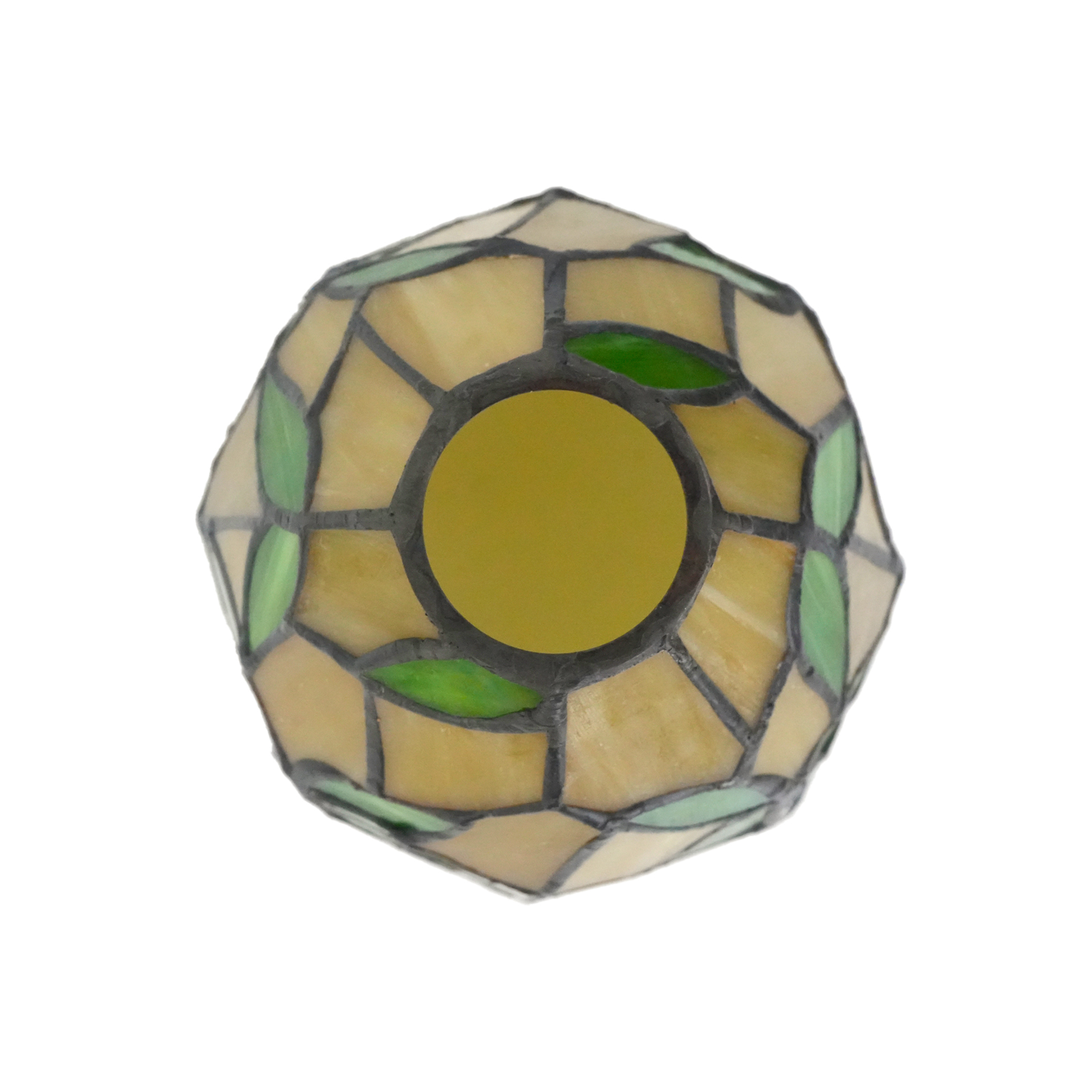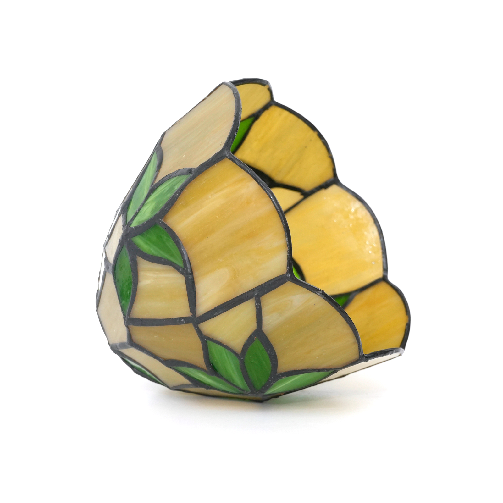The lampshade has a diameter of 15CM (6 inches), a height of 12CM, and weighs 0.41Kg. It has a 4.2CM opening at the top and is suitable for large-hole lamps. Inheriting the classic Tiffany craftsmanship, the artisans hand-cut and spliced the colored glass. The warm beige glass serves as the base, and the green glass with alternating shades transforms into bamboo leaves. The veins of the leaves are clear and distinct, as if a gentle breeze rustling through the bamboo leaves. Every splicing conceals the artisans' dedication, making the lampshade a touchable miniature of natural art.
