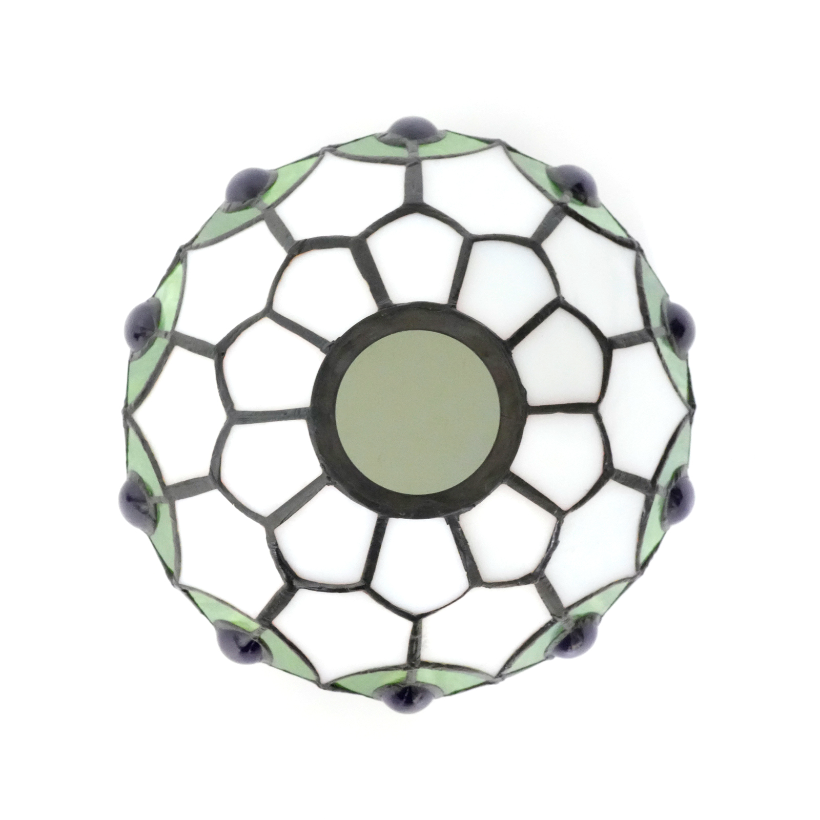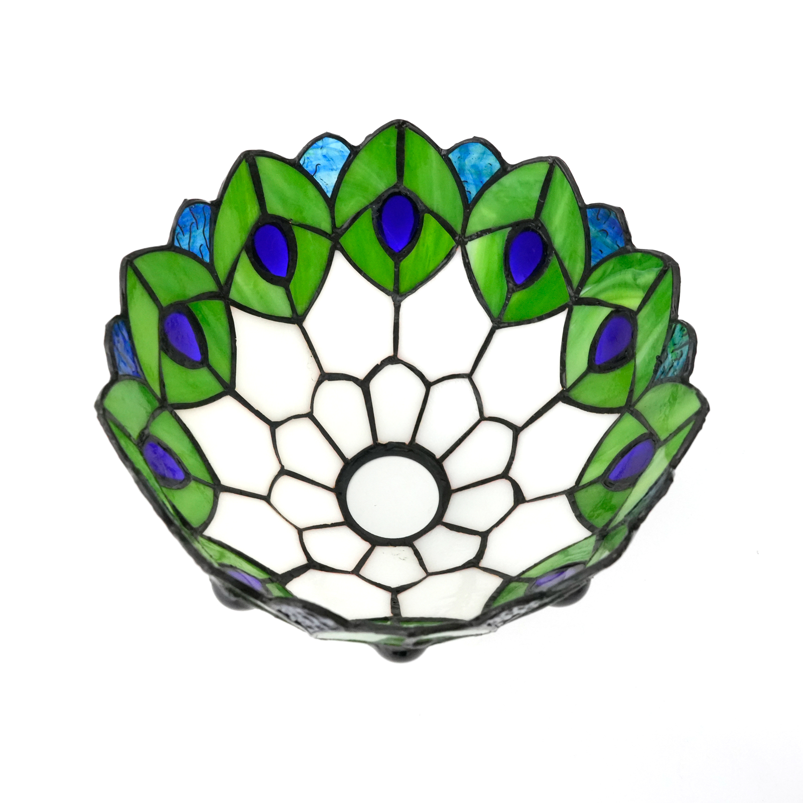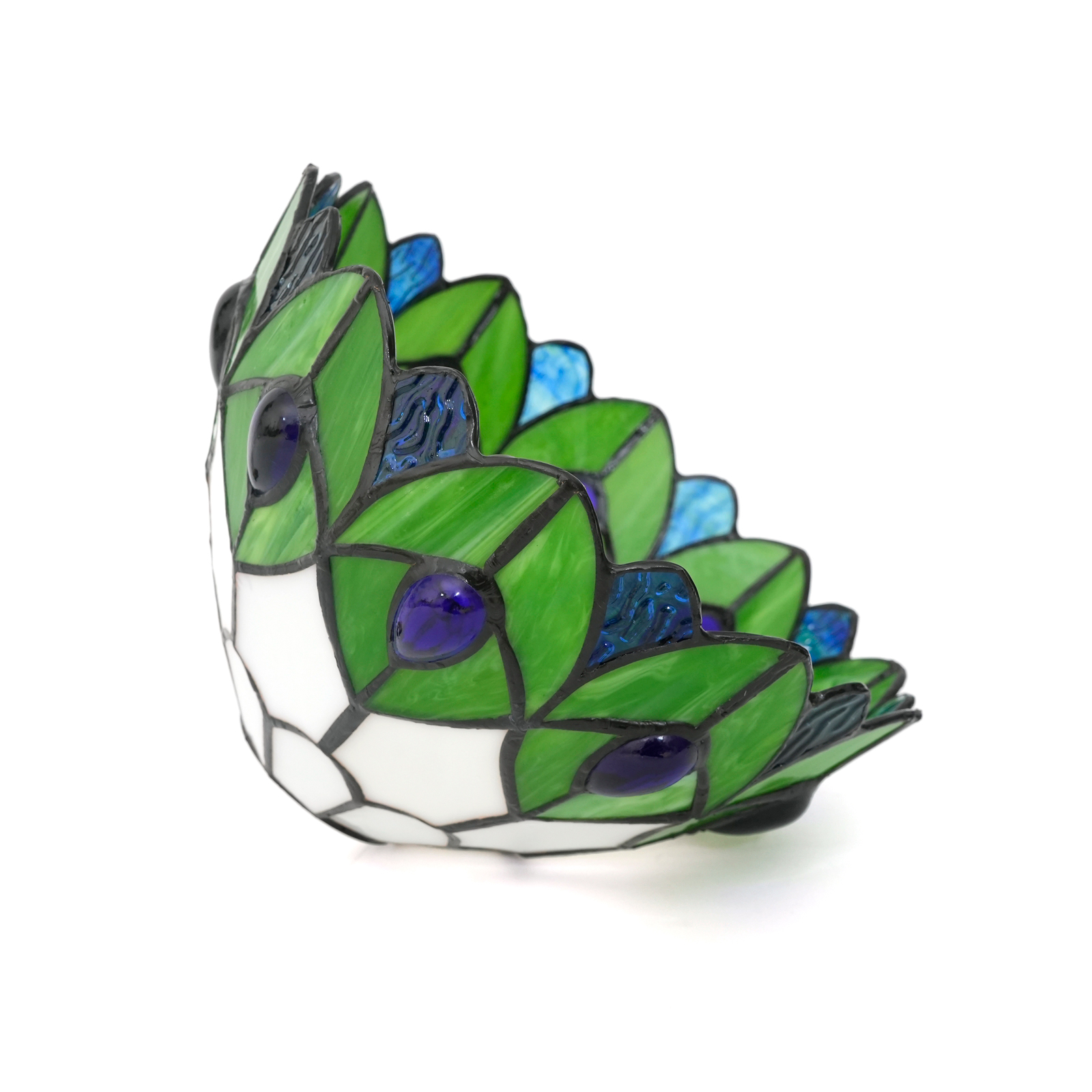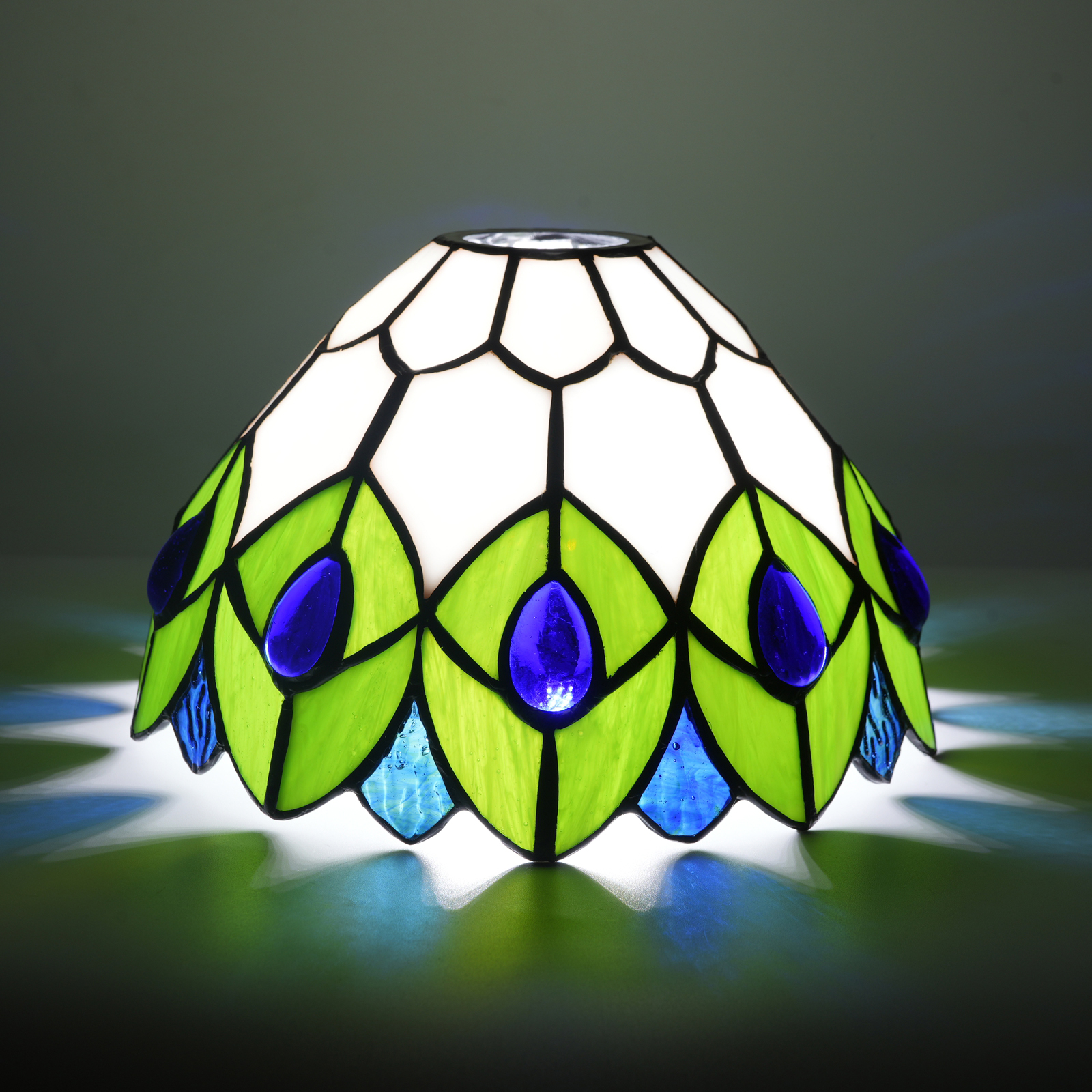 This 8-inch green and white peacock tail colored glass lampshade in Tiffany style is a retro handcrafted large-mouth replaceable lampshade that can be matched with chandeliers and wall lamps. Whether it is a bedroom, dormitory or living room and other Spaces, it can add unique charm to the classical art home decoration.