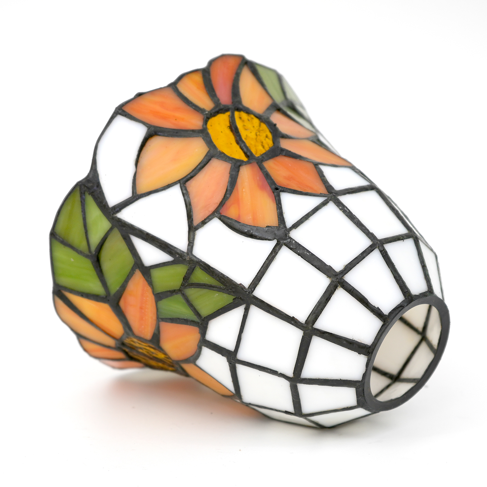 Blivuself Tiffany Lampshade Handcrafted Stained Glass Lampshade 6-Inch Horn Orange Sunflower Replacement Lampshade Chandelier Wall Lamp And Other Classic Craftsmanship Of Tiffany Style Retro Country Home Decoration (1 Piece, Zb6074)