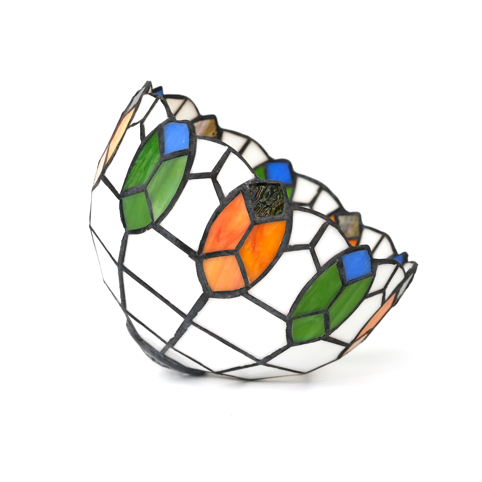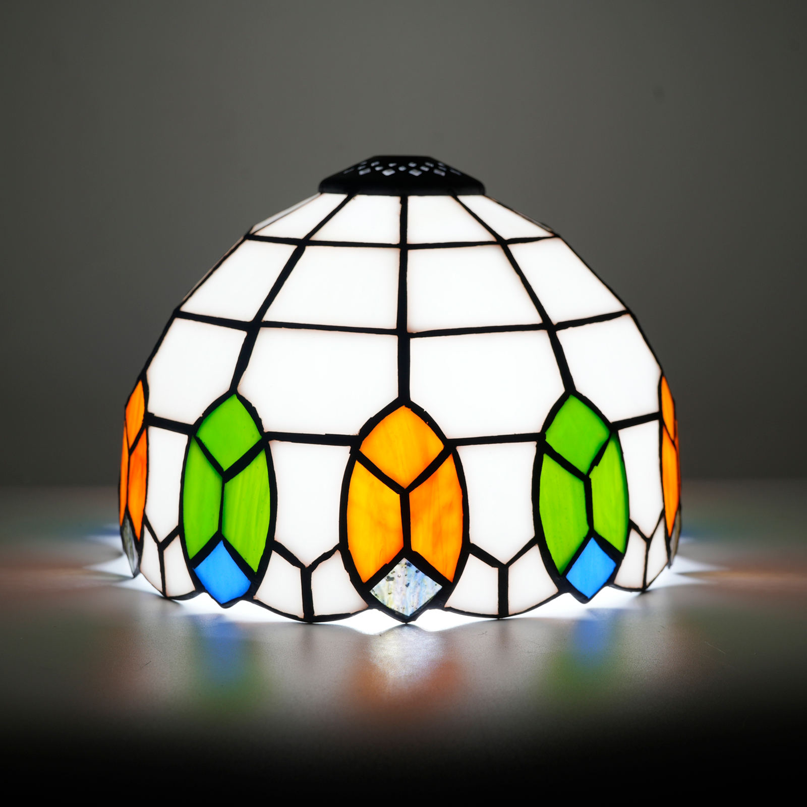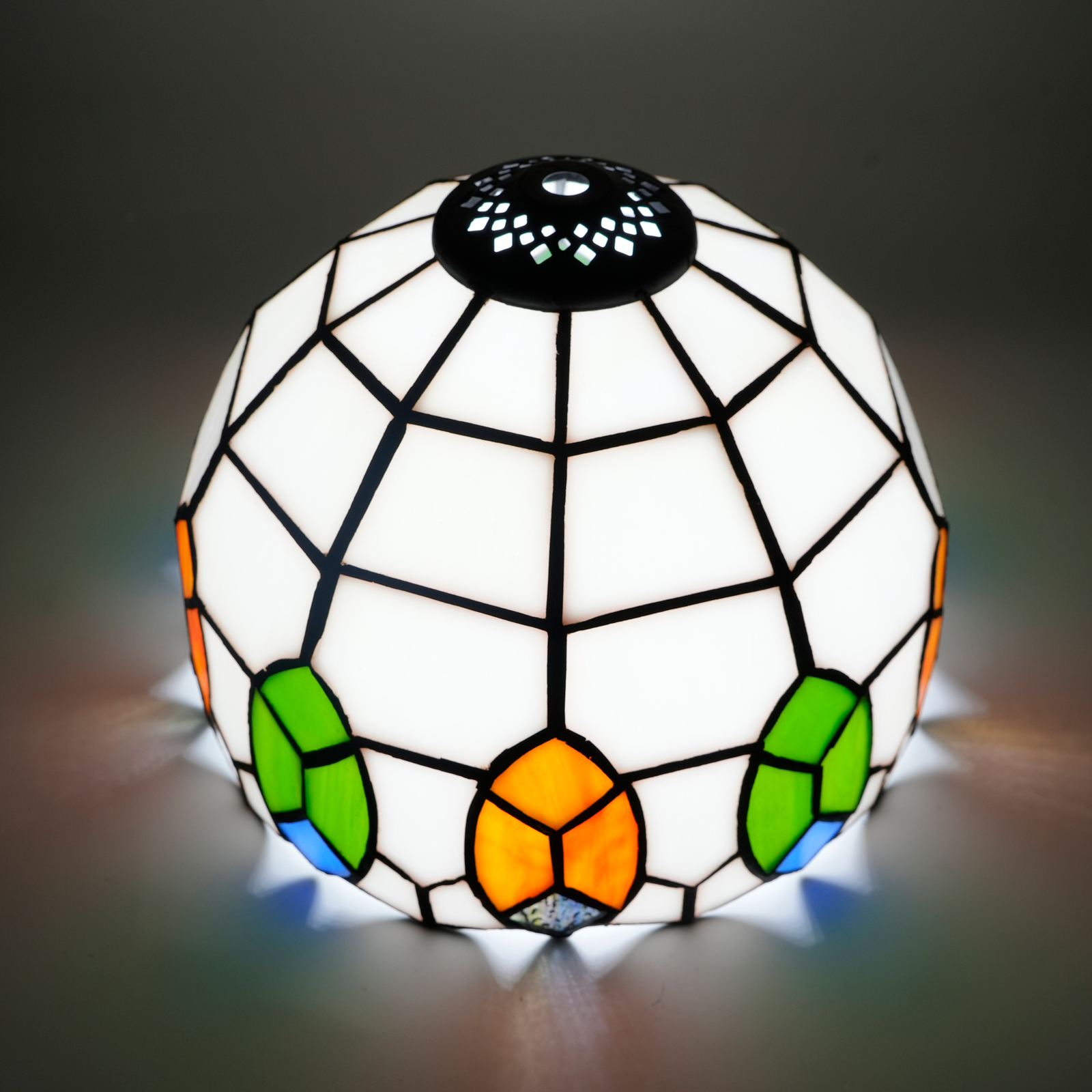 This 8-inch Tiffany colored glass lampshade, with two oranges as its theme pattern, exudes a strong rural charm. On the lampshade, the plump and full image of an orange is vividly depicted. The orange-red glass is ingeniously spliced together, simulating the bright color and texture of an orange, as if one could smell the fresh fragrance of the fruit. The emerald green leaves and the soft off-white background glass create a vivid picture of a bountiful harvest in the countryside, adding natural vitality and a warm atmosphere to the home space.
