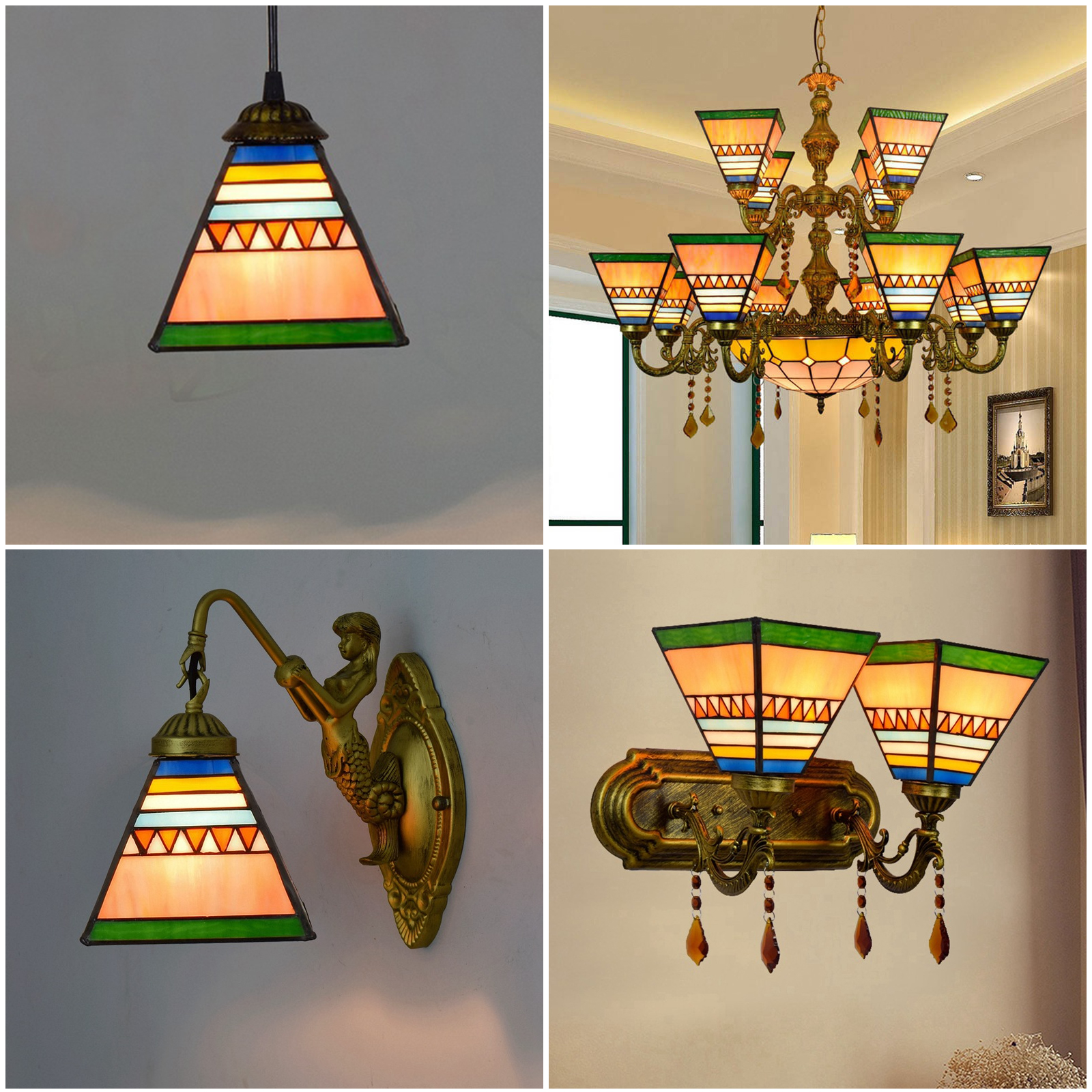 Blivuself Tiffany Lampshade Handmade Stained Glass Lampshade 6 Inch Pink Pyramid Replacement Lampshade, Chandelier, Wall Lamp And Other Tiffany Style Retro Garden Home Decoration Classic Craft (1 Piece, Wx3001)
