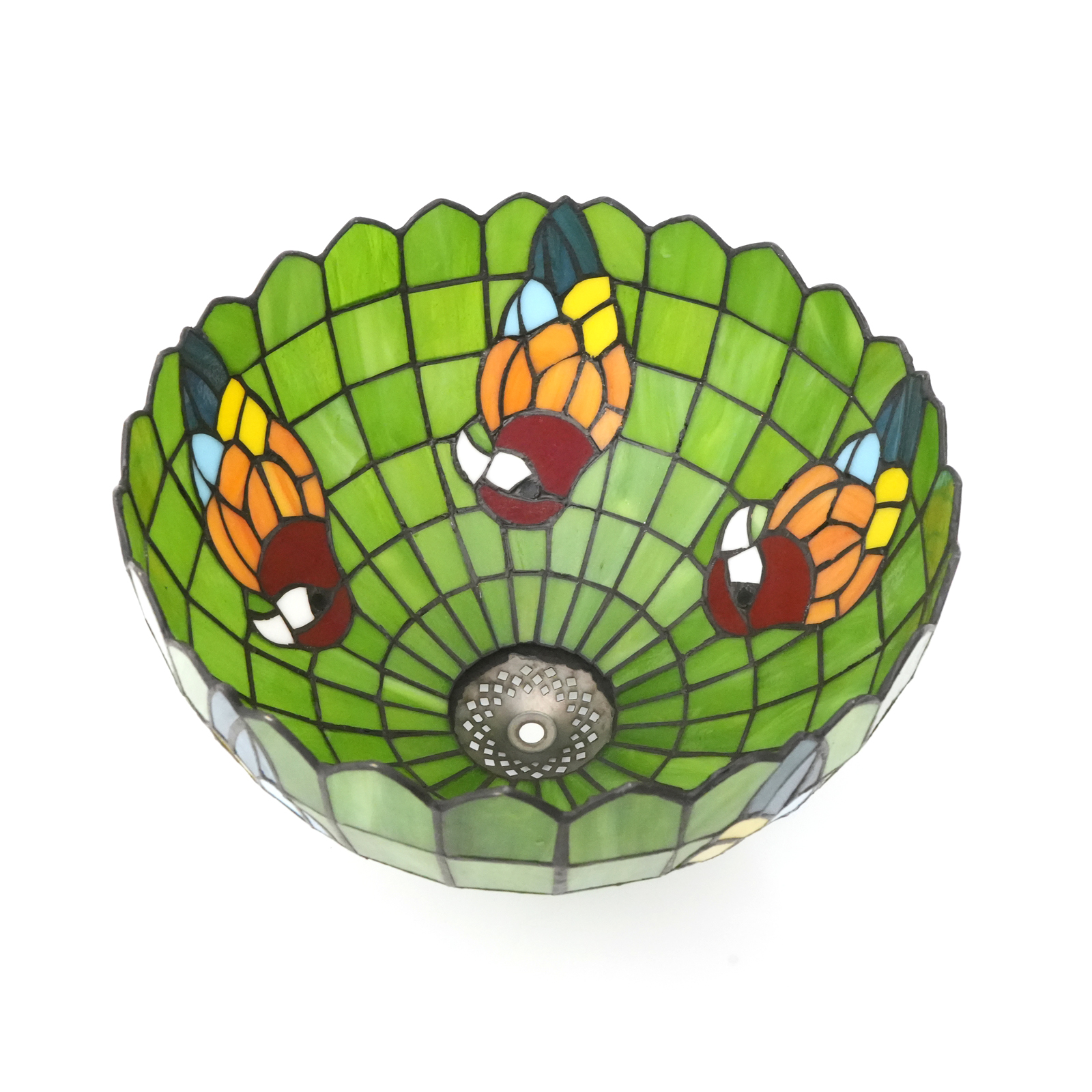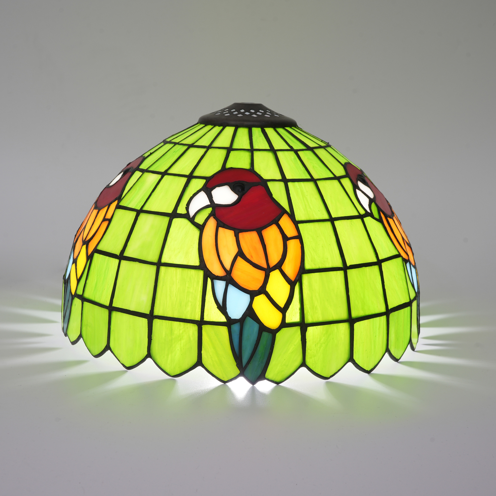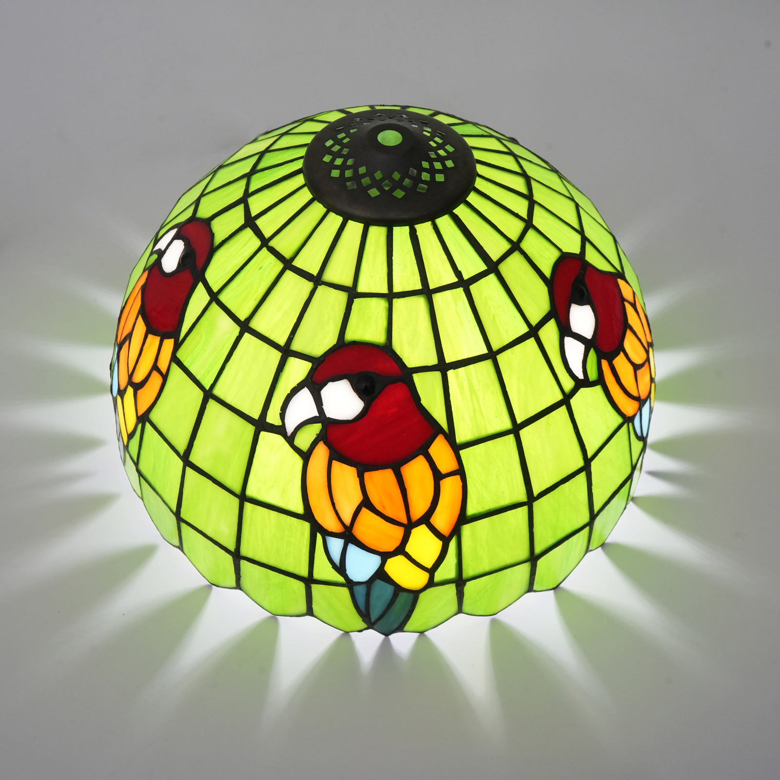 On the path of pursuing unique home aesthetics, this 12-inch Tiffany green background parrot glass lampshade, with its handcrafted craftsmanship and natural charm, initiates a tropical art journey for the space. It is suitable for table lamps, floor lamps, and chandeliers, reshaping the poetic dialogue between light and space.