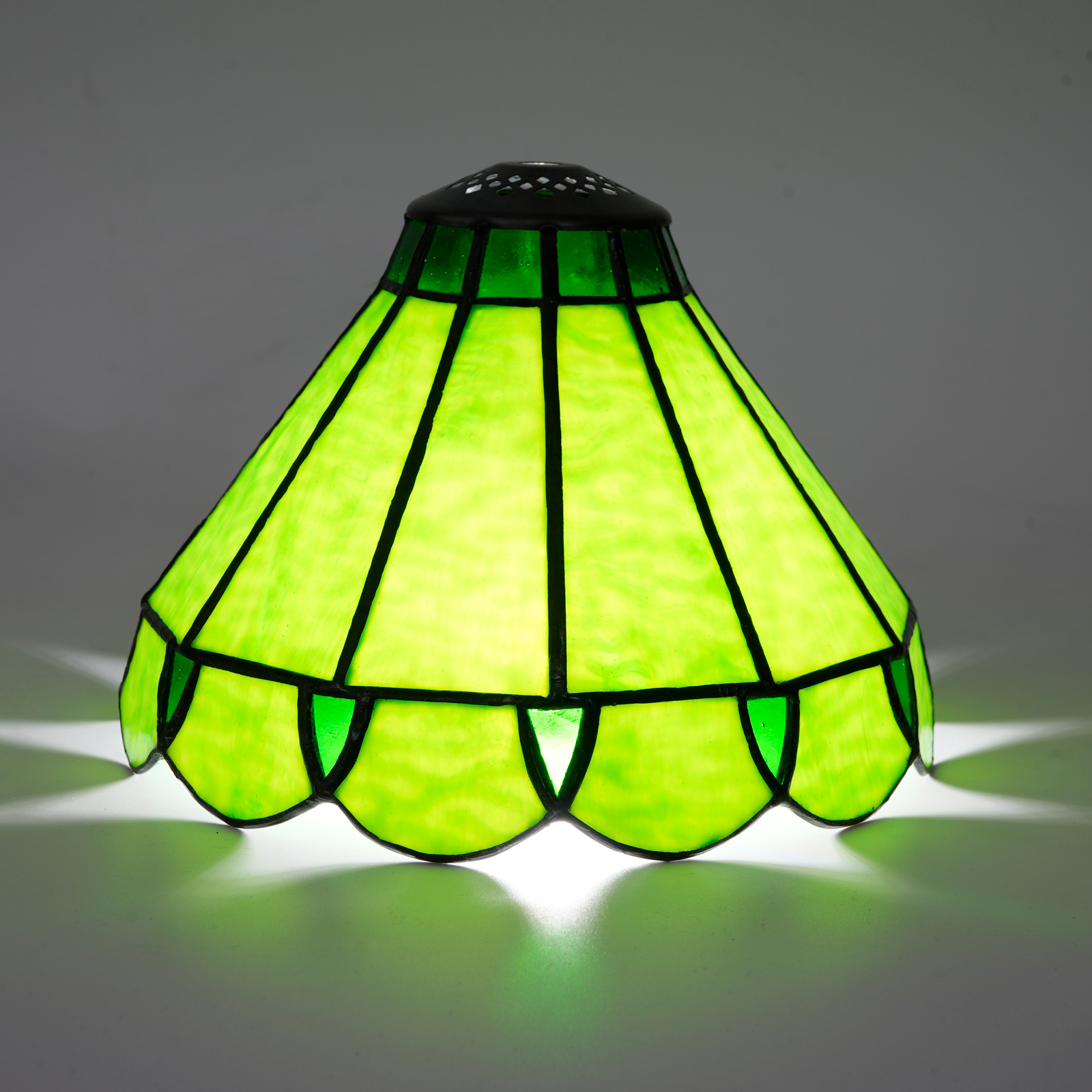 Inheriting the century-old craftsmanship of Tiffany, every piece of green water-patterned glass is hand-cut and pieced together by artisans. The natural water ripple texture flowing on the glass is like dynamic blue waves. When light passes through, it refracts a rich layer of green, as if the freshness of the forest morning mist has been condensed in this lampshade. The metal edge wrapping and welding are meticulous, stabilizing the structure while outlining a retro yet exquisite contour, making the lampshade a precious handcrafted art worth savoring.