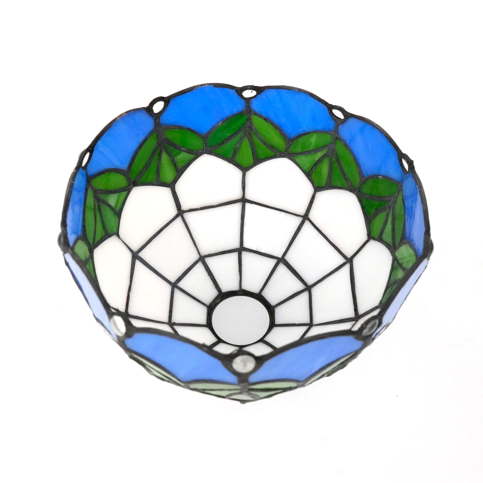 When the romantic elements of a midsummer night fill the air, this 8-inch Tiffany stained glass lampshade, with its hand-carved small lotus leaf pattern, weaves a dreamy light and shadow net for the home space.