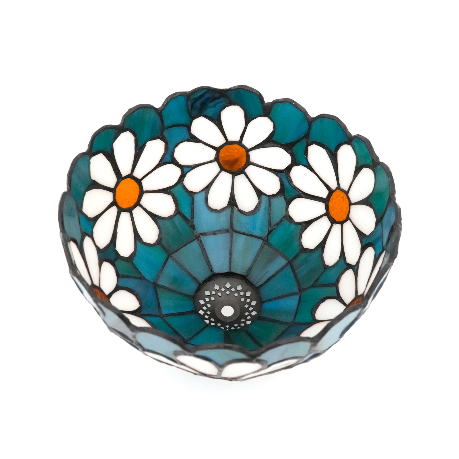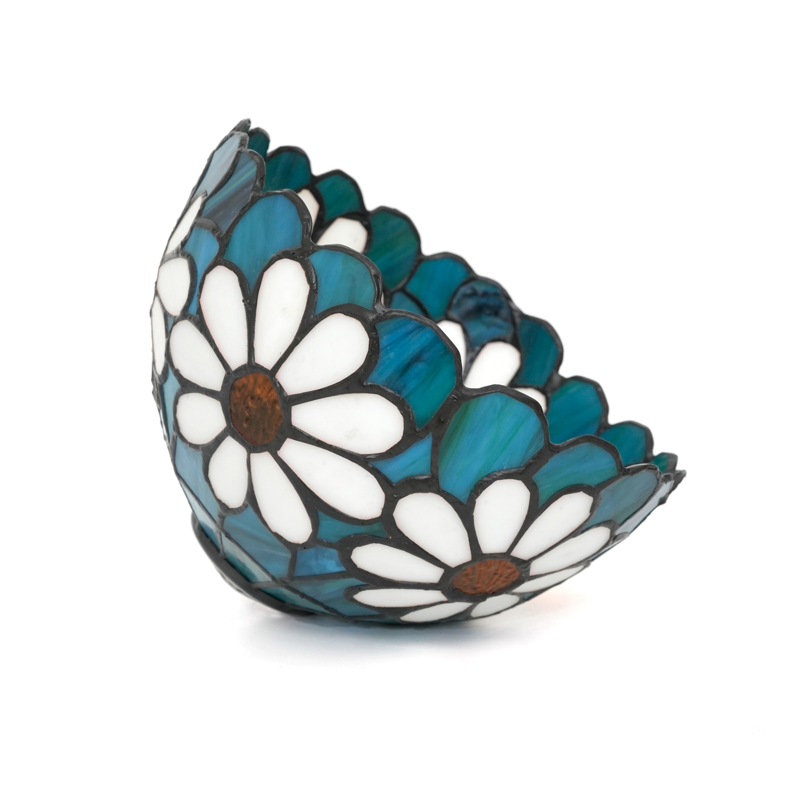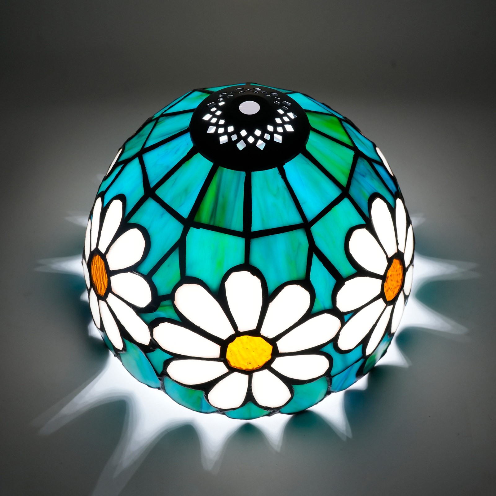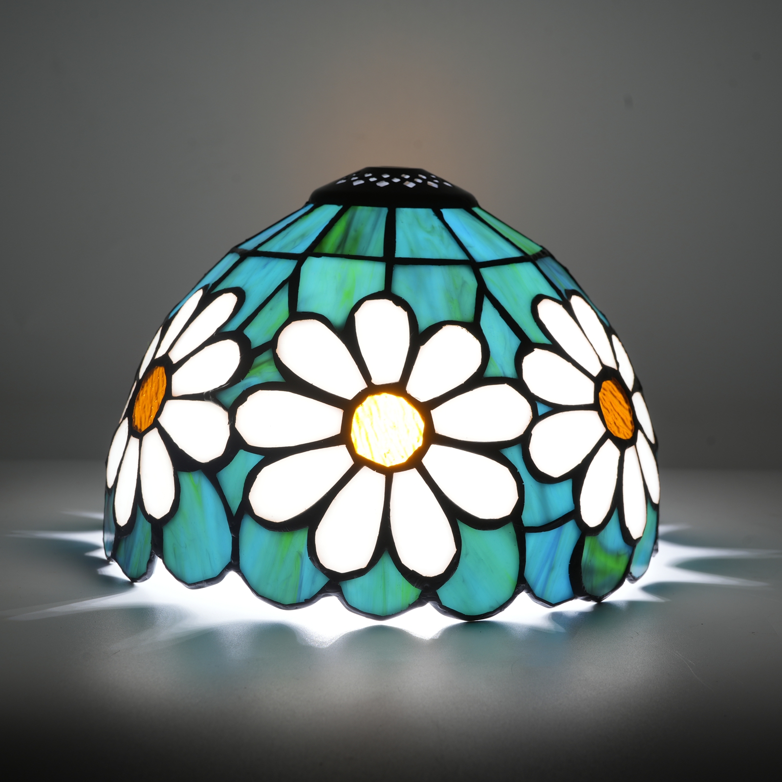 Tiffany Lampshade Handcrafted Stained Glass Lampshade 8-Inch Blue Background White Chrysanthemum Small Hole Replacement Lampshade, Table Lamp Chandelier Ceiling Lamp And Other Tiffany Style Retro Home Decoration Classic Craftsmanship (1 Piece, Dz08077x)