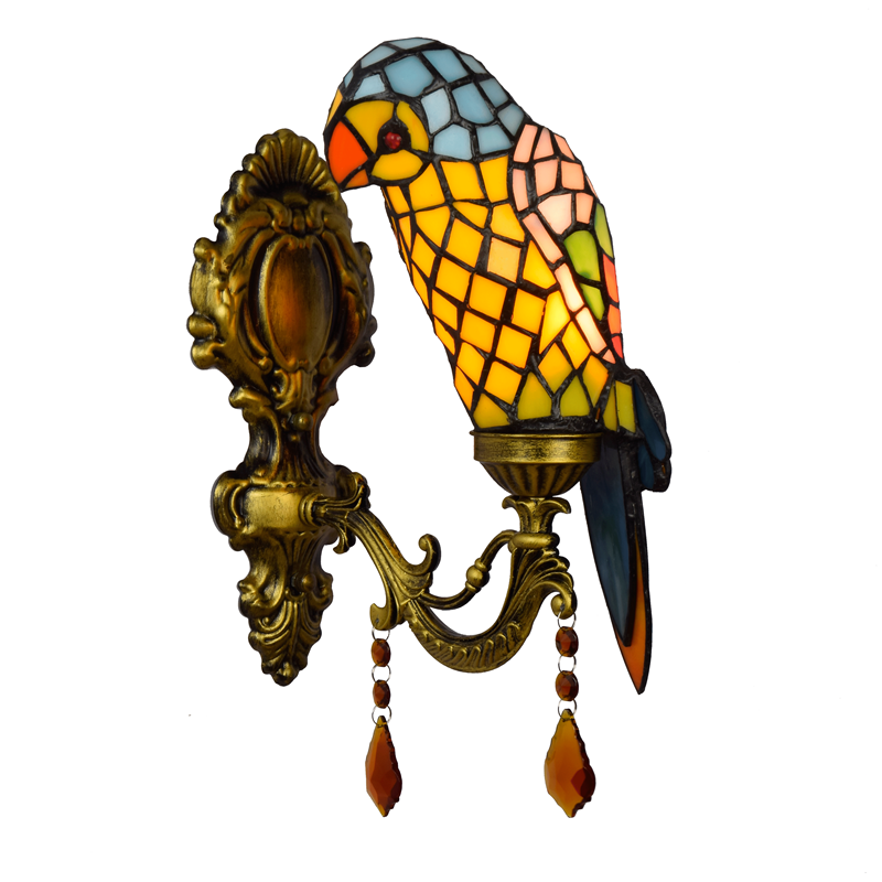 Blivuself Tiffany European Retro Style Stained Glass Blue Parrot For Restaurant Bedroom Bedside Wall Lamp European Retro Light Luxury Style Living Room Background Wall Passage Wall Lamp Blue Parrot - Single Head Crystal Wall Lamp OFW0977