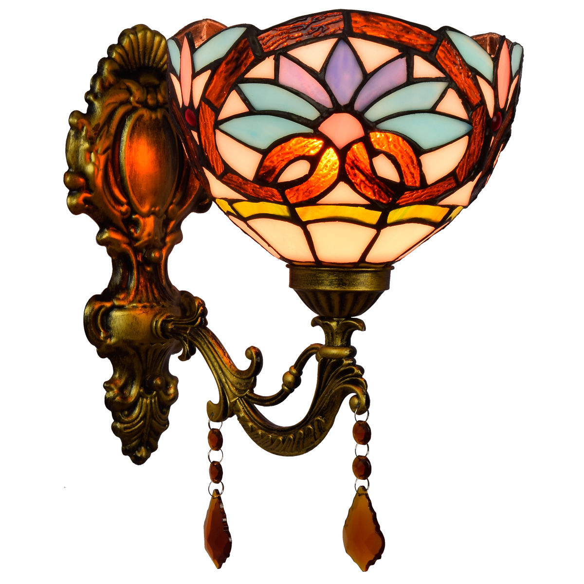 Blivuself Tiffany European Vintage Style Stained Glass 8 Inch Warm Yellow Baroque For Restaurant Bedroom Bed Wall Lamp European Vintage Light Luxury Style Living Room Background Wall Passage Wall Lamp 8" Baroque - Single Head Crystal Wall Lamp OFW0988