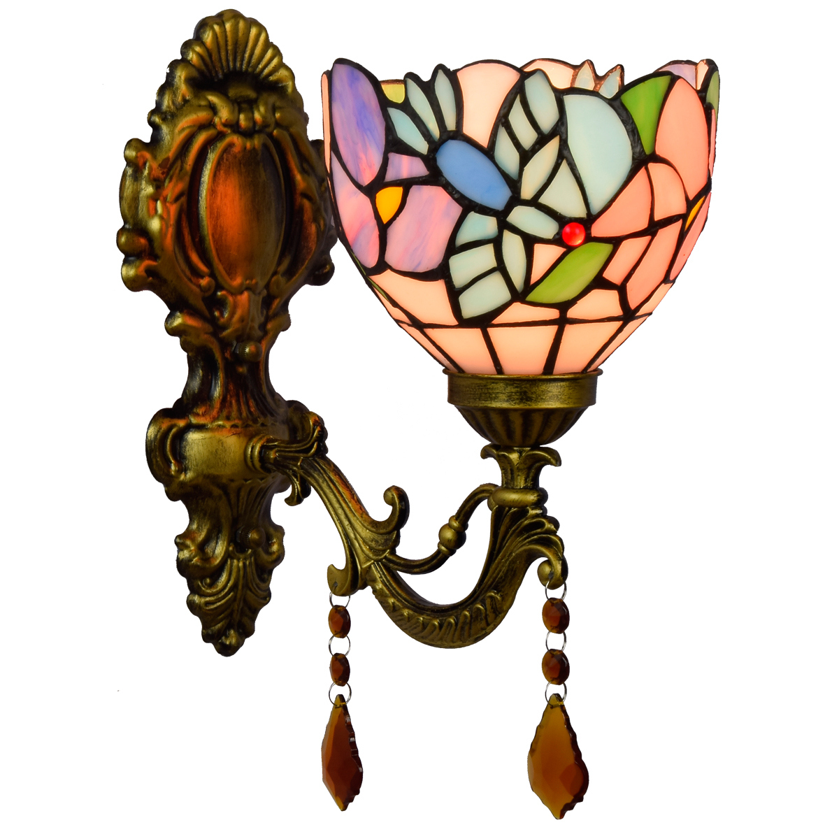 Blivuself Tiffany European-Style Stained Glass 4 Inch Red Flowers Edge For Restaurant Bedroom Bed Wall Lamp European-Style Retro Light Luxury Style Living Room Background Wall Passage Wall Lamp 4" Flowers Edge - Single Head Crystal Wall Lamp OFW0990