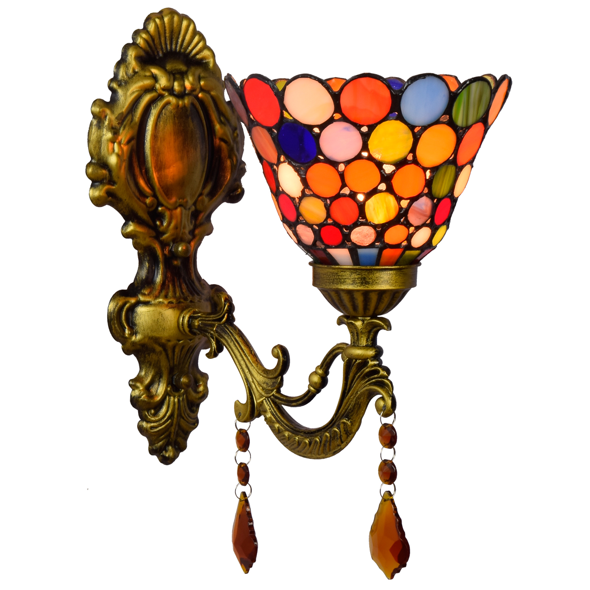 Blivuself Tiffany European Vintage Style Stained Glass 6 Inch Warm Yellow Colored Beads For Restaurant Bedroom Bed Wall Lamp European Vintage Light Luxury Style Living Room Background Wall Passage Wall Lamp 6" Colored Beads - Single Head Crystal Wall Lamp OFW0985