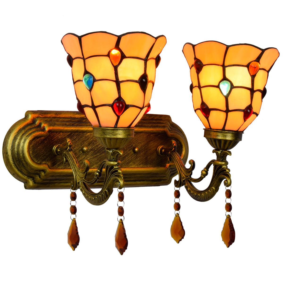 Blivuself Tiffany European Vintage Style Stained Glass 6-Inch Warm Yellow Colored Beads Be Suitable For Dining Room Bedroom Bed Wall Lamp Light Luxury Style Living Room Background Wall Passage Wall Lamp 6-Inch Colored Beads - Double Head Crystal Wall Lamp OFW1009