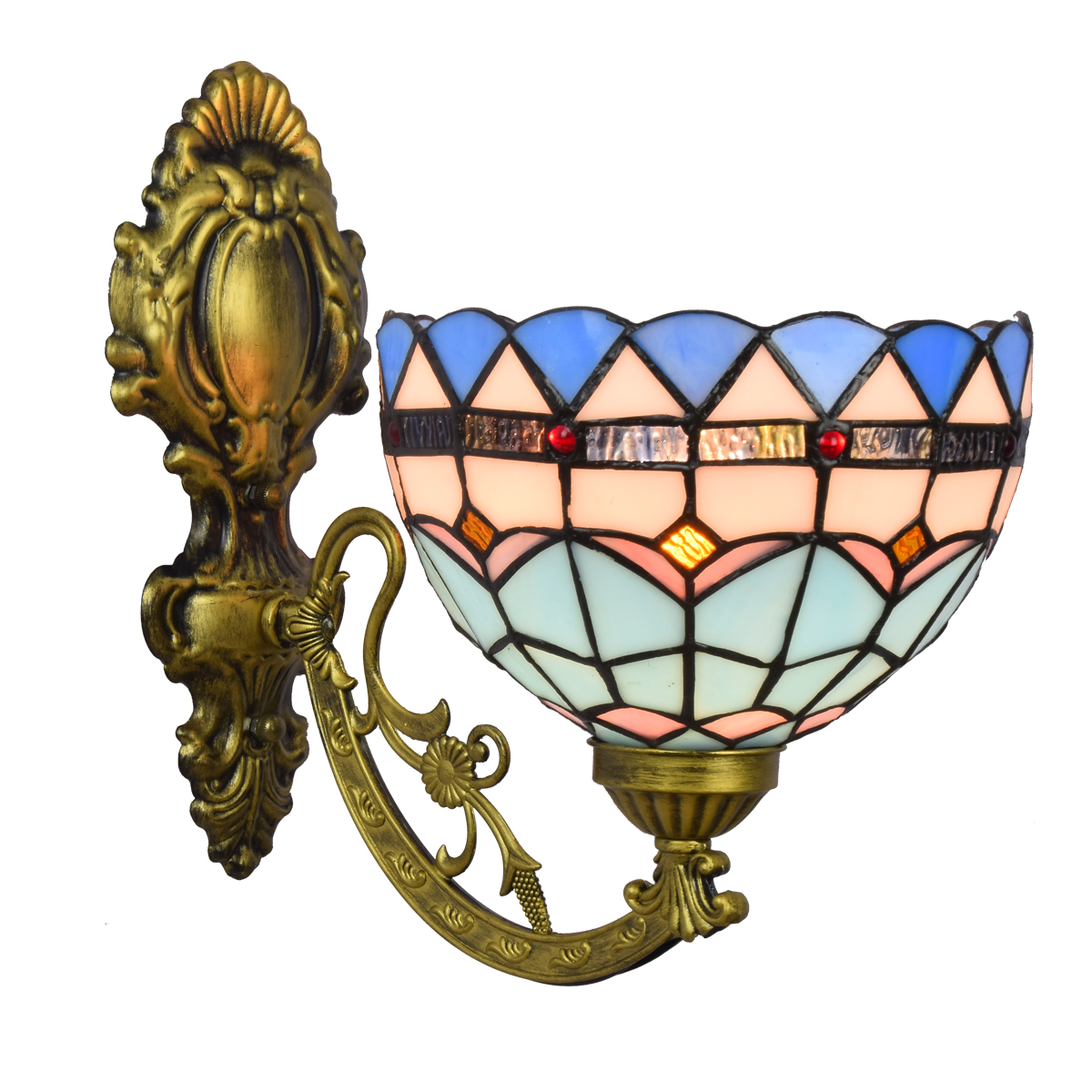 Blivuself Tiffany European Vintage Style Stained Glass 8 Inch Blue Love For Restaurant Bedroom Bed Wall Lamp European Vintage Light Luxury Style Living Room Background Wall Passage Wall Lamp 8" Blue Love - Single Head Crystal Wall Lamp OFW0989