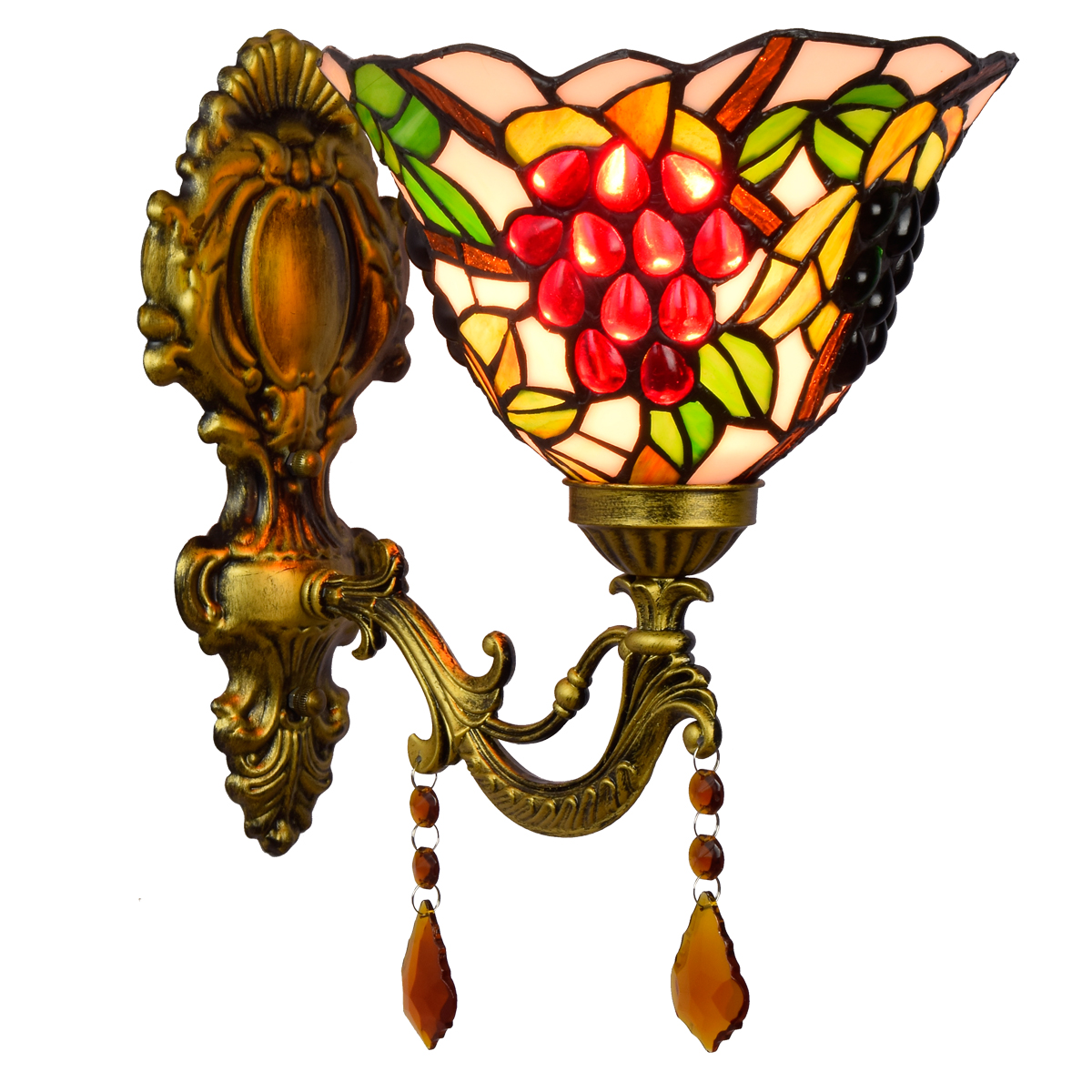 Blivuself Tiffany European Vintage Style Stained Glass 8-Inch Red Grape For Restaurant Bedroom Bed Wall Lamp European Vintage Light Luxury Style Living Room Background Wall Passage Wall Lamp 8-Inch White Grape - Single Head Crystal Wall Lamp OFW0979