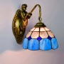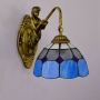 Blivuself Tiffany European Vintage Style Stained Glass 8-Inch Blue Blue Diamond Restaurant Bedroom Bedside Wall Lamp Light Luxury Style Living Room Background Wall Passage Wall Lamp OFW0906