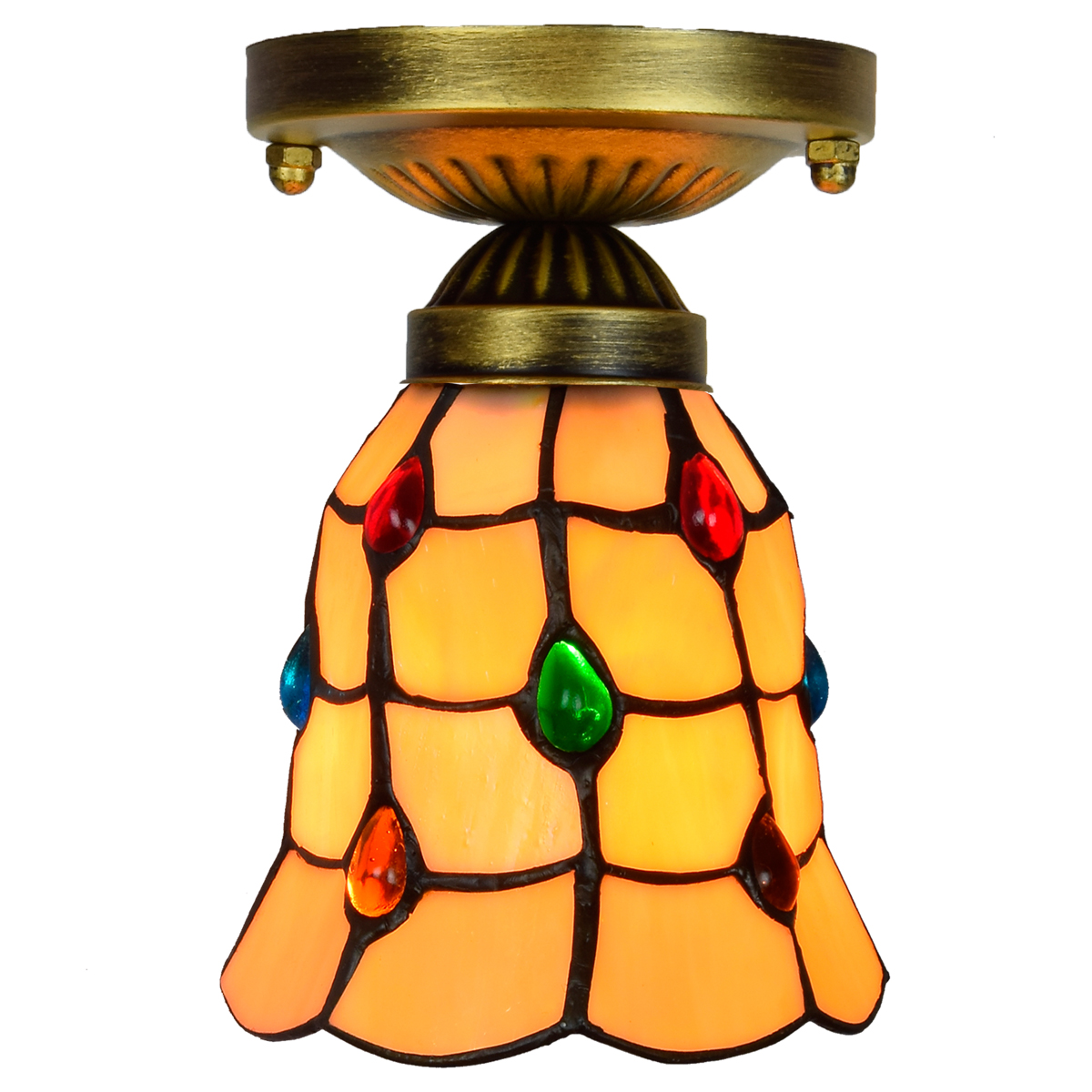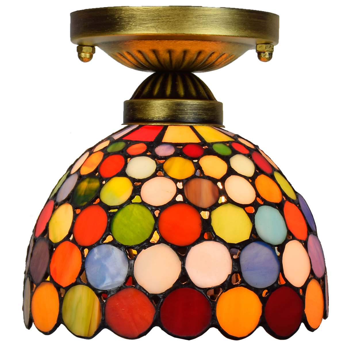 Blivuself Tiffany Style Stained Glass 6-Inch Ginger Ceiling Light European And American Retro Style, Suitable For Living Room, Dining Room, Bedroom, Bar And Other Indoor Home Decoration 6-Inch Colored Beads-Small Ceiling Light OFC1018