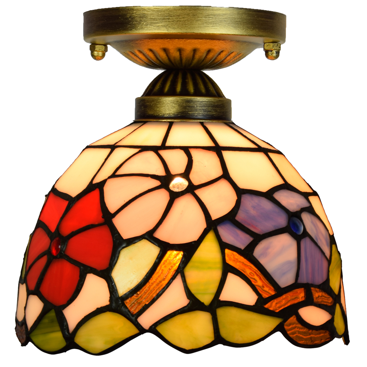 Blivuself Tiffany Style Stained Glass 8-Inch Red Round Piece Ceiling Light European And American Retro Style, Suitable For Living Room, Dining Room, Bedroom, Bar And Other Indoor Home Decoration 8-Inch Colorful Round Piece Big Mouth - Small Ceiling Light OFC1016