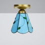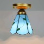 Blivuself Tiffany Style Stained Glass 6-Inch Blue Ceiling Light European And American Retro Style, Suitable For Living Room, Dining Room, Bedroom, Bar And Other Indoor Home Decoration 6-Inch Blue Leaf Big Mouth - Small Ceiling Light OFC1004