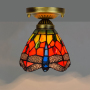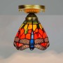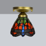 Blivuself Tiffany Style Stained Glass 6-Inch Deep Red Ceiling Light European And American Retro Style, Suitable For Living Room, Dining Room, Bedroom, Bar And Other Indoor Home Decoration 6-Inch Red Dragonfly Big Mouth - Small Ceiling Light OFC1025