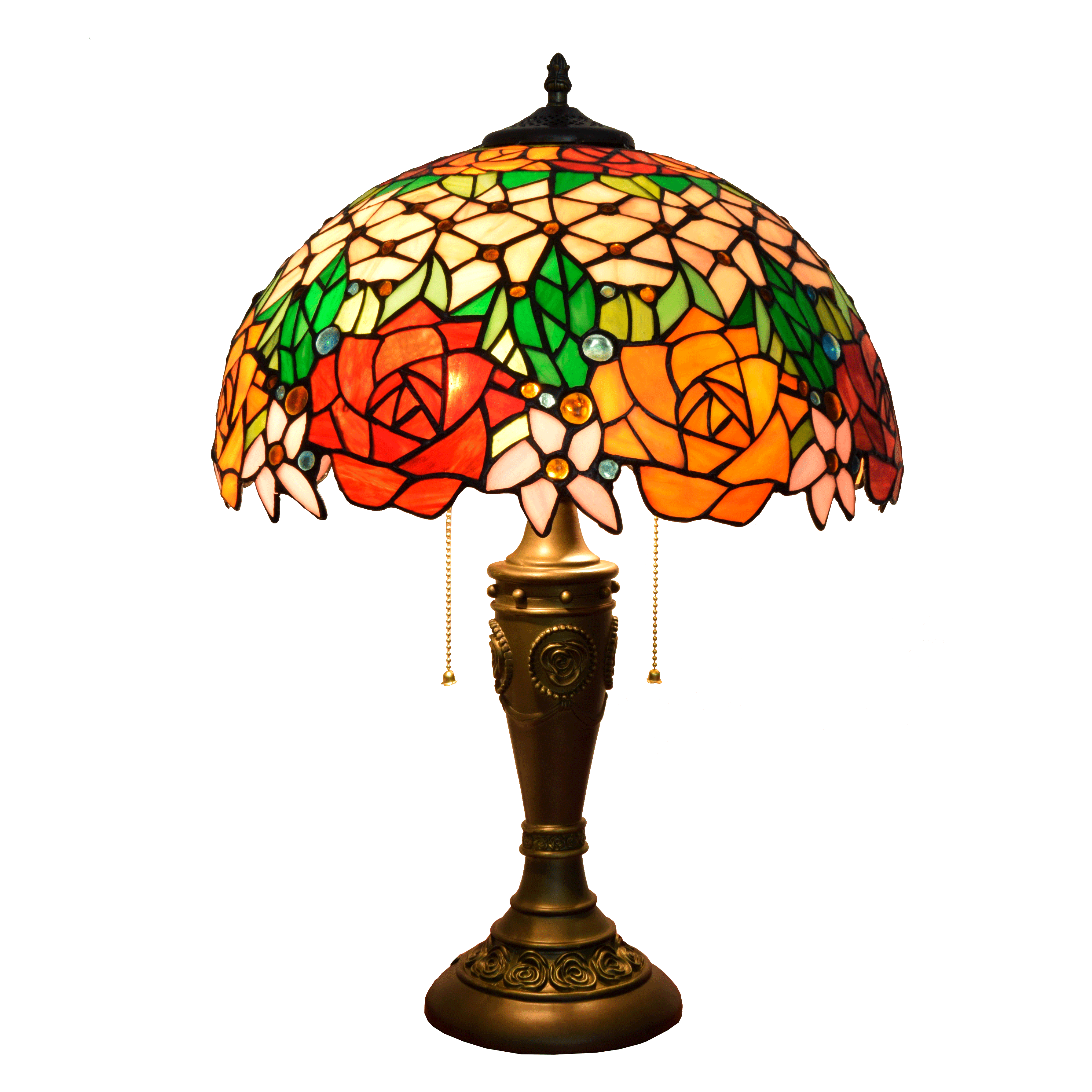 Blivuself Tiffany Stained Glass Red, Beige Rose Rose Logo Base Pastoral, European, Vintage Style Table Lamp 16x16x24 Inch Table Lamp Kitchen Study Desk Bedroom Corridor Eye Protection Reading Light Furniture Decoration Gorgeous Rose Lamp OFT888