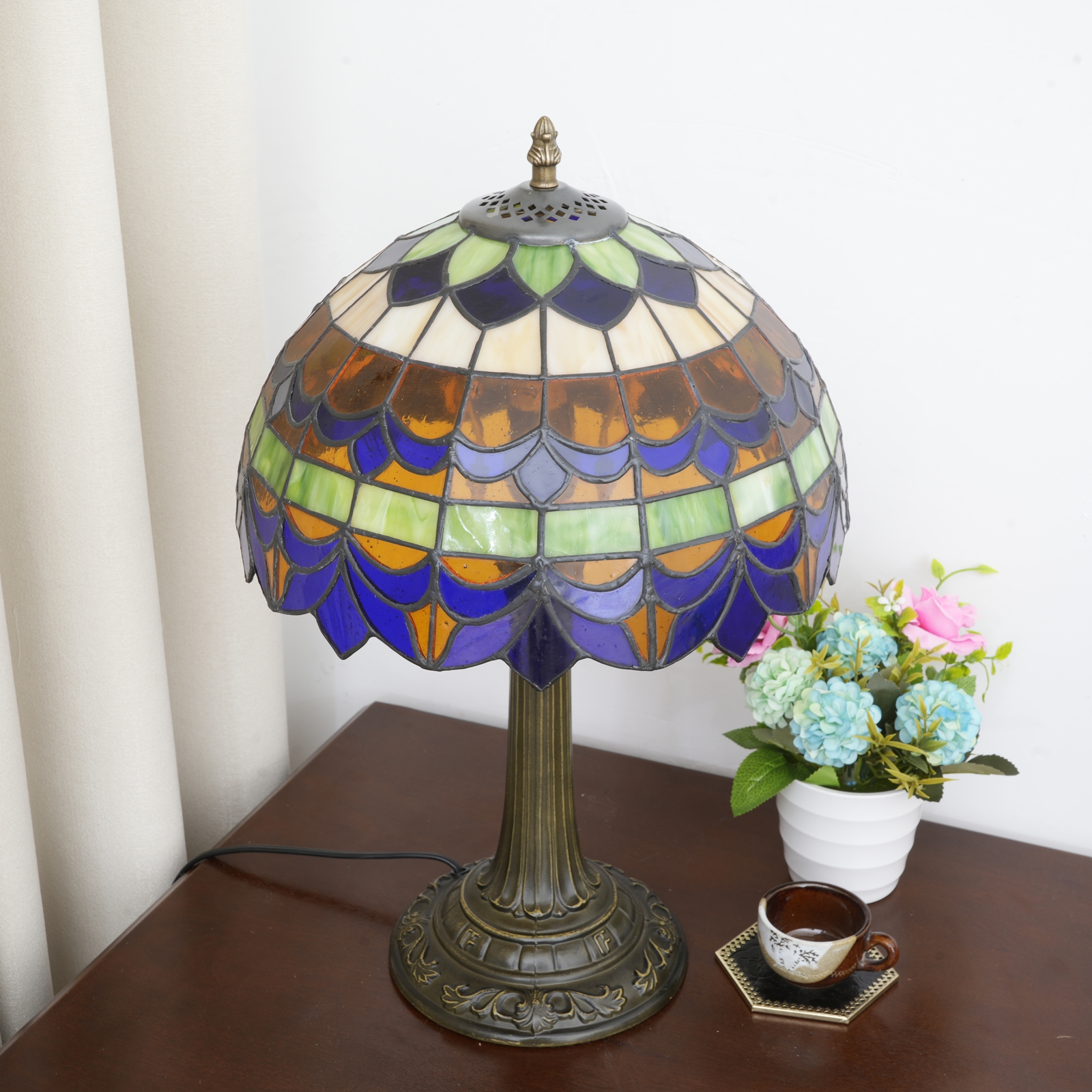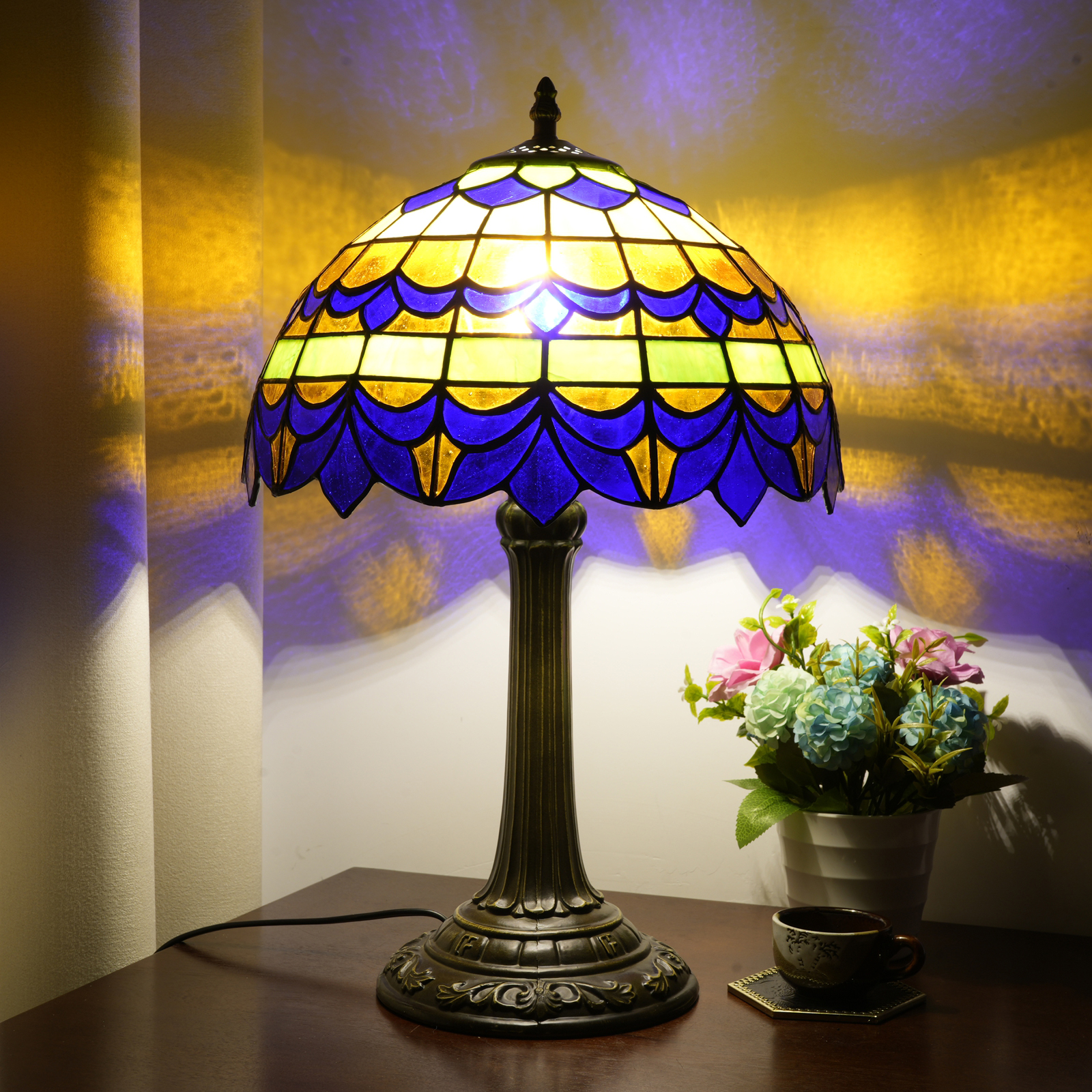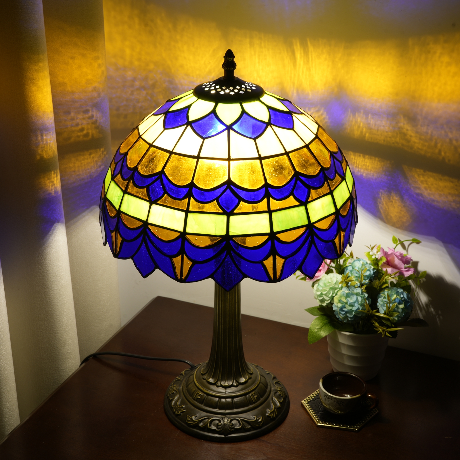 Inheriting the classic craftsmanship of Tiffany, the lampshade is hand-cut and welded. Colored glass is like a dynamic palette, with blue blending with yellow, purple and other colors, outlining the exquisite pattern of "translucent blue beads". The splicing of each piece of glass and the wrapping of every piece of copper foil are all filled with the warmth of the artisan, allowing the desk lamp to break away from the mediocrity of the assembly line and become a unique artistic masterpiece, adding a touch of retro artistic texture to the home.