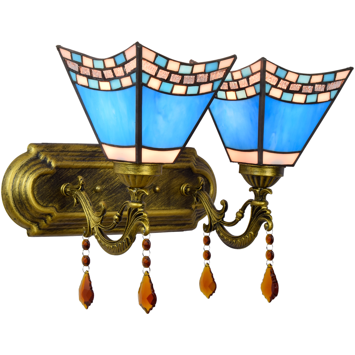 Blivuself Tiffany European Vintage Style Stained Glass 6-Inch Blue Dovetail For Dining Room Bedroom Bedside Wall Lamp Light Luxury Style Living Room Background Wall Passage Wall Lamp 6-Inch Blue Dovetail - Double Head Crystal Wall Lamp OFW1010
