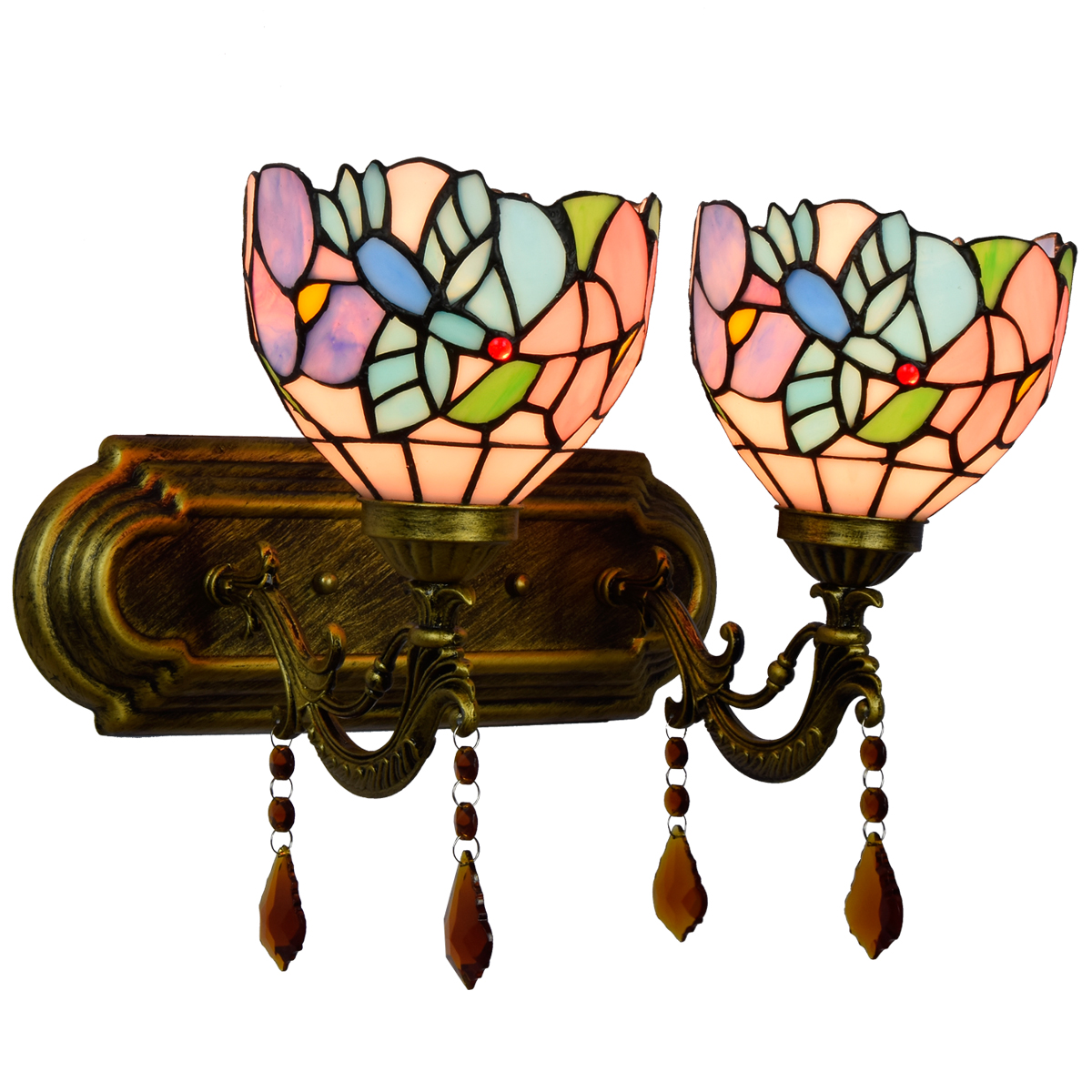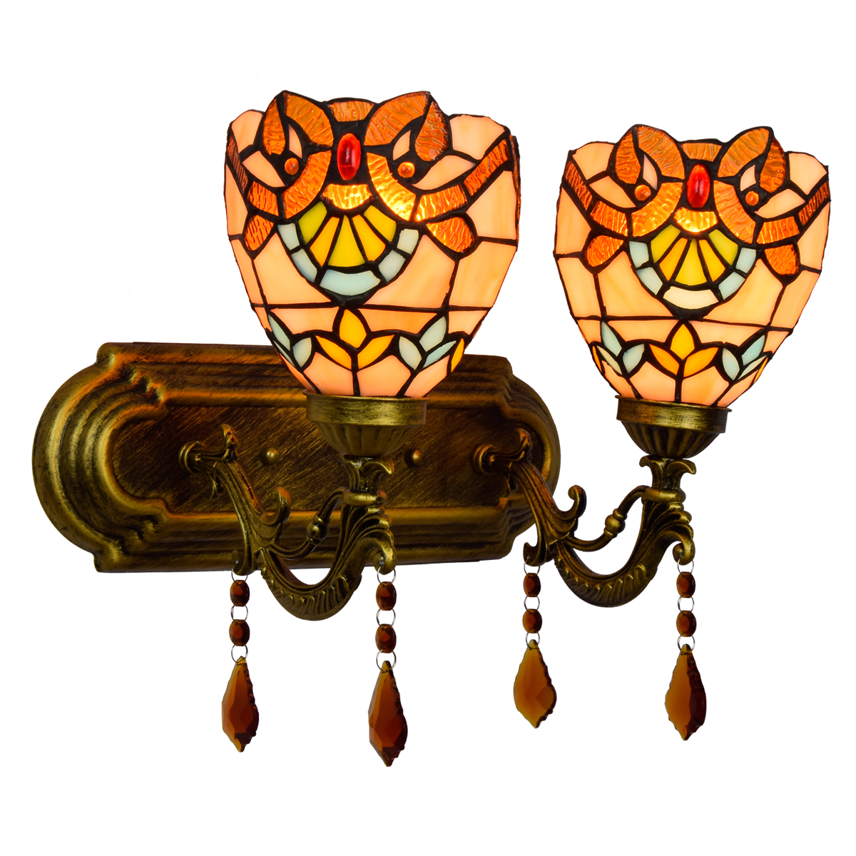 Blivuself Tiffany European Vintage Style Stained Glass 6-Inch Baroque Be Suitable For Dining Room Bedroom Bedside Wall Lamp Light Luxury Style Living Room Background Wall Passage Wall Lamp 6-Inch Baroque - Double Head Crystal Wall Lamp OFW1014