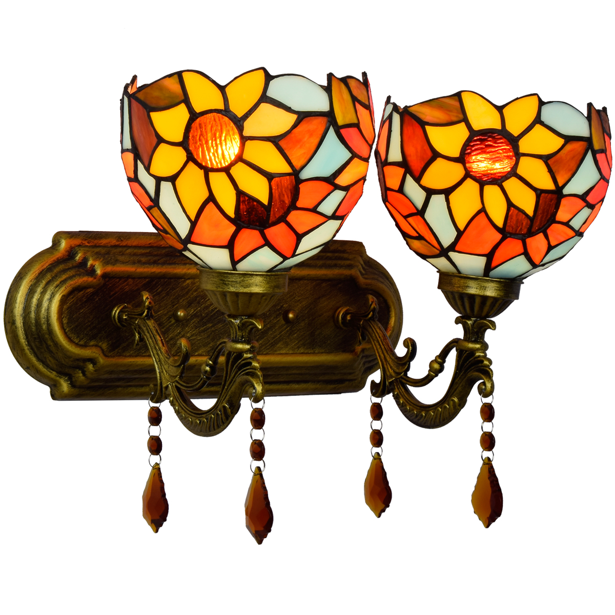 Blivuself Tiffany European Vintage Style Stained Glass 6-Inch Orange megaphone Sunflower Be suitable for Dining Room Bedroom Bed Wall Lamp Light Luxury Style Living Room Background Wall Passage Wall Lamp 6-Inch megaphone Sunflower - Double Head Crystal Wall Lamp OFW1005