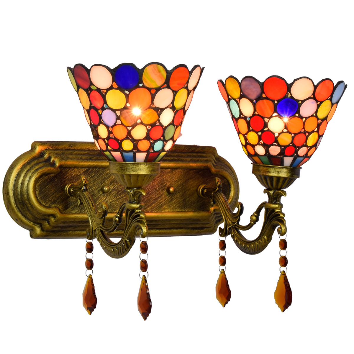 Blivuself Tiffany European Vintage Style Stained Glass 6-Inch Red Circle Be Suitable For Dining Room Bedroom Bed Wall Lamp Light Luxury Style Living Room Background Wall Passage Wall Lamp 6-Inch Colorful Circle - Double Head Crystal Wall Lamp OFW1006