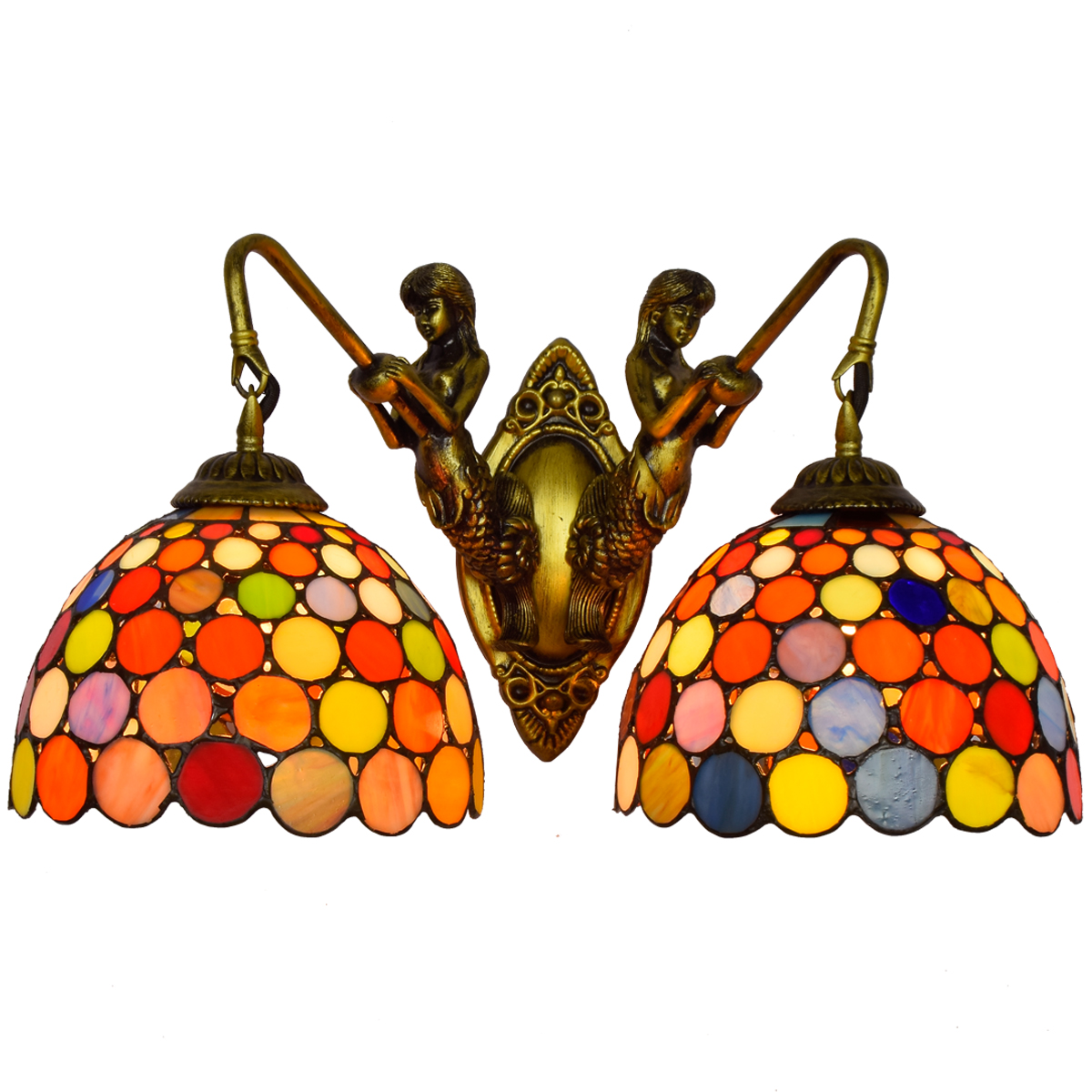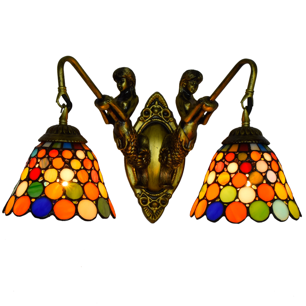 Blivuself Tiffany European Vintage Style Stained Glass 6 Inches Warm Yellow Colored Beads For Restaurant Bedroom Bed Wall Lamp Light Luxury Style Living Room Background Wall Passage Wall Lamp 6 Inches Colored Beads - Double Head Mermaid Wall Lamp OFW0964