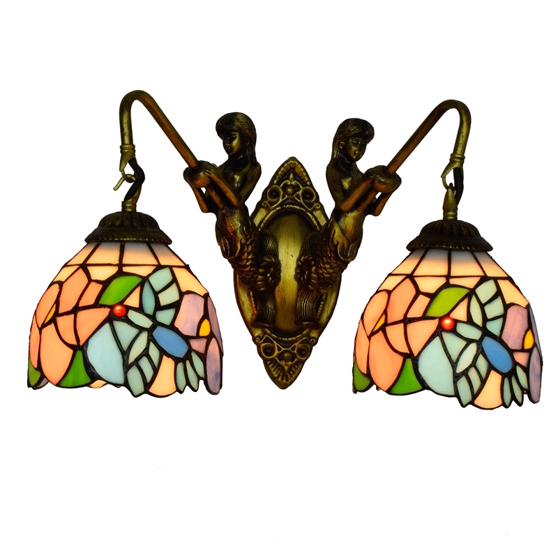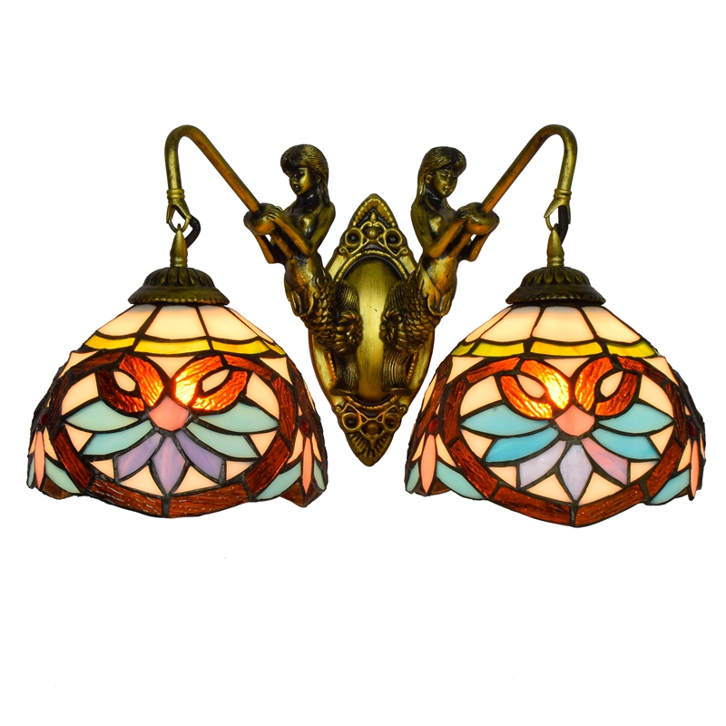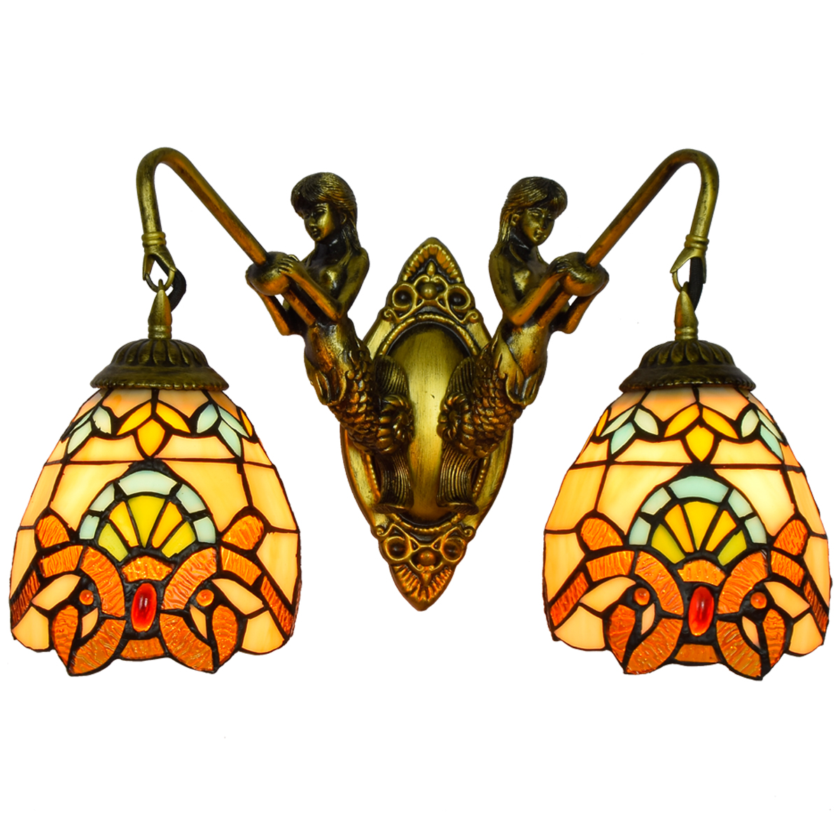Blivuself Tiffany European Vintage Style Stained Glass 6 Inches Warm Yellow Baroque For Dining Room Bedroom Bed Wall Lamp Light Luxury Style Living Room Background Wall Passage Wall Lamp 6 Inches Baroque - Double Head Mermaid Wall Lamp OFW0955
