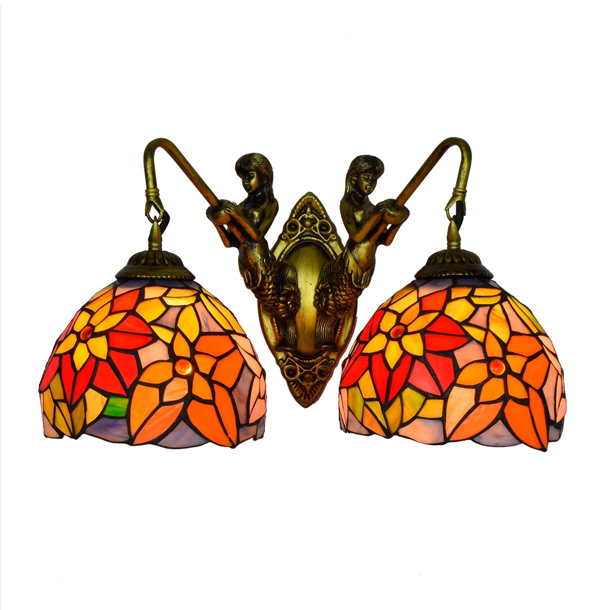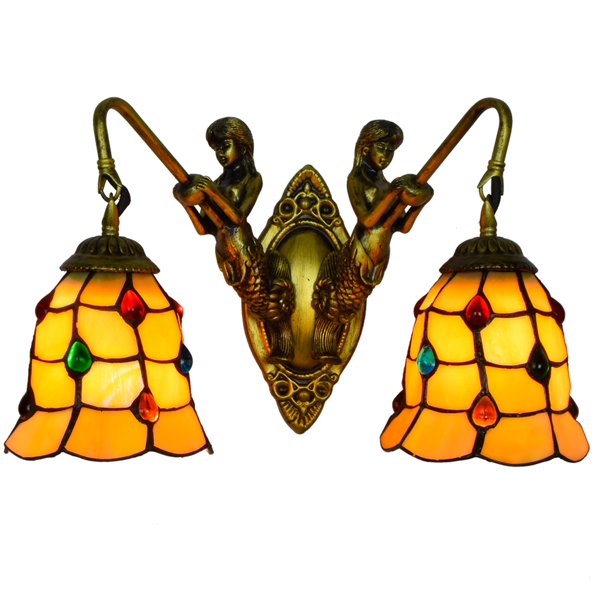Blivuself Tiffany European Retro Style Stained Glass 8-Inch Warm Yellow Baking Bend For Restaurant Bedroom Bed Wall Lamp Light Luxury Style Living Room Background Wall Passage Wall Lamp 8-Inch Simple European Baking Bend - Double Head Mermaid Wall Lamp OFW0972