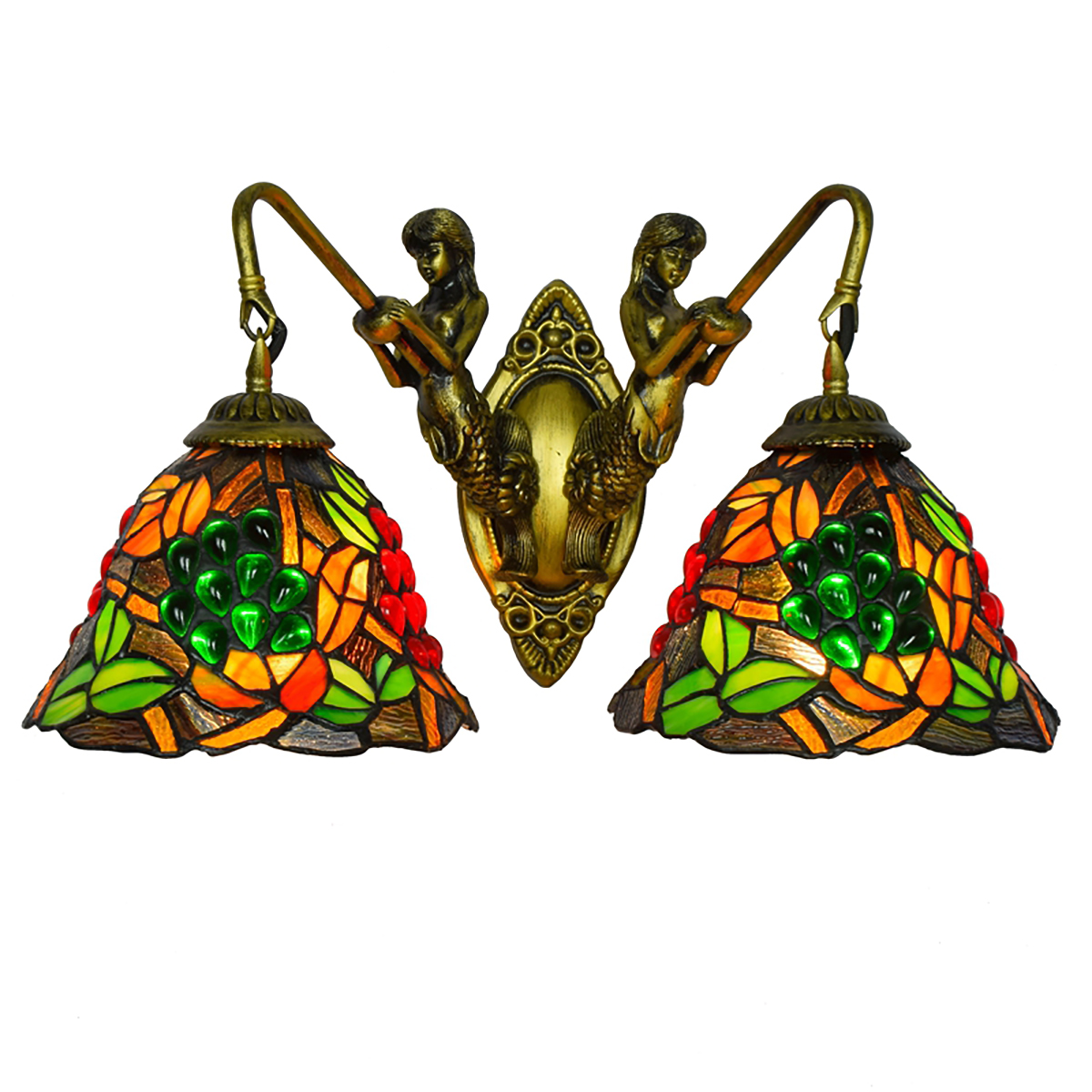 Blivuself Tiffany European Vintage Style Stained Glass 8-Inch Deep Purple Grape For Restaurant Bedroom Bed Wall Lamp Light Luxury Style Living Room Background Wall Passage Wall Lamp 8-Inch Black Grape - Double Head Mermaid Wall Lamp OFW0950