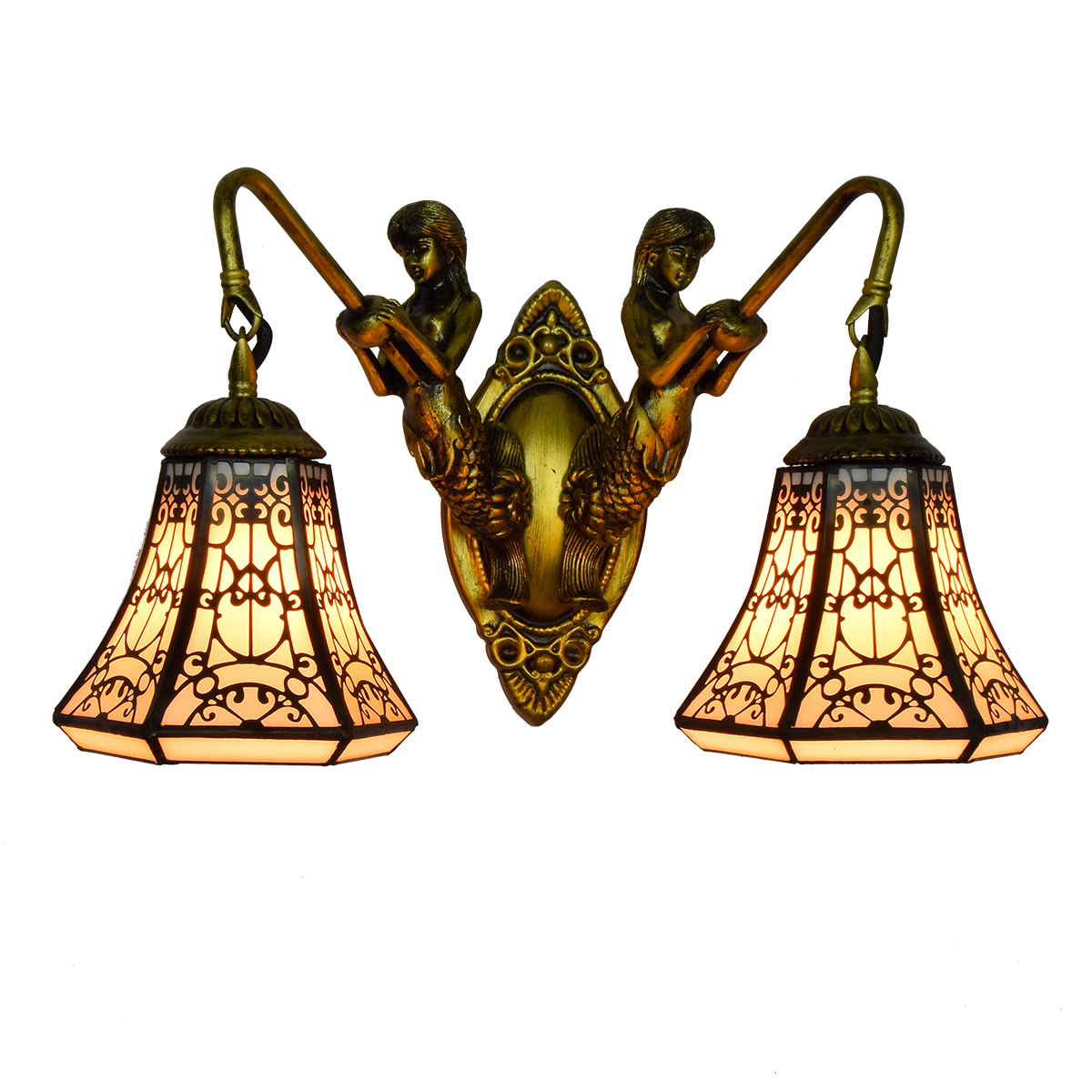Blivuself Tiffany European Vintage Style Stained Glass 6 Inches White Copper Mesh For Restaurant Bedroom Bed Wall Lamp Light Luxury Style Living Room Background Wall Passage Wall Lamp 6 Inches Copper Mesh - Double Head Mermaid Wall Lamp OFW0969