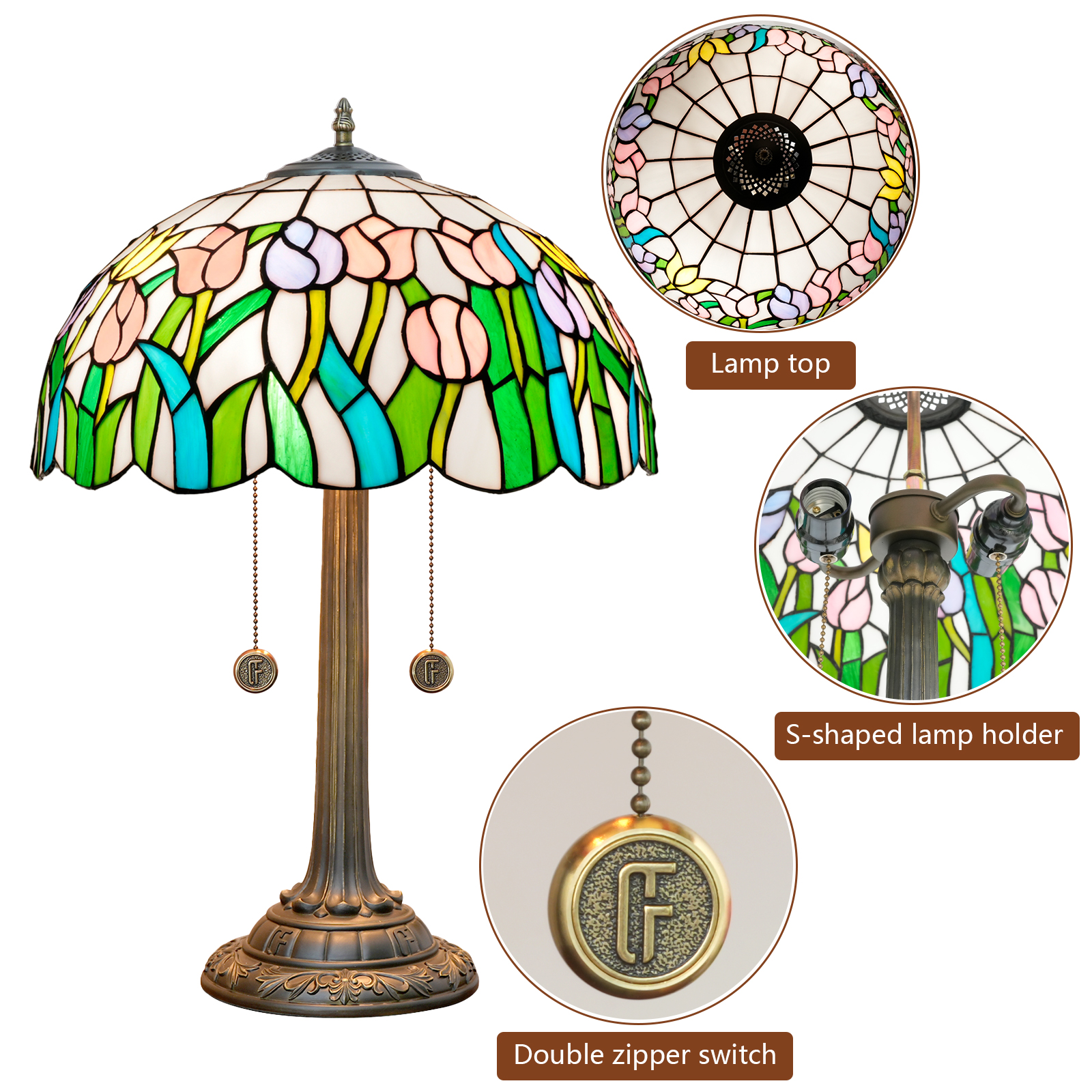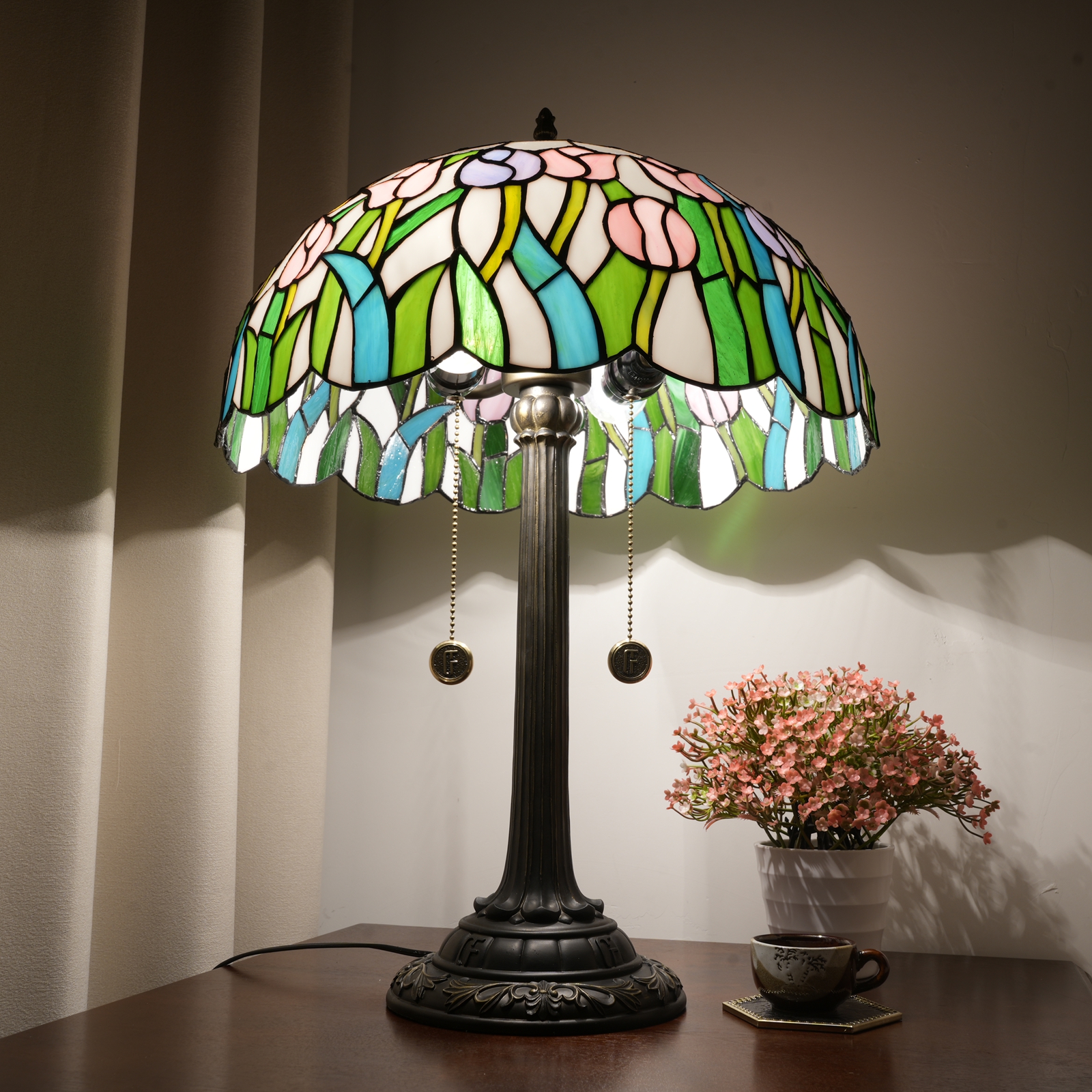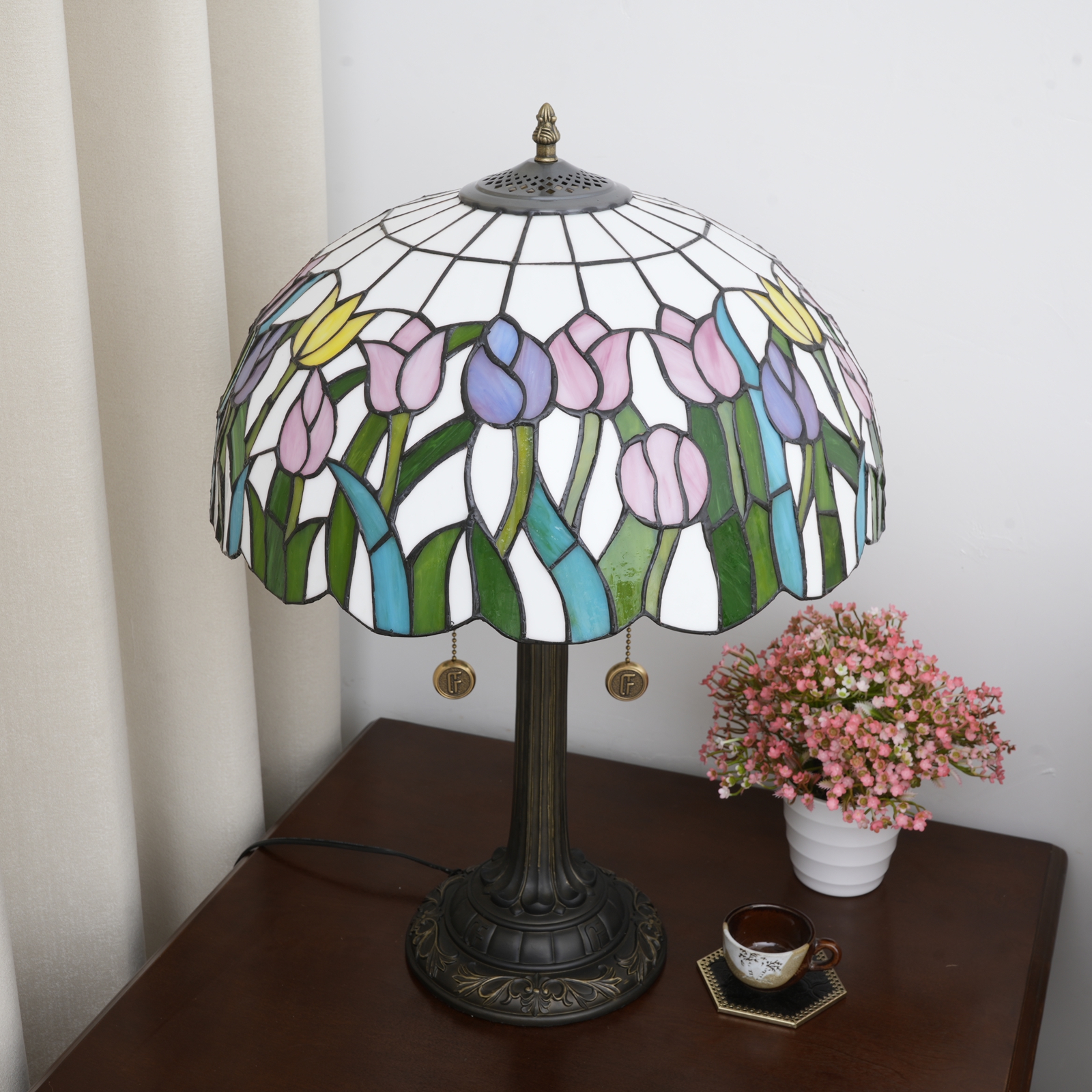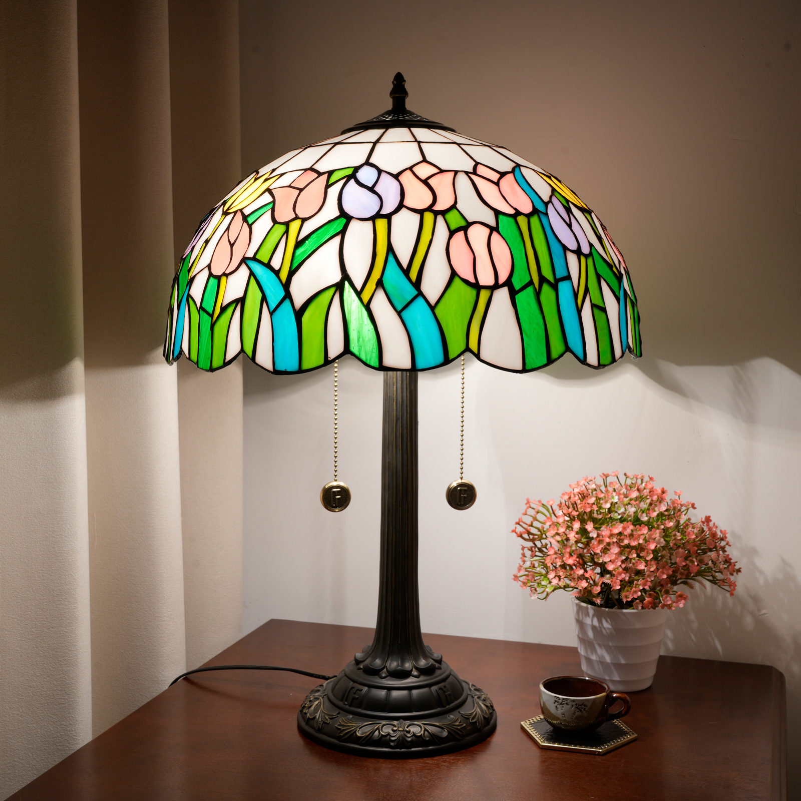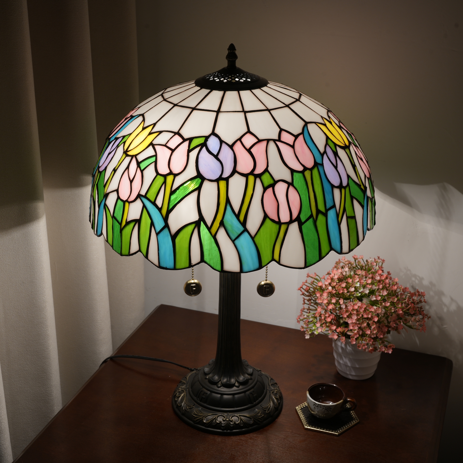 When Tiffany craftsmanship meets the romantic tulips, this Tiffany colored glass table lamp - Tulip Series (16 inches) is like an artistic bouquet stepping out of the Monet Garden, sketched out an elegant and healing decorative atmosphere for the bedroom and bedside space, allowing every corner to flow with natural poetry and the warmth of craftsmanship.