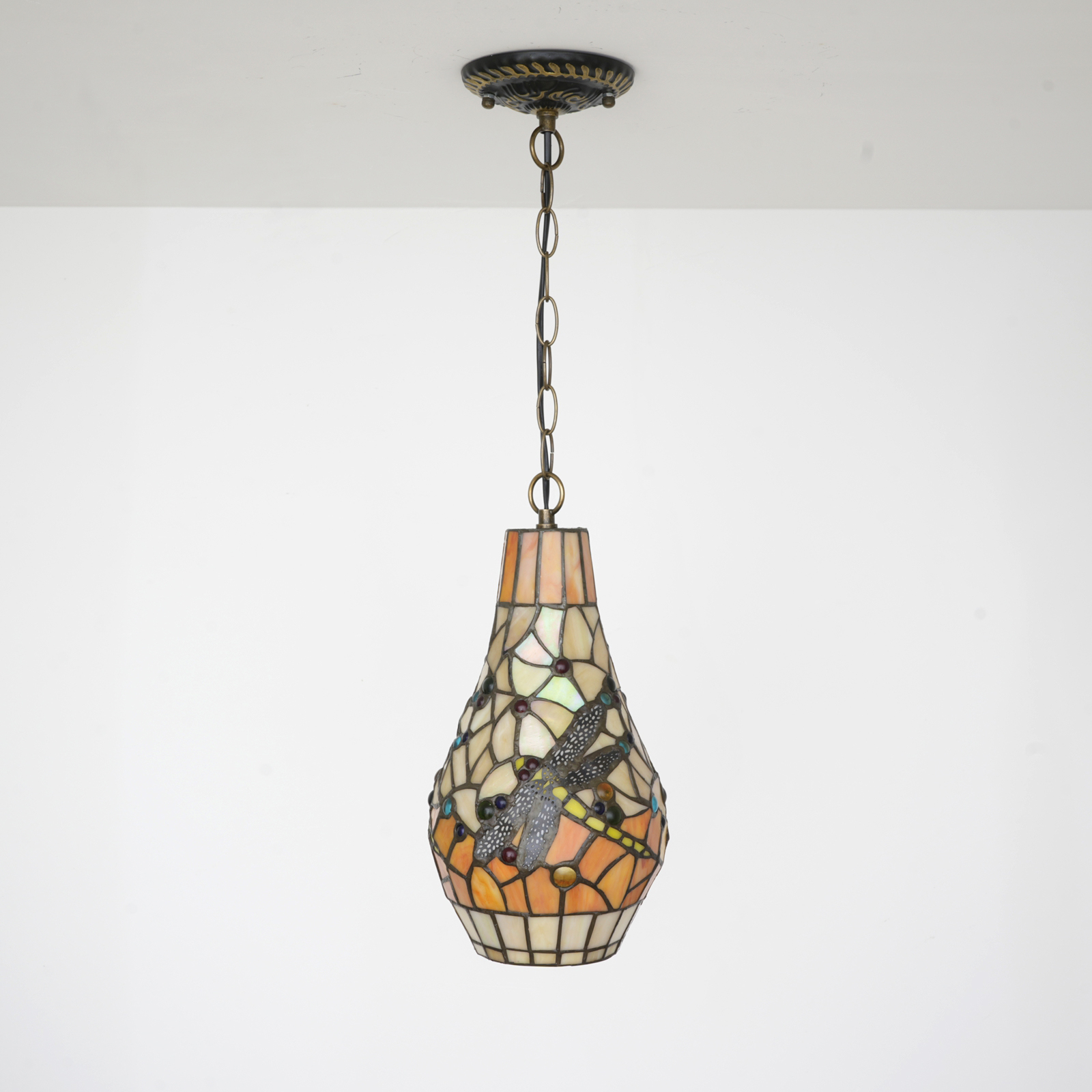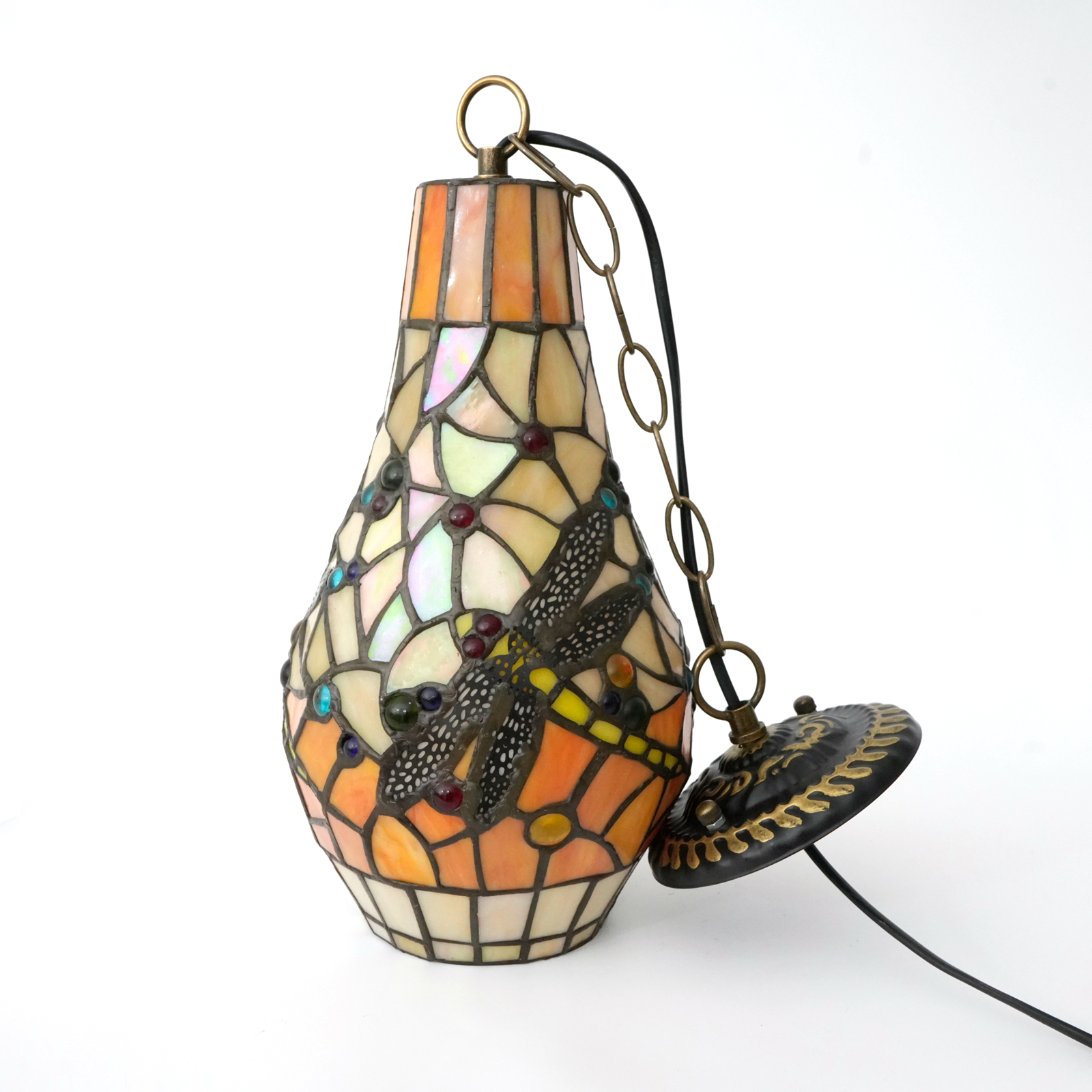 Tiffany style dragonfly painted glass chandelier