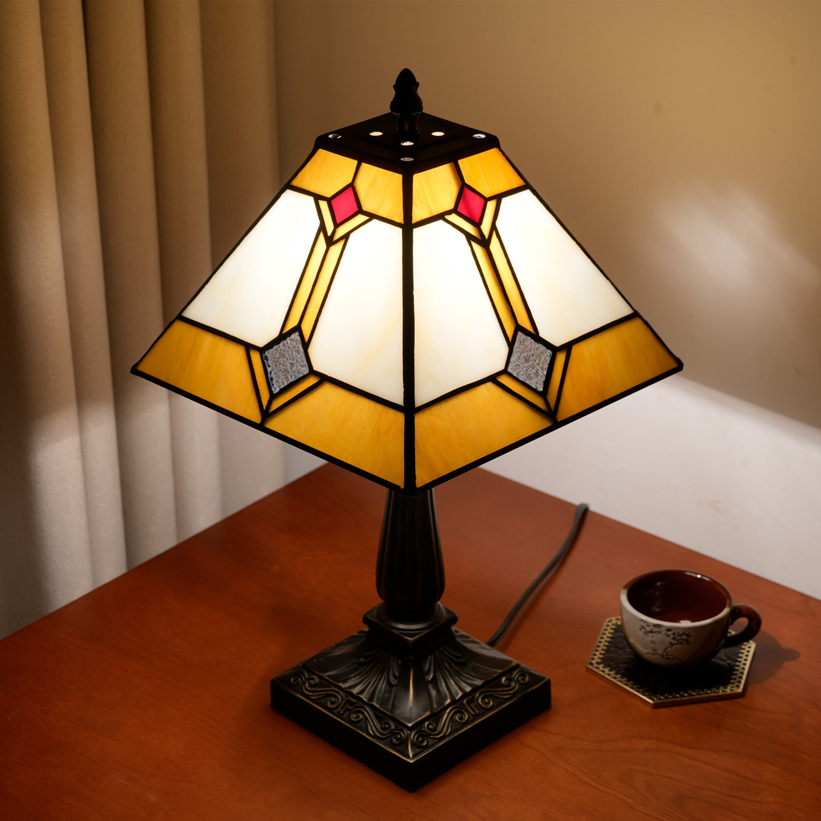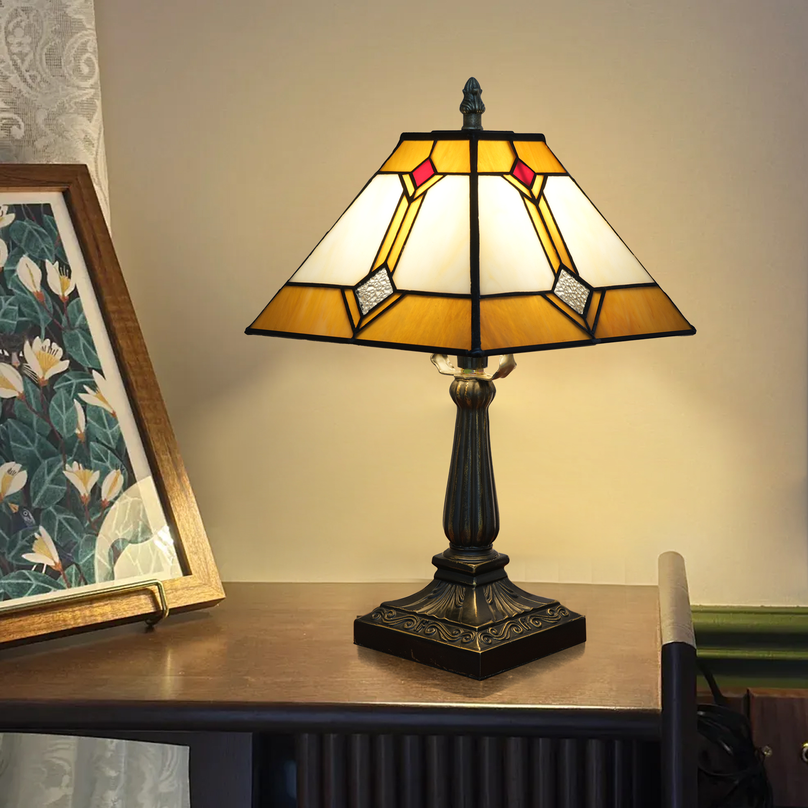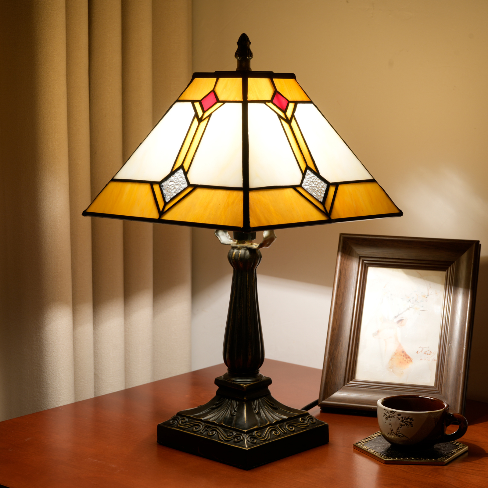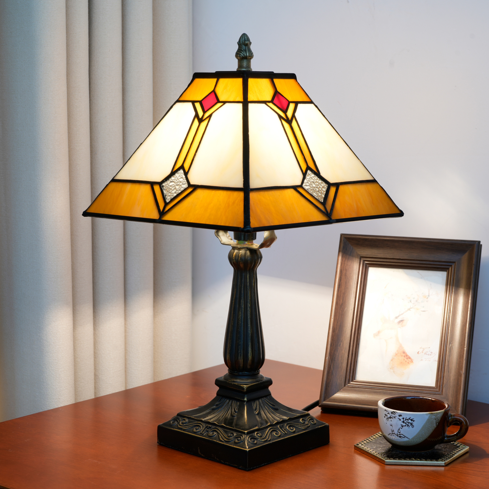Blivuself Tiffany Red Square Table Lamp Stained Glass Lamp Warm Light Warm Atmosphere Bed Lamp Fit Bedroom Dormitory Dining Room Living Room And Other Tiffany Style Retro Home Decoration (8 Inches, OFU1341)
