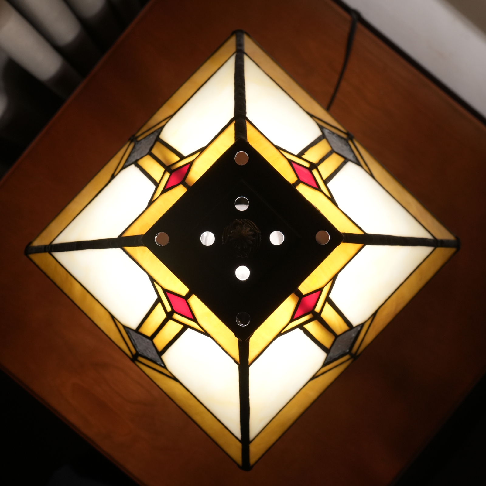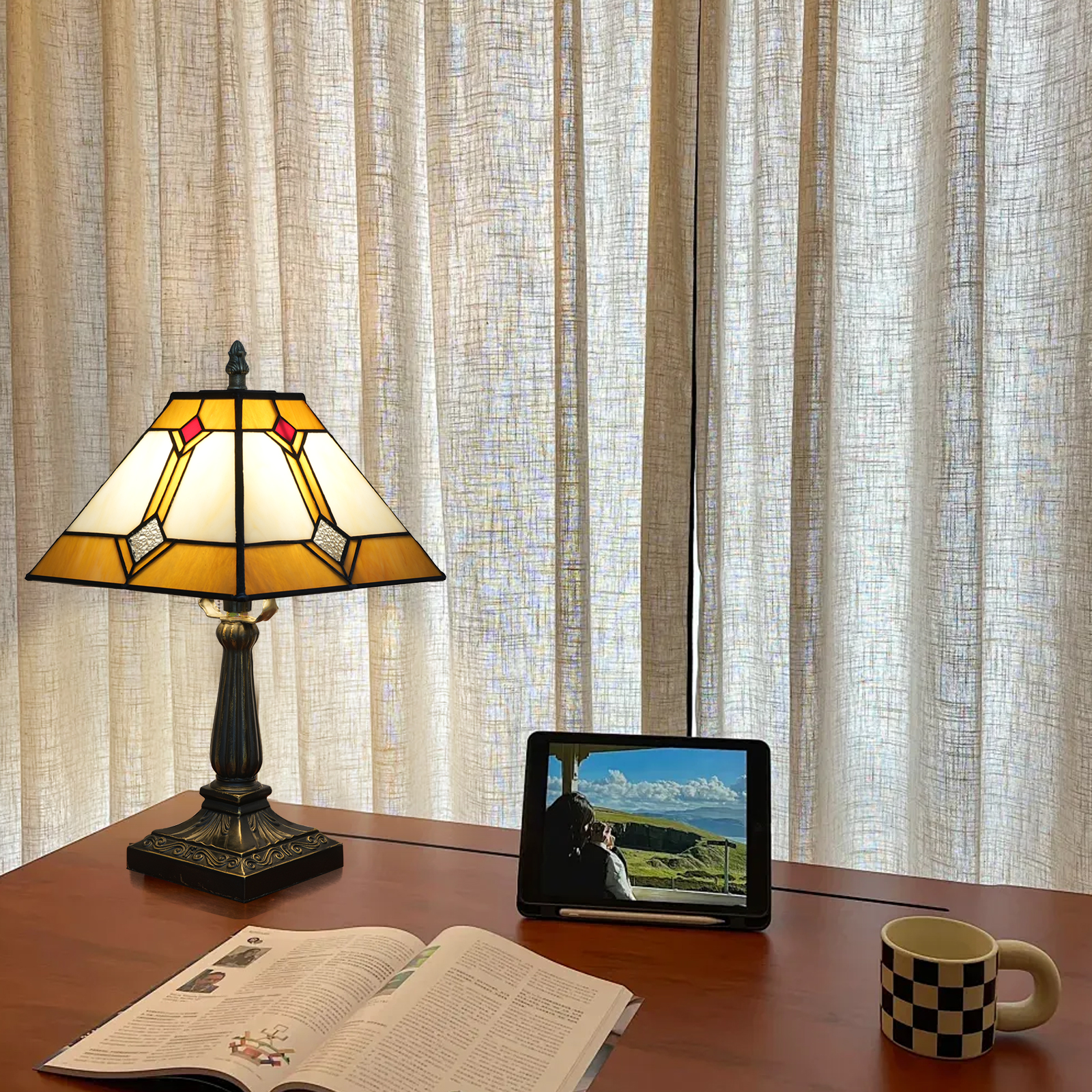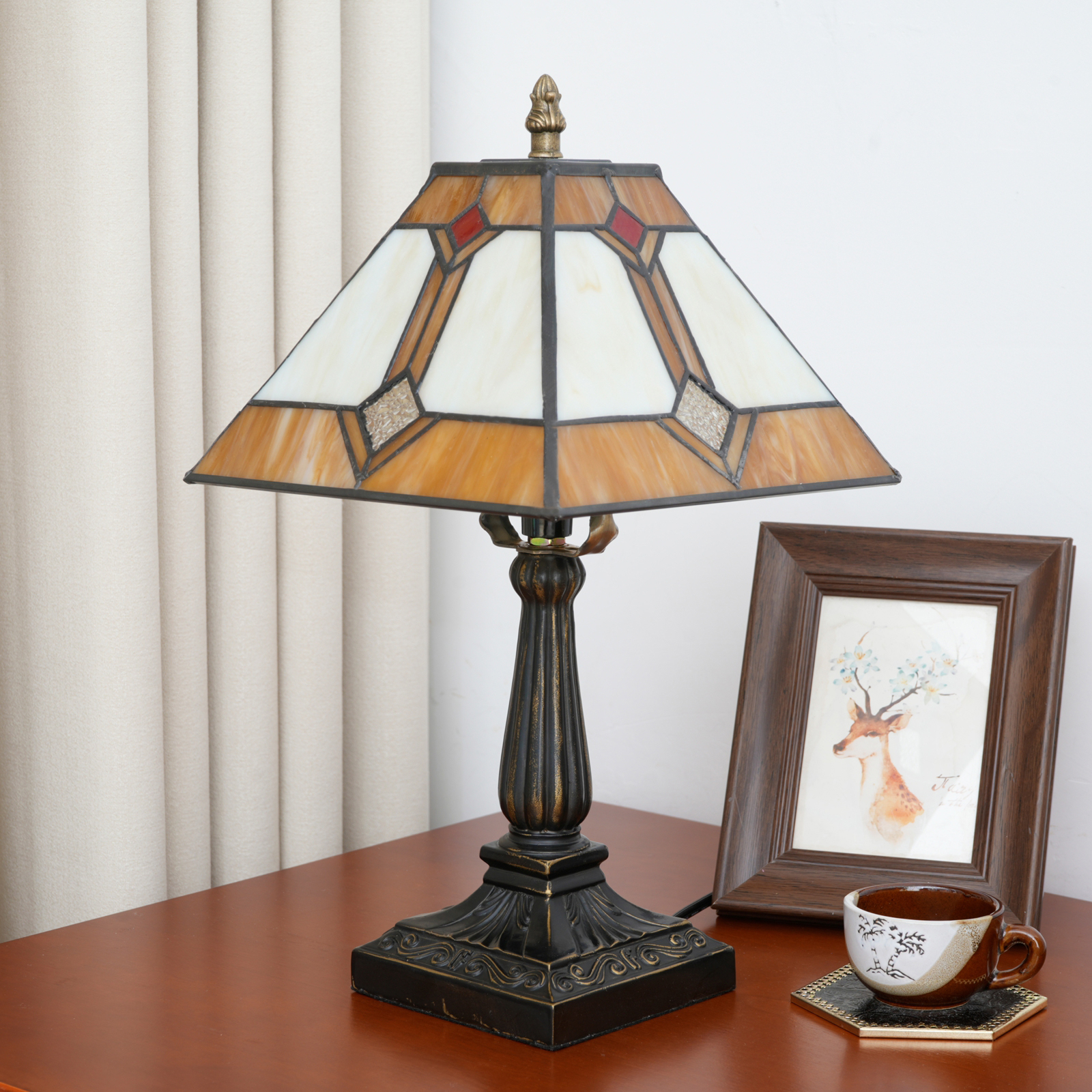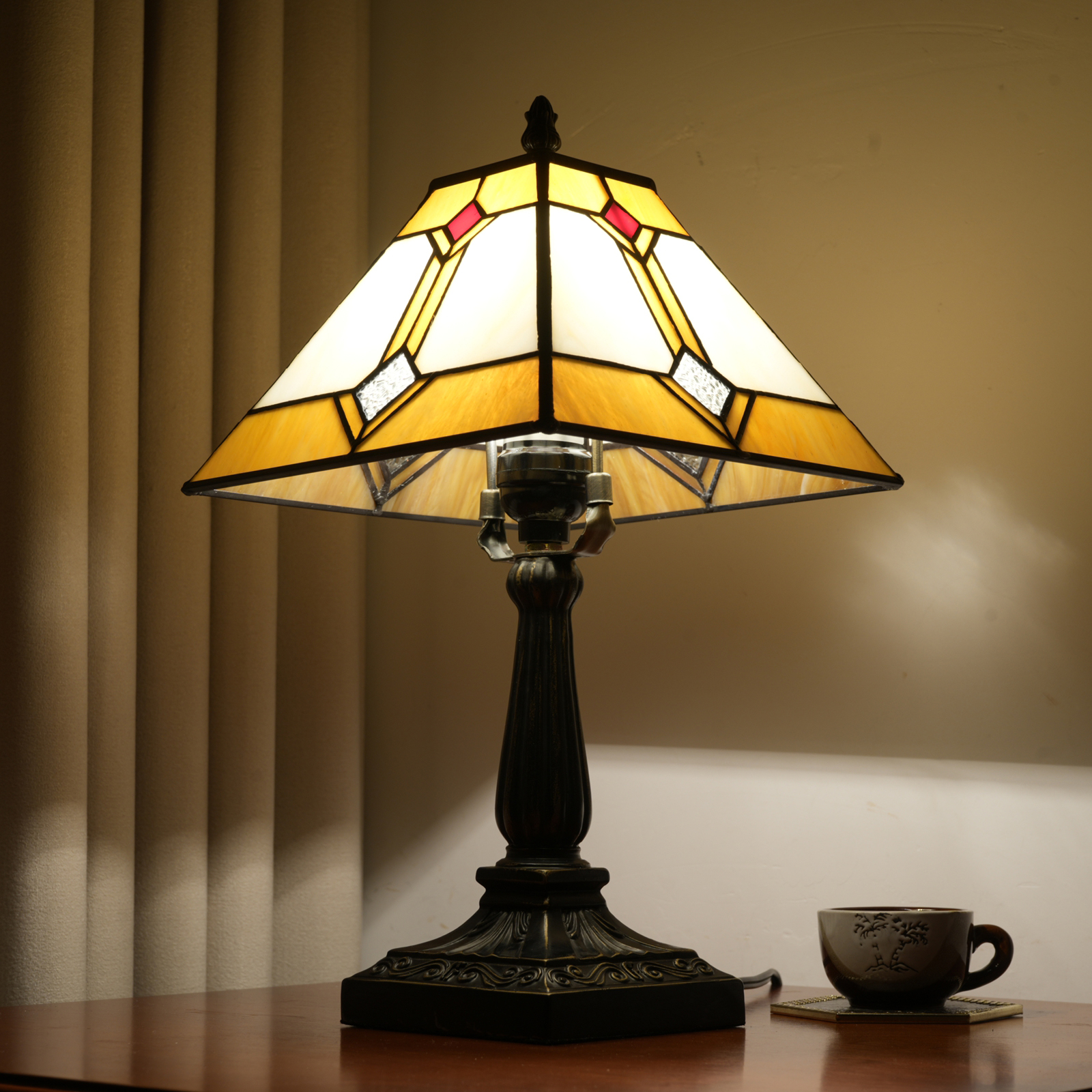 Blivuself Tiffany Red Square Table Lamp Stained Glass Lamp Warm Light Warm Atmosphere Bed Lamp Fit Bedroom Dormitory Dining Room Living Room And Other Tiffany Style Retro Home Decoration (8 Inches, OFU1341)