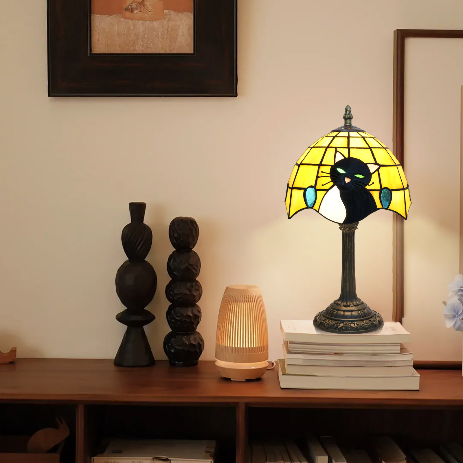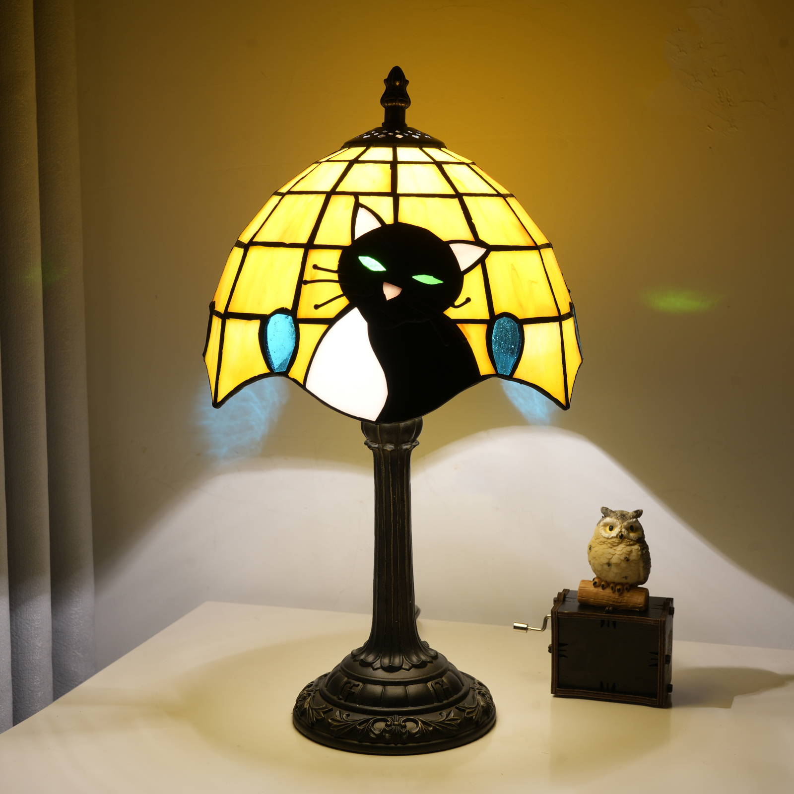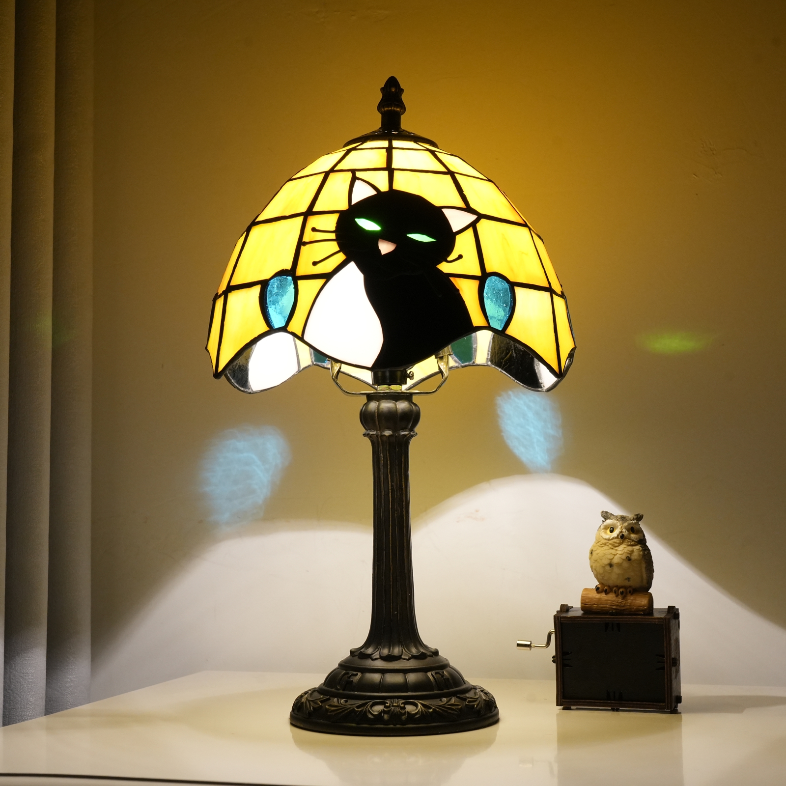 Want to add a unique artistic atmosphere to your home space? This 8-inch Tiffany Black Cat stained glass table lamp is definitely a must-see treasure piece ✨