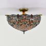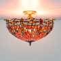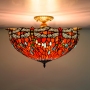 Blivuself Tiffany stained glass 20 inch red flat mouth half ceiling light European and American retro style, suitable for living room, dining room, bedroom, bar and other indoor home decoration 20 inch red dragonfly flat mouth - half ceiling light OFC8011
