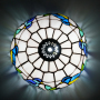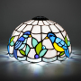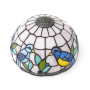 It originates from the classic Tiffany craftsmanship. Each piece of colored glass is hand-cut, spliced and welded. With meticulous craftsmanship, the artisans have combined the multi-colored glass to outline two lively blue bird patterns. The blue bird feathers have rich color gradations, either with light blue gradients or with deep blue accents. Paired with emerald green leaves and light purple berries, against the backdrop of the white glass, they are vivid and full of artistic tension. Each lampshade is a unique piece of handcrafted art.
