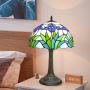 Inspired by the romantic iris, the blooming postures of six irises are permanently captured through Tiffany's stained glass craftsmanship. The blue-purple petals are like dreamy clouds and rosy clouds, the green-blue leaves are like fresh green in spring, and the white glass base is just like a pure canvas. It integrates the softness and poetry of natural flowers into a corner of the home, making the desk lamp an artistic messenger that conveys romantic flower language in the space, and infusing the living room with a fresh and elegant atmosphere.