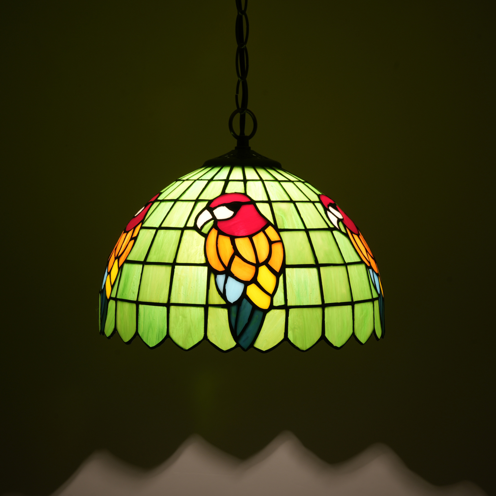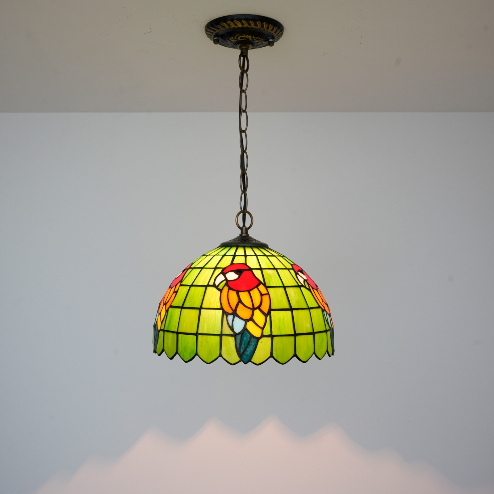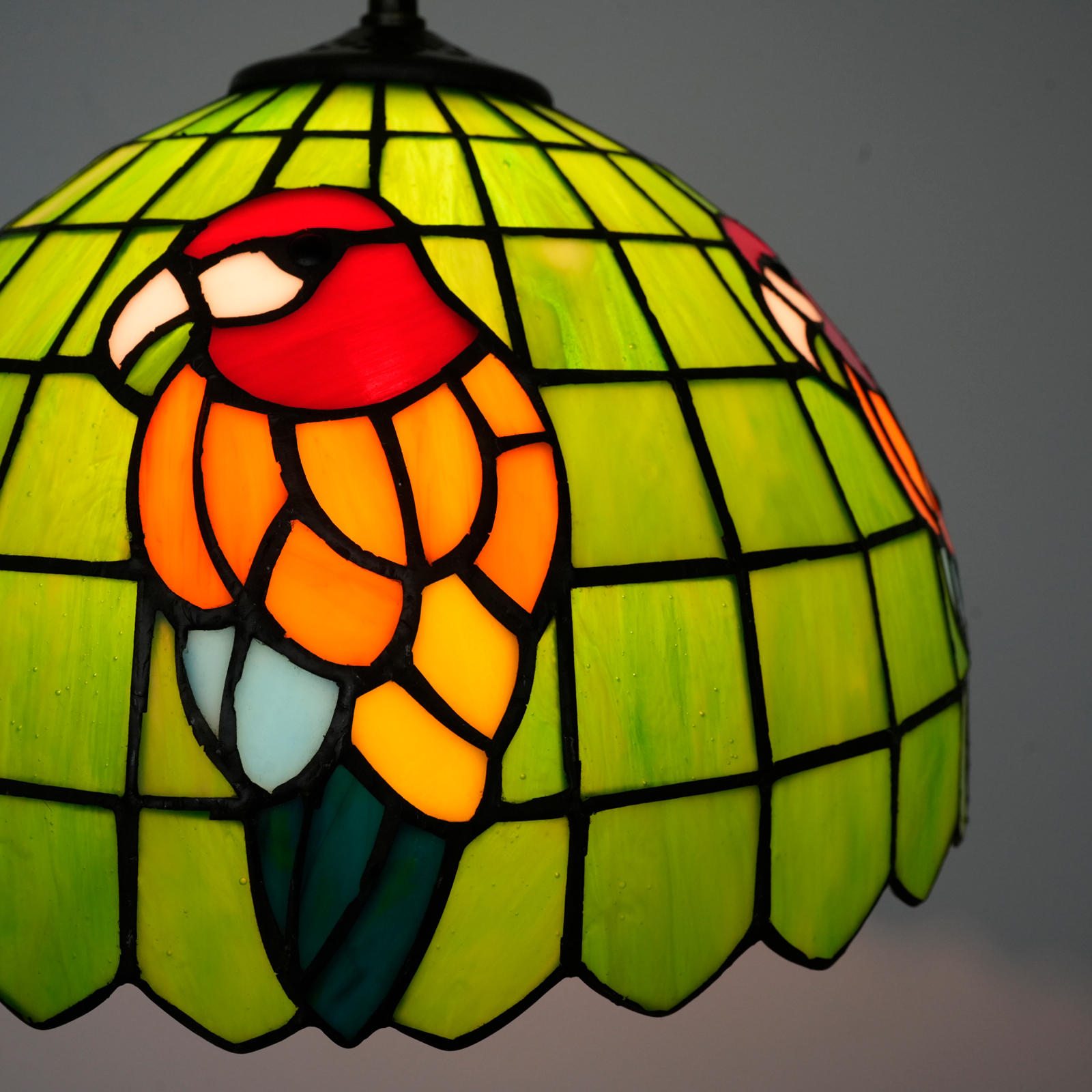 Blivuself Tiffany Style Handmade Creative Stained Glass Chandelier 12 Inch Green Bottom Parrot Adapted To The Bedroom Dormitory Living Room Dining Room Traditional Retro Style Home Decoration Classical Art OFP1369