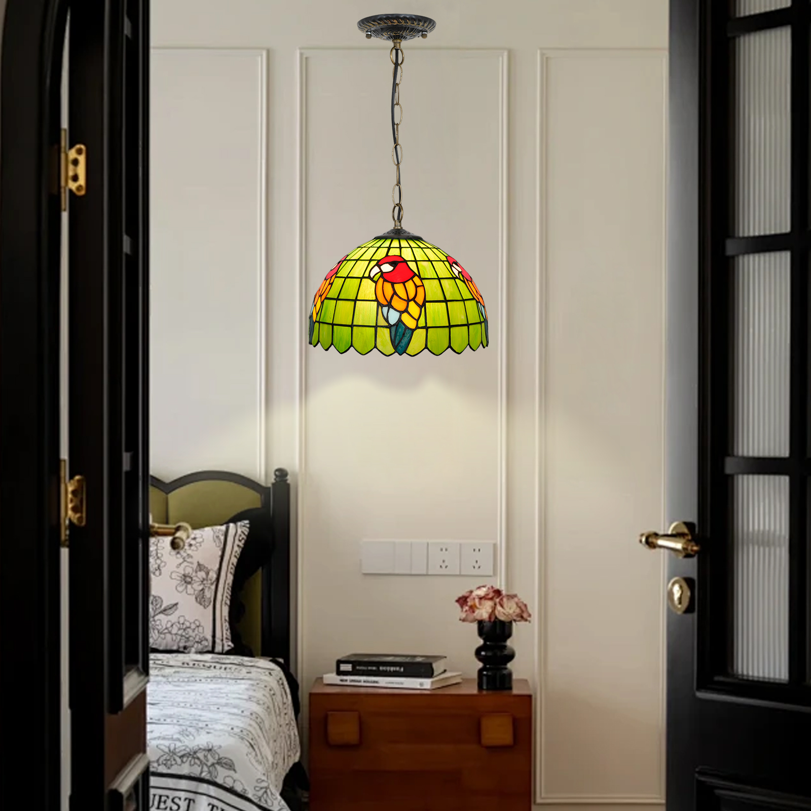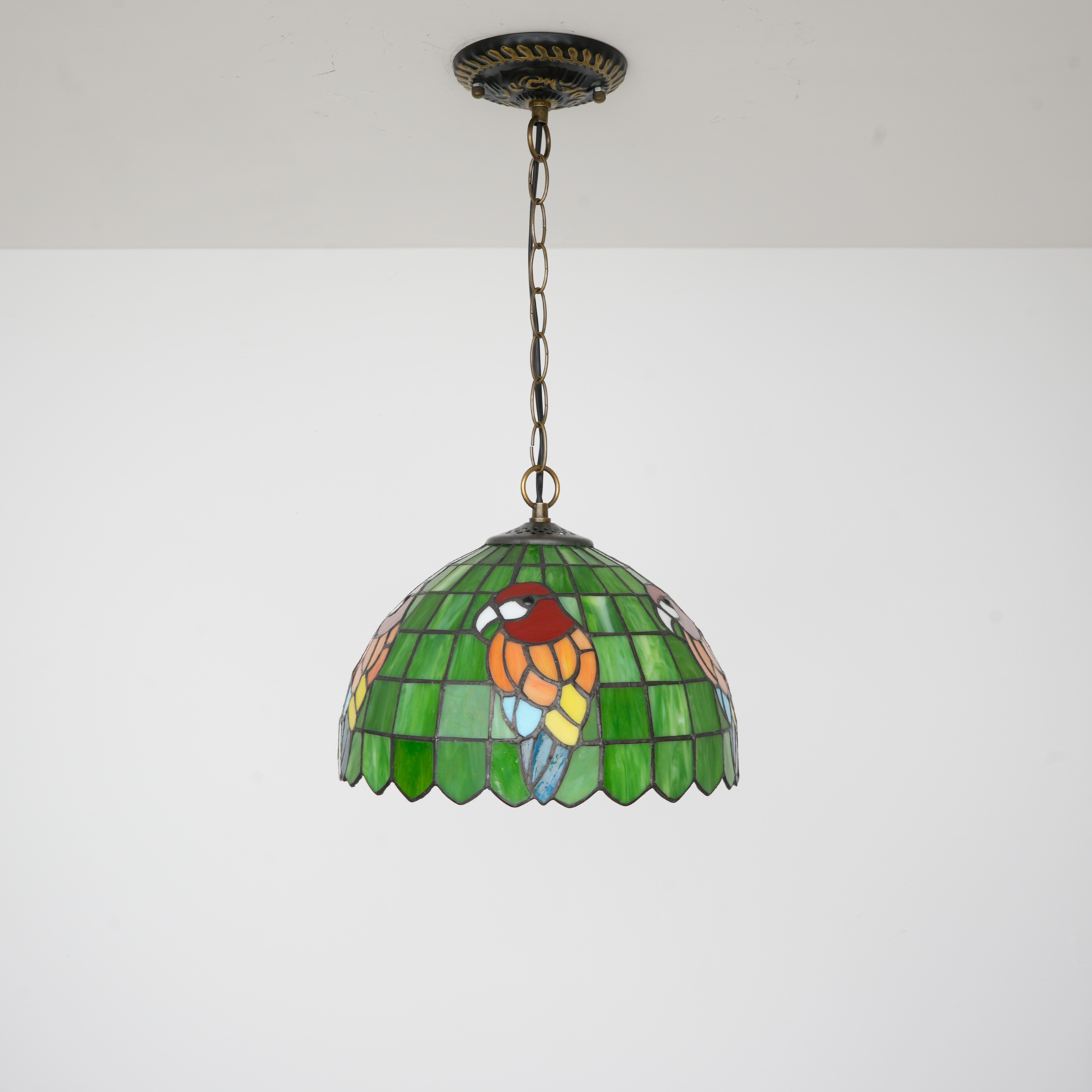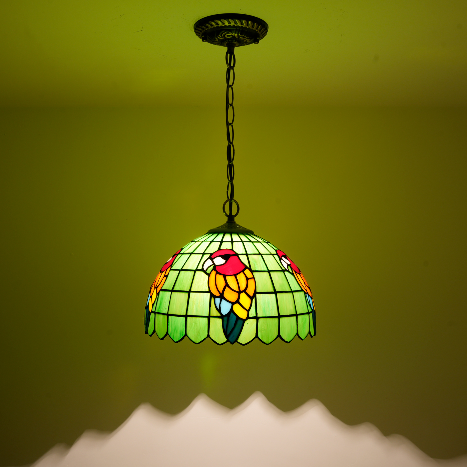 Blivuself Tiffany Style Handmade Creative Stained Glass Chandelier 12 Inch Green Bottom Parrot Adapted To The Bedroom Dormitory Living Room Dining Room Traditional Retro Style Home Decoration Classical Art OFP1369