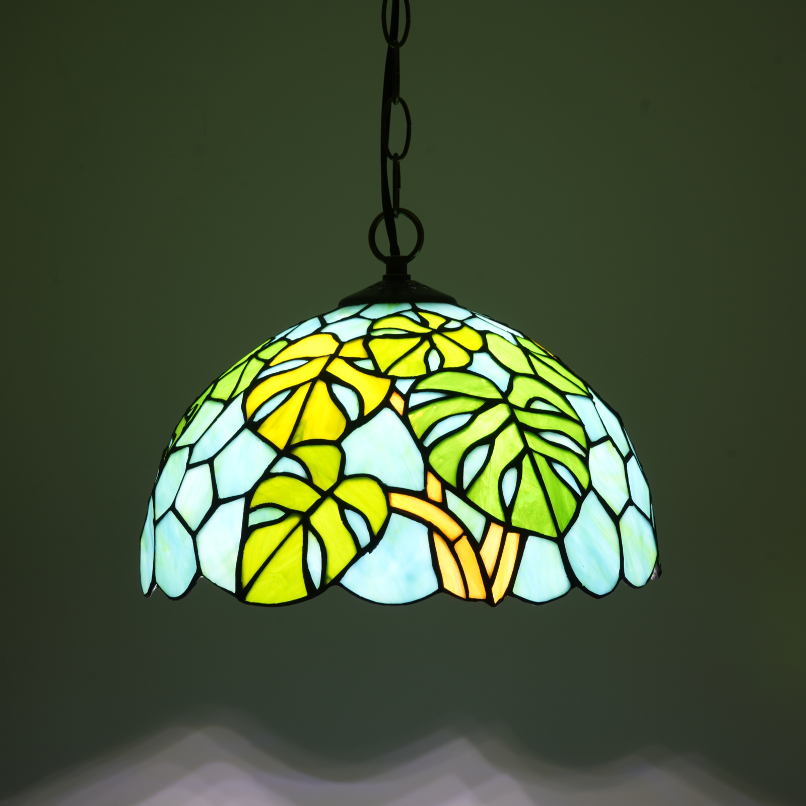 Blivuself Tiffany Style Handmade Creative Stained Glass Chandelier 12 Inch Green Turtle Back Bamboo Adapted To The Bedroom Dormitory Living Room Dining Room Traditional Retro Style Home Decoration Classical Art OFP1372