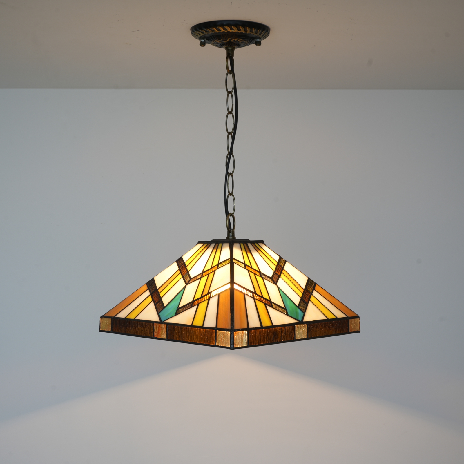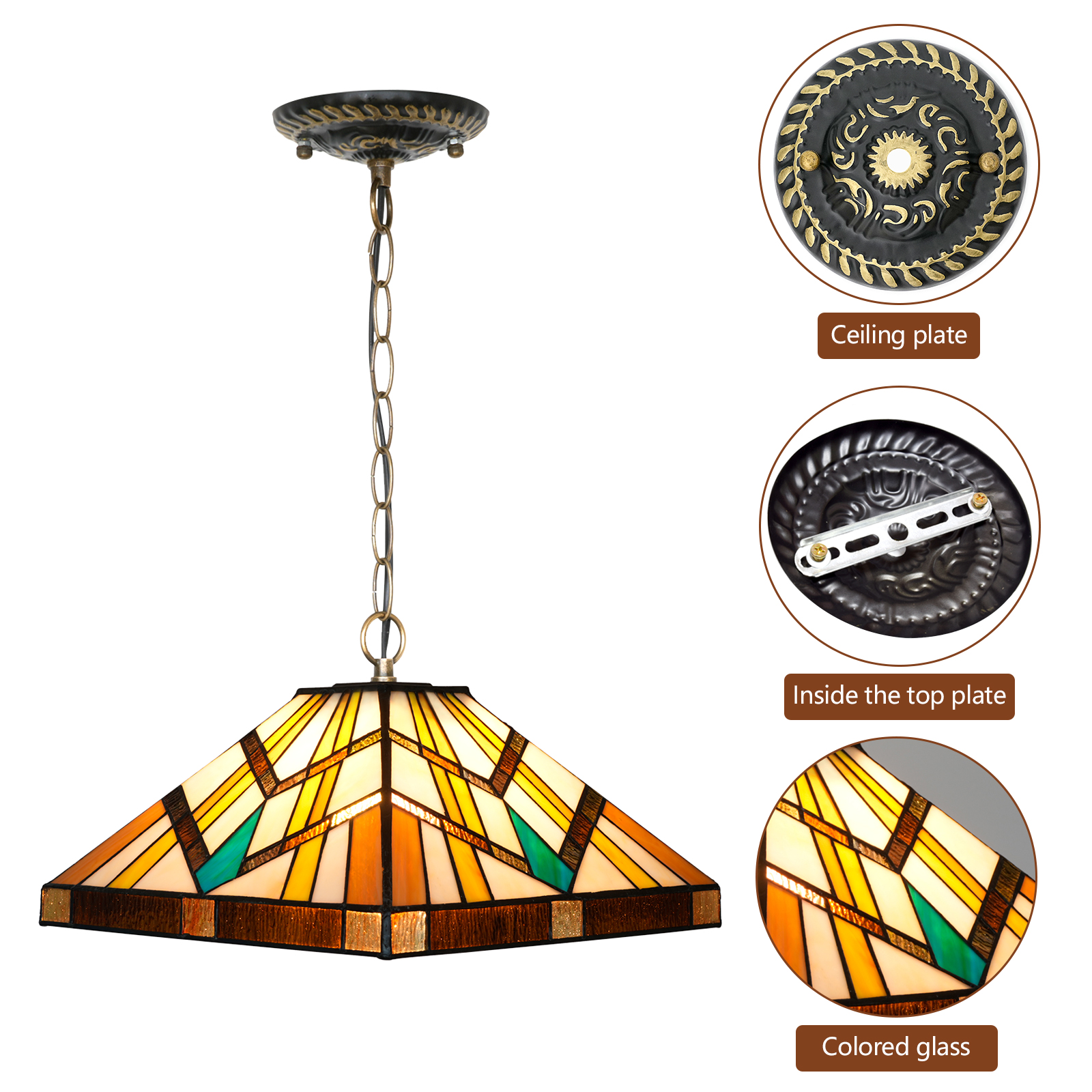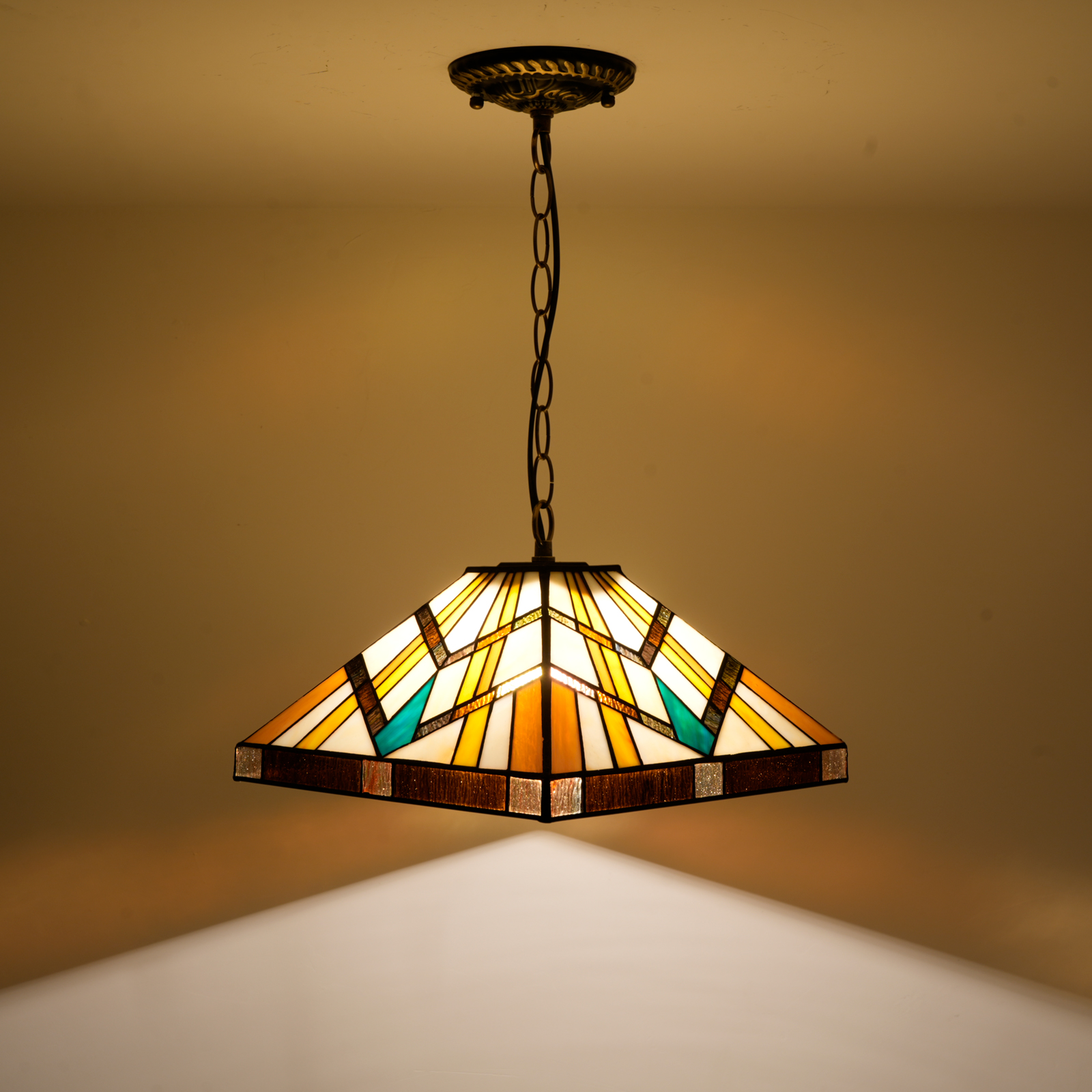 Blivuself Tiffany Style Handmade Creative Stained Glass Chandelier 16 Inch Blue Diamond Square Lamp For Bedroom Dormitory Living Room Dining Room Traditional Retro Style Home Decoration Classical Art OFP1412