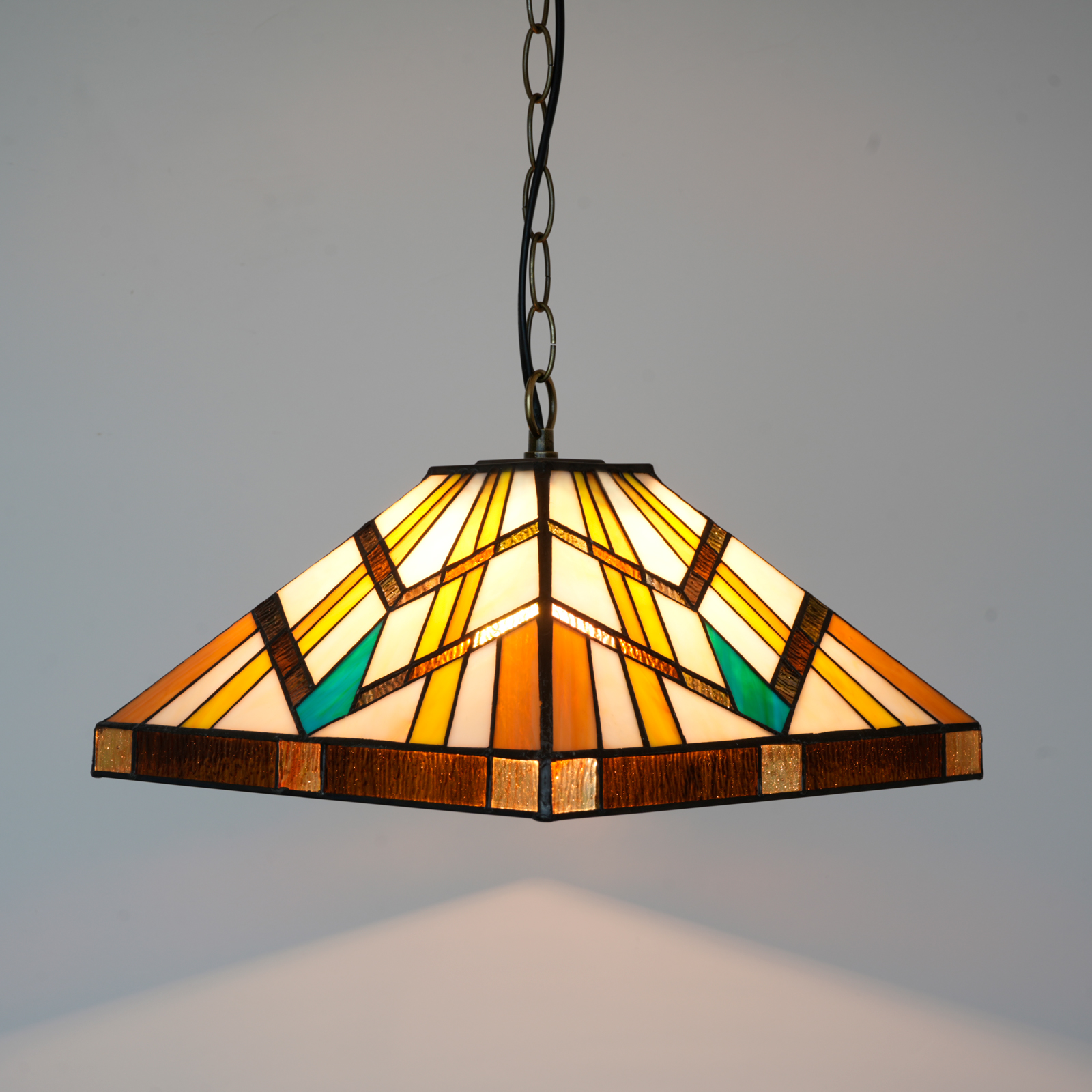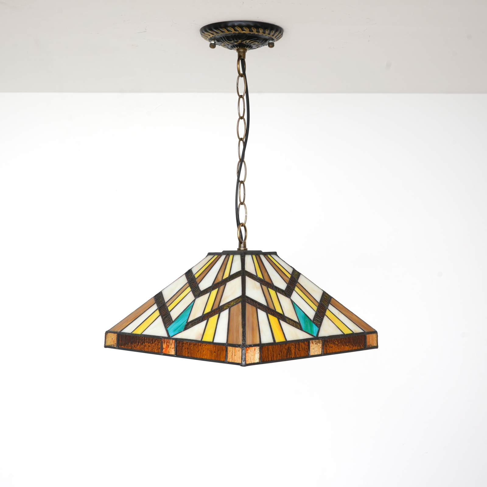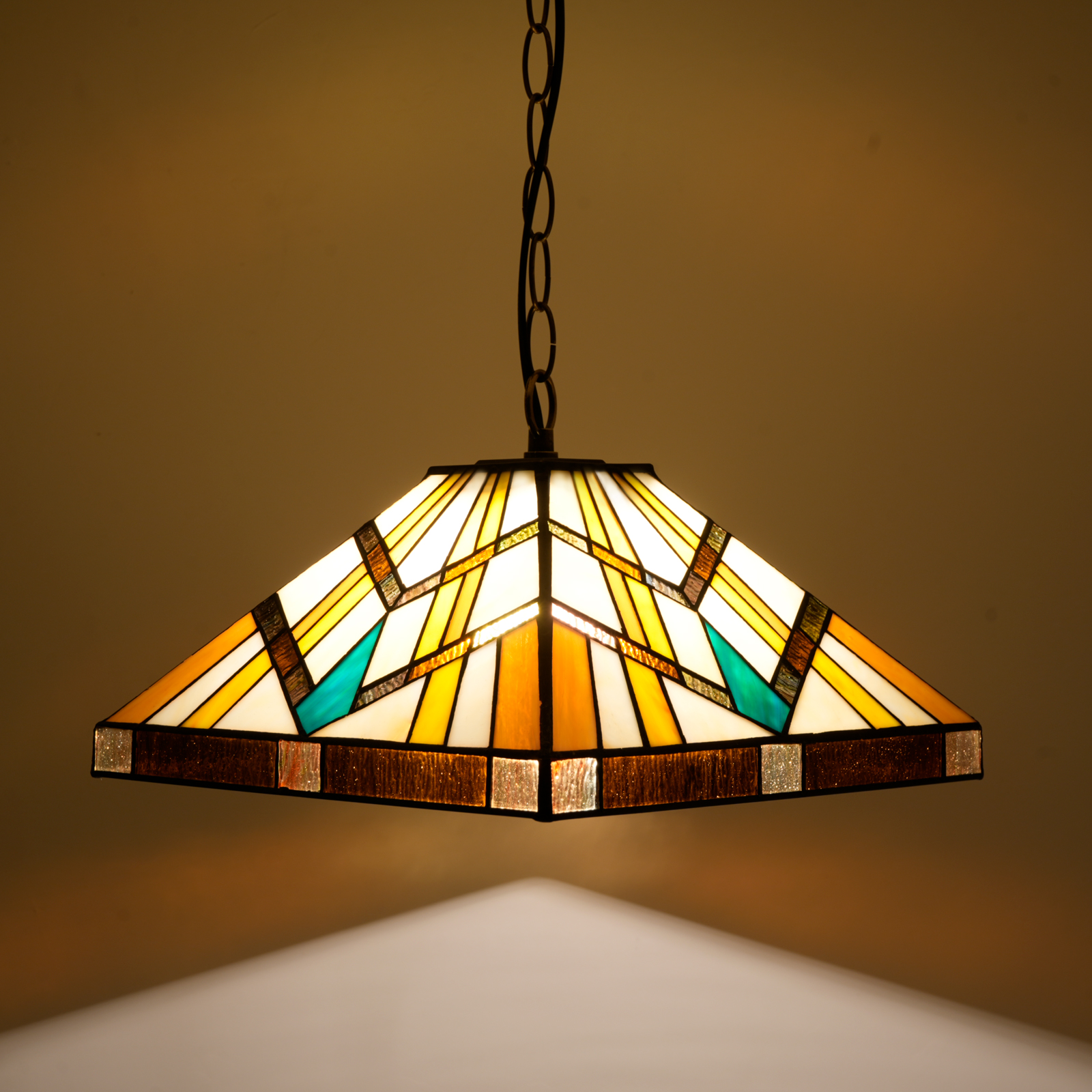 Blivuself Tiffany Style Handmade Creative Stained Glass Chandelier 16 Inch Blue Diamond Square Lamp For Bedroom Dormitory Living Room Dining Room Traditional Retro Style Home Decoration Classical Art OFP1412