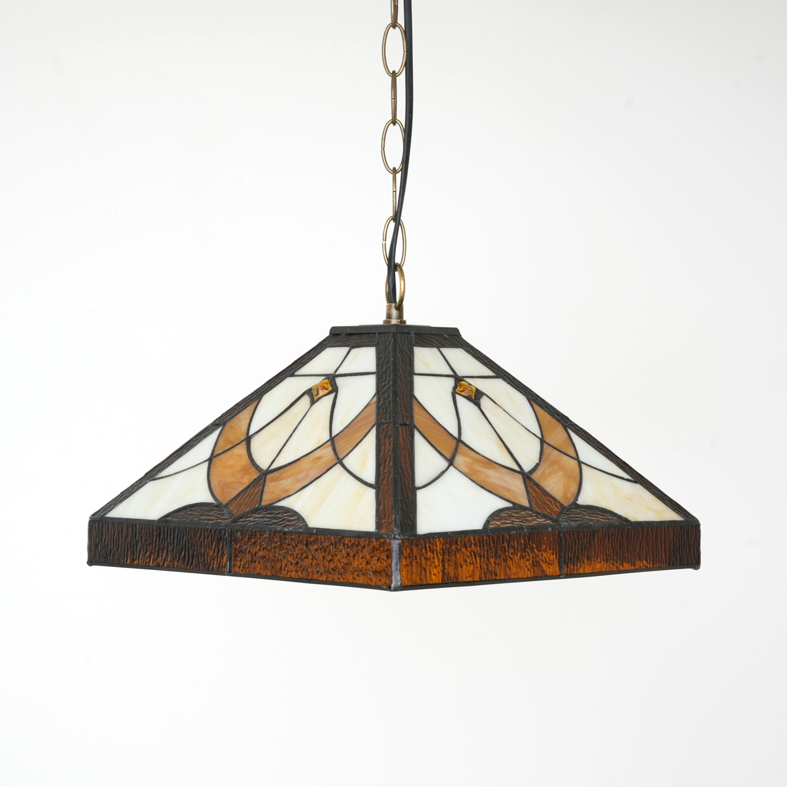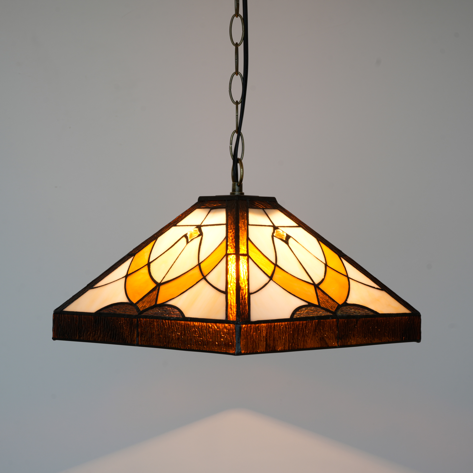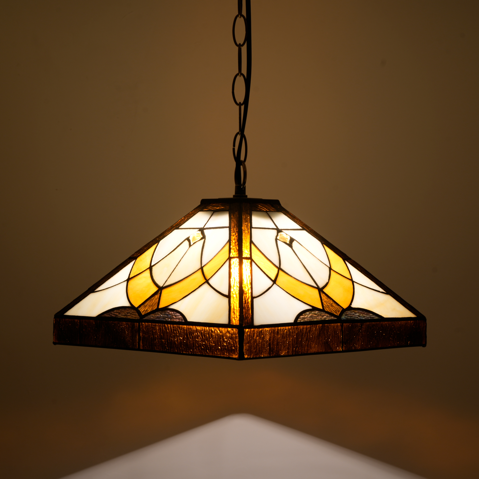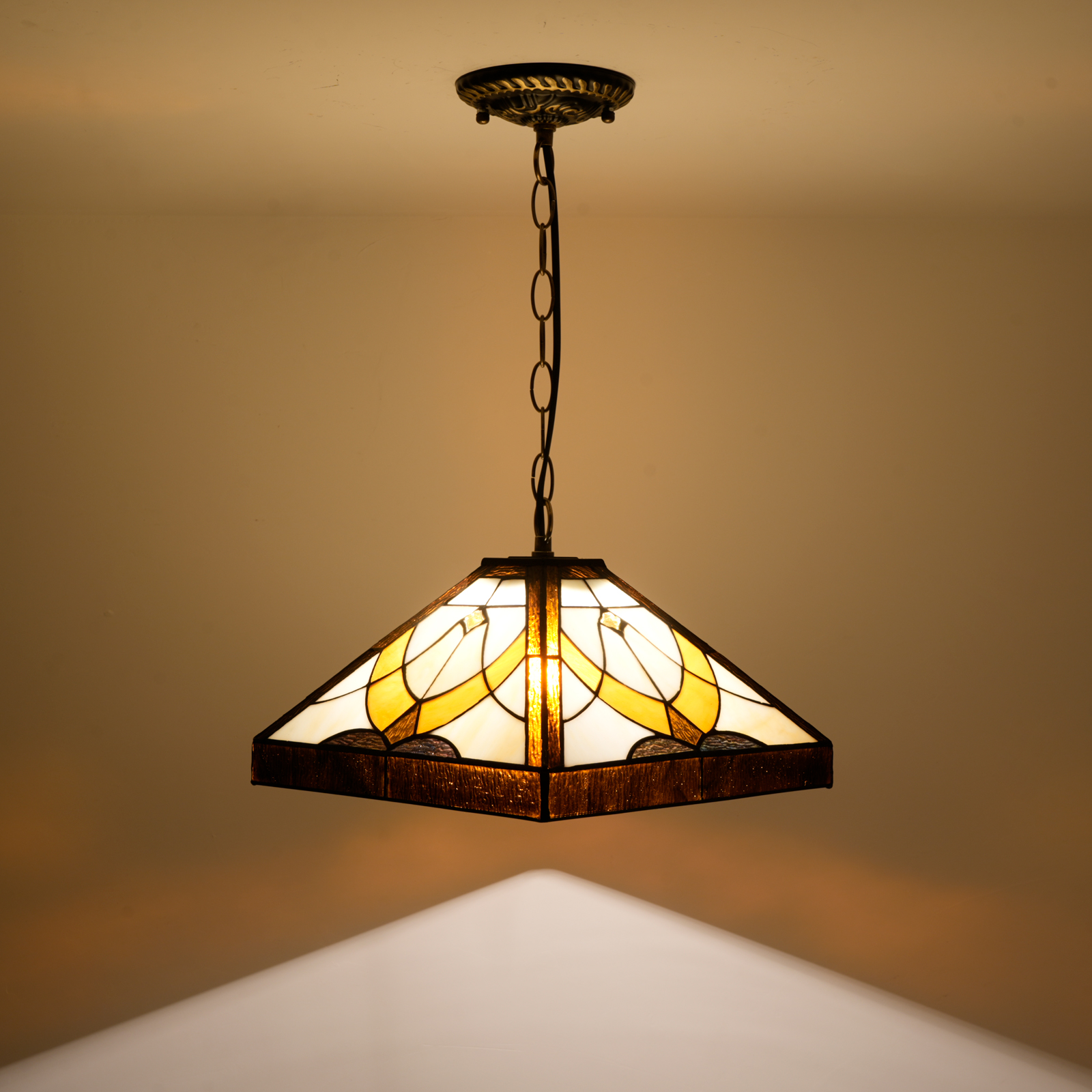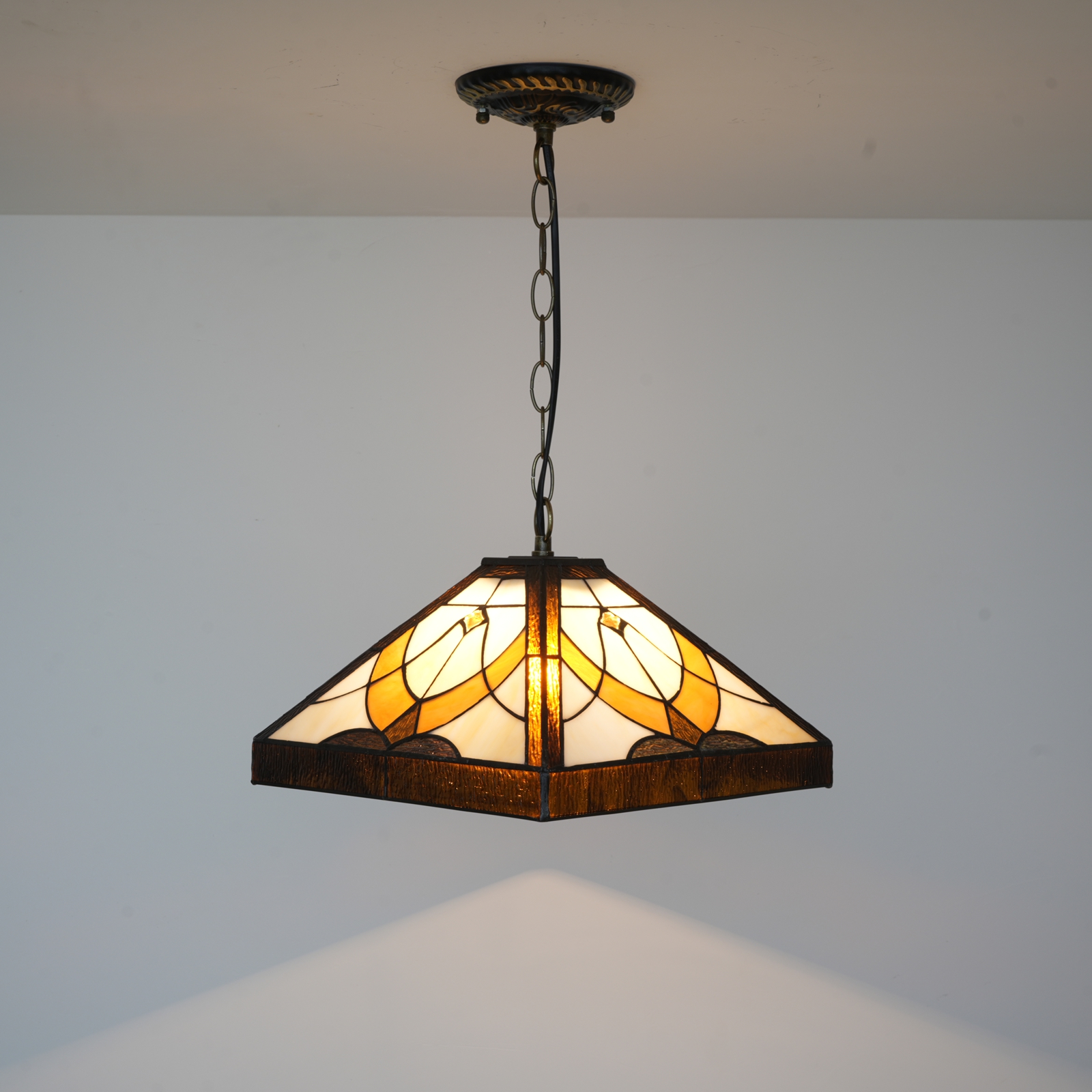 Blivuself Tiffany Style Handmade Creative Stained Glass Chandelier 16 Inch Brown Square Lamp Suitable For Bedroom Dormitory Living Room Dining Room Traditional Retro Style Home Decoration Classical Art OFP1406