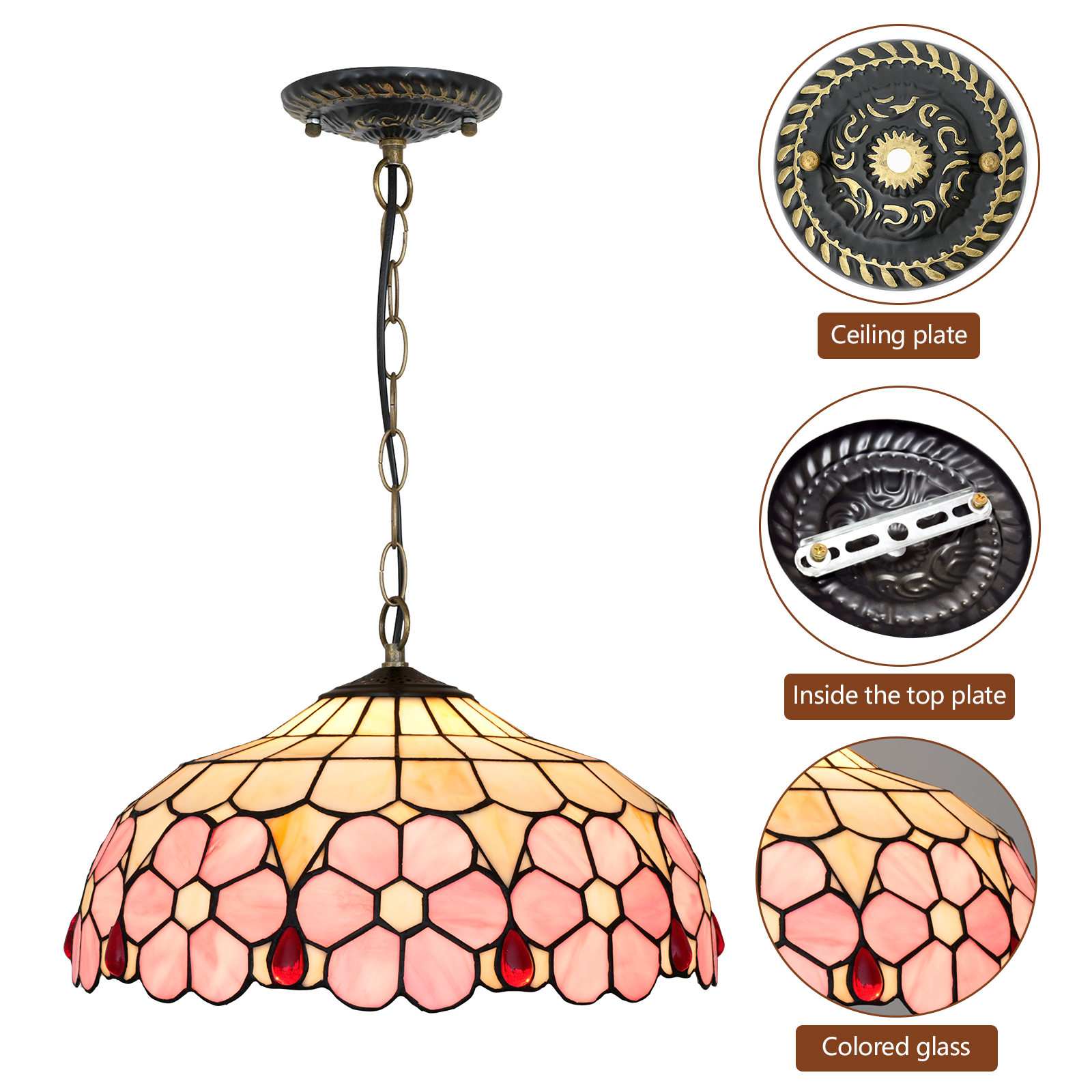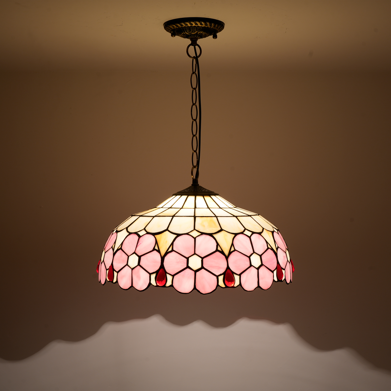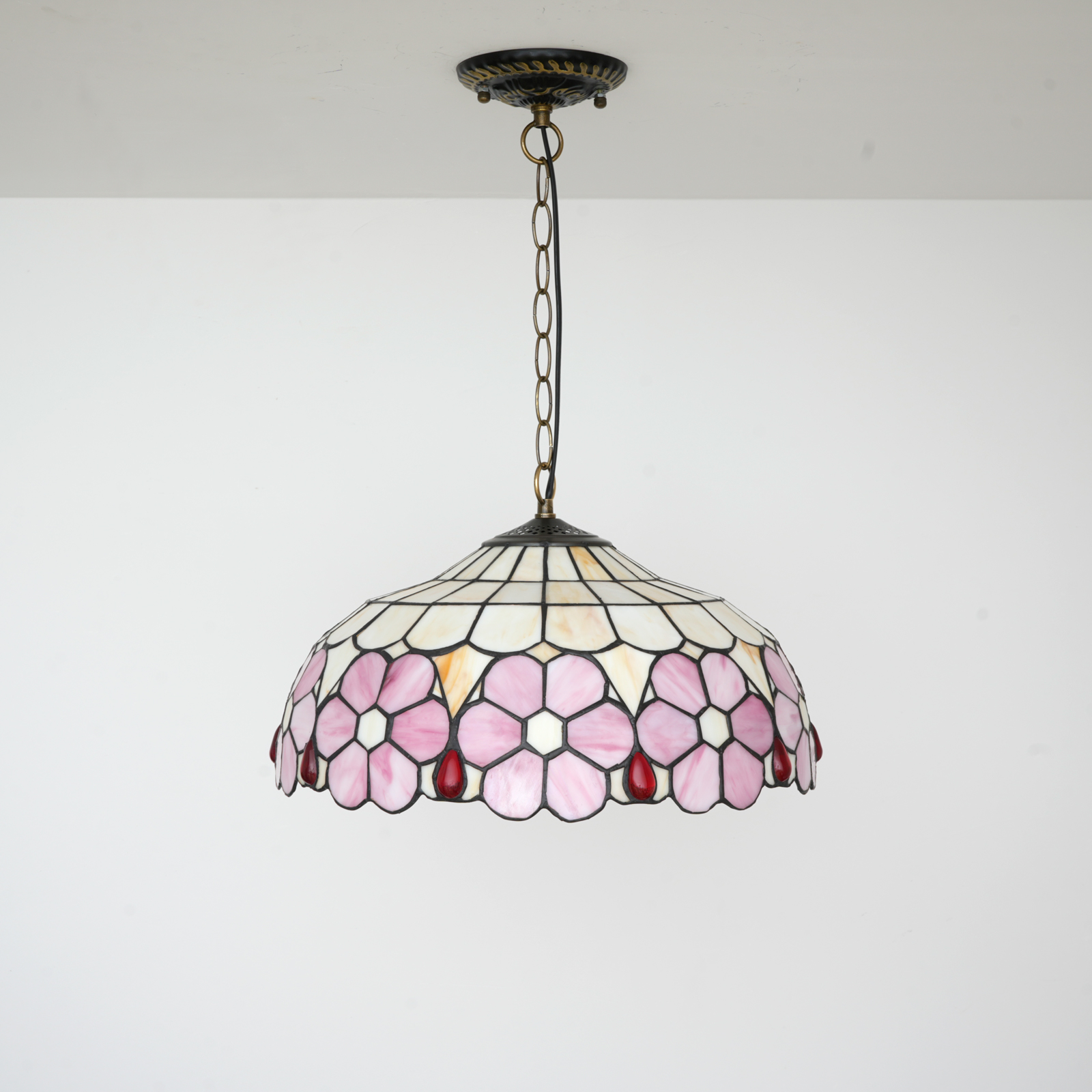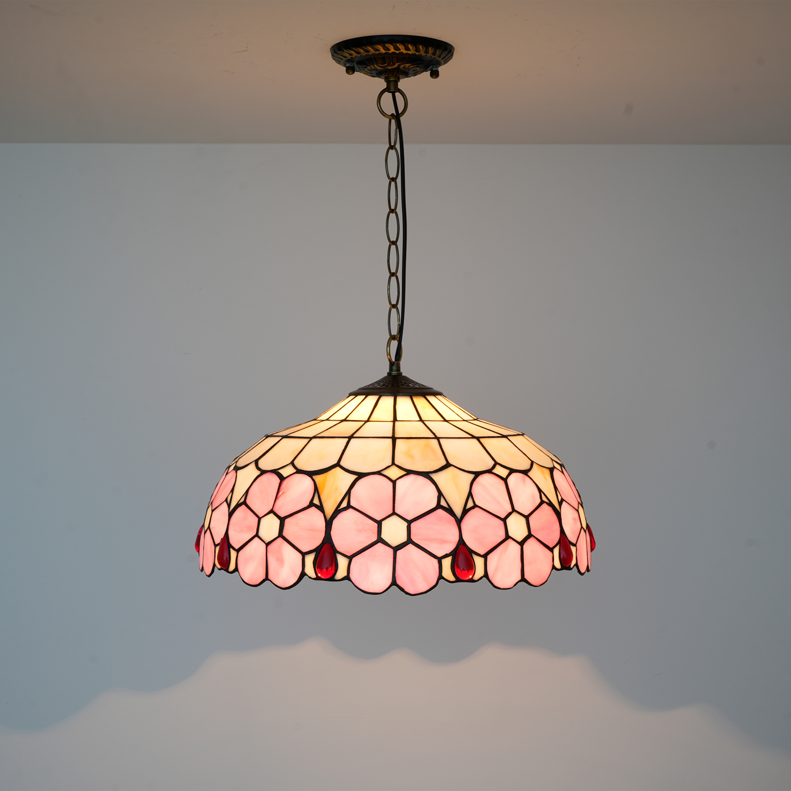 Blivuself Tiffany Style Handmade Creative Stained Glass Chandelier 16 Inch Pink Flowers Adapted To Bedroom Dormitory Living Room Dining Room Traditional Retro Style Home Decoration Classical Art Craft OFP1420