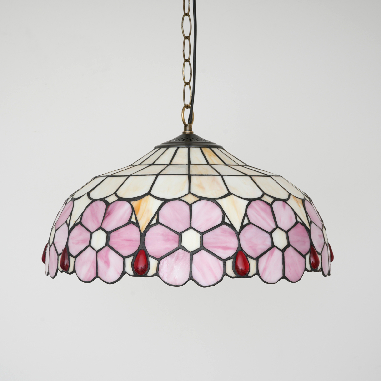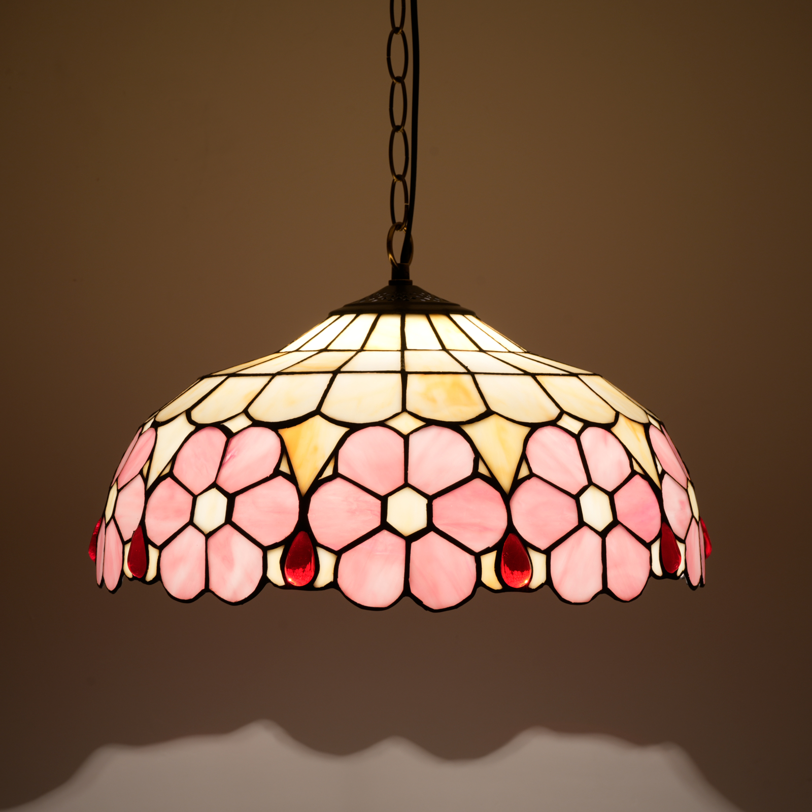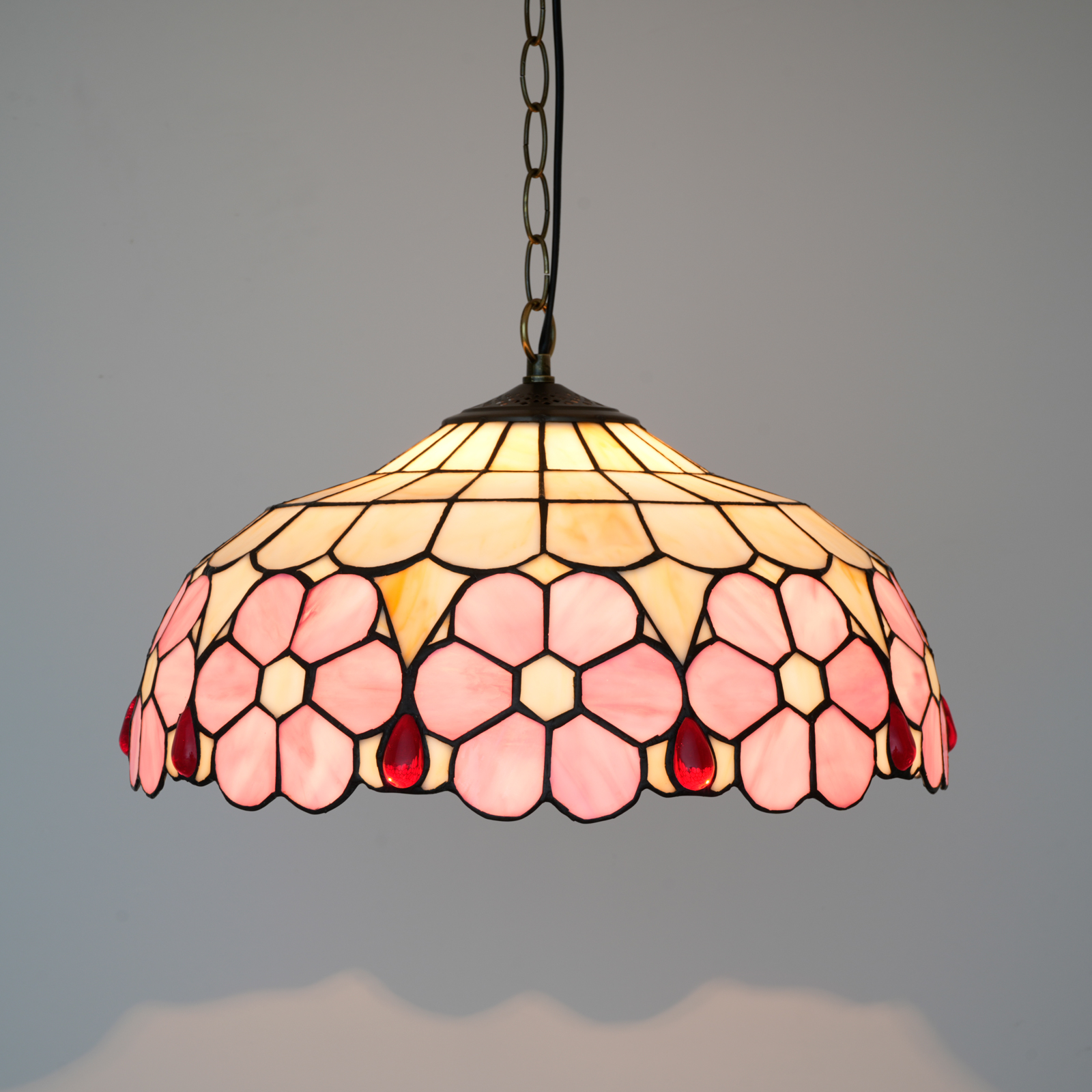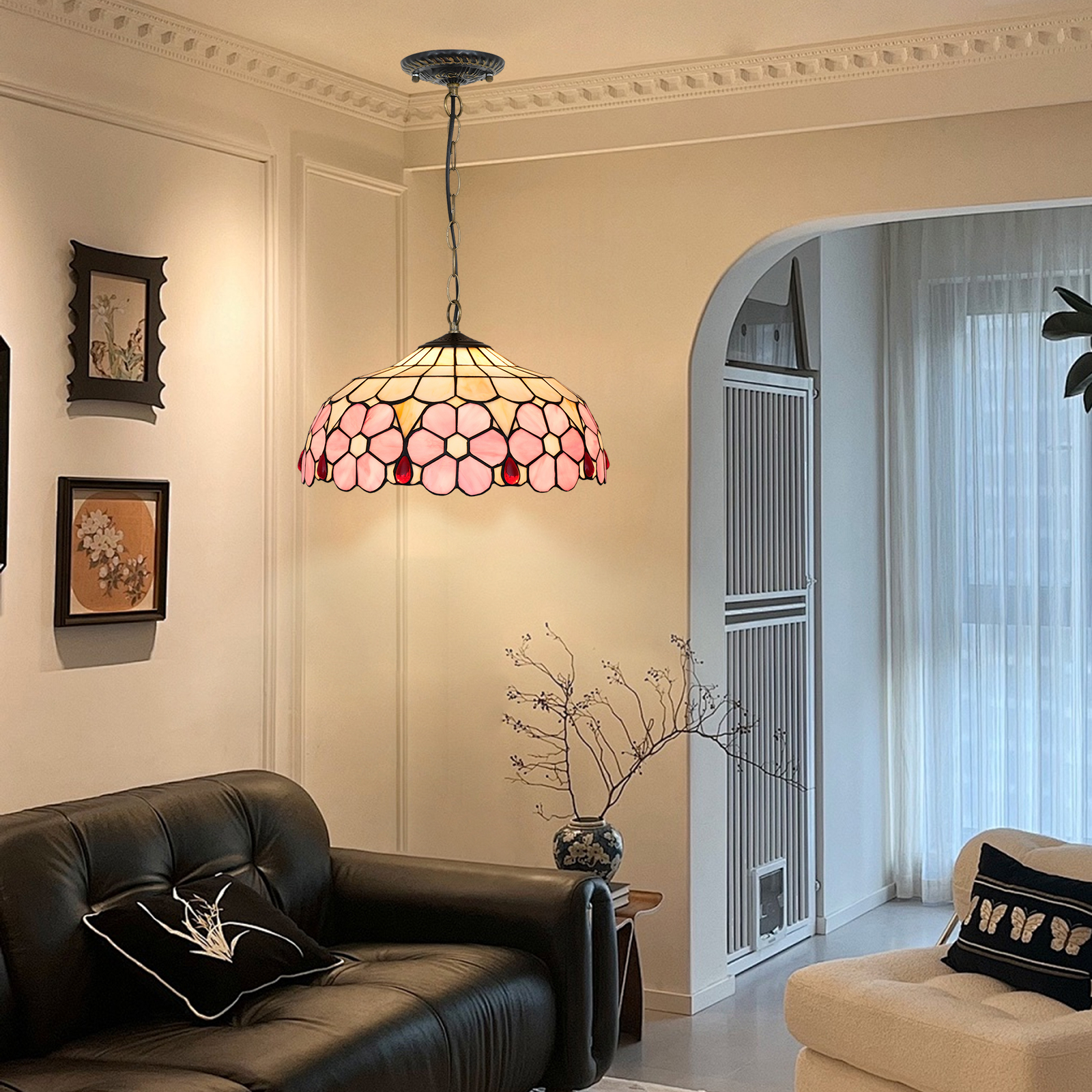 Blivuself Tiffany Style Handmade Creative Stained Glass Chandelier 16 Inch Pink Flowers Adapted To Bedroom Dormitory Living Room Dining Room Traditional Retro Style Home Decoration Classical Art Craft OFP1420